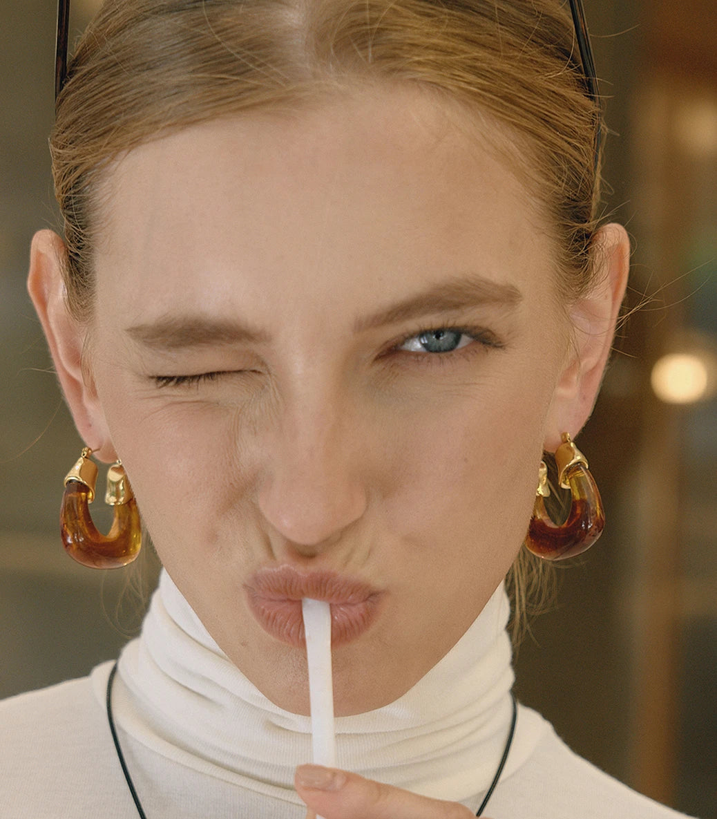 Chunky кафяви висящи обеци със смола