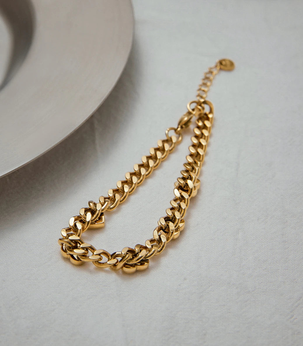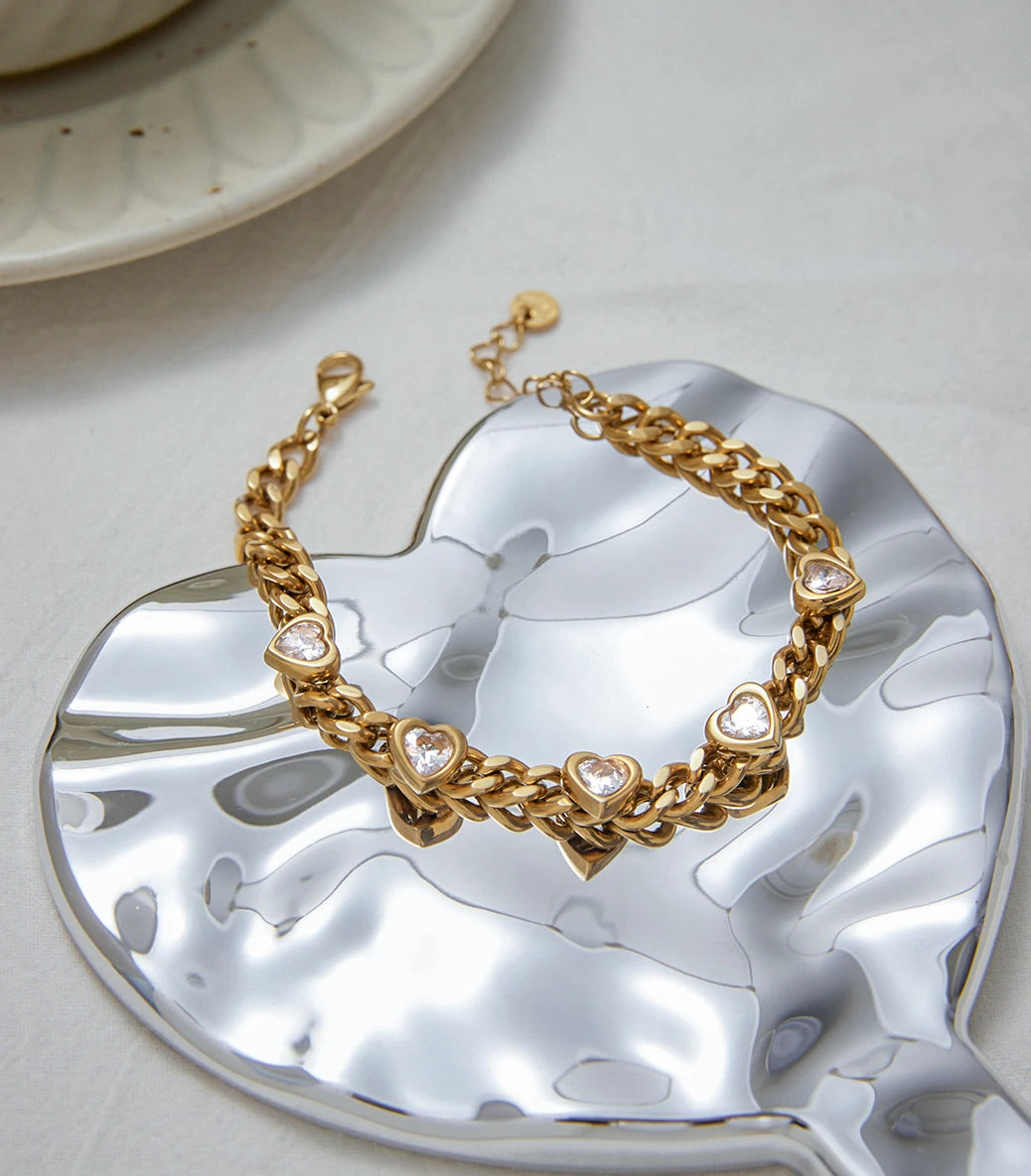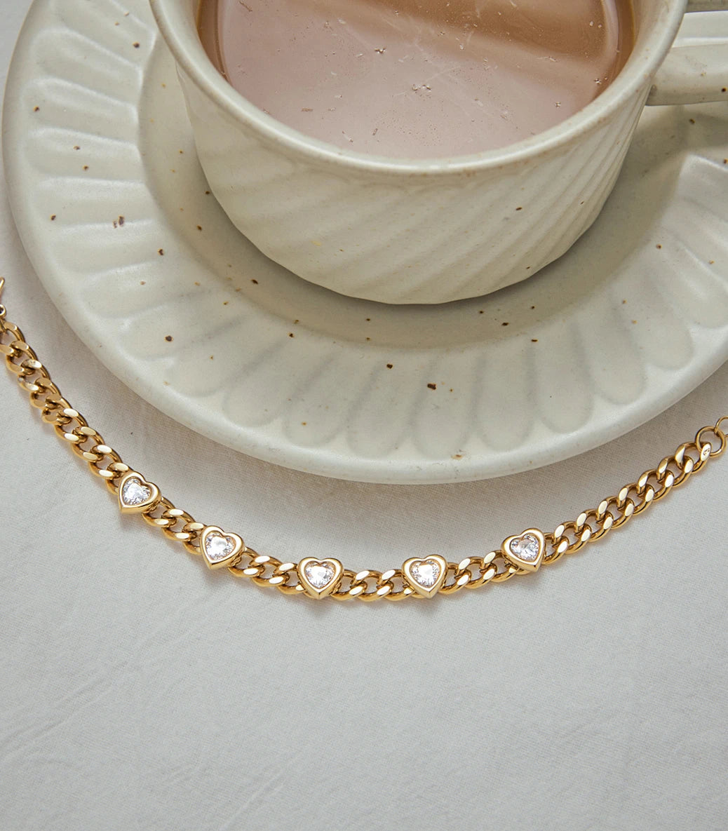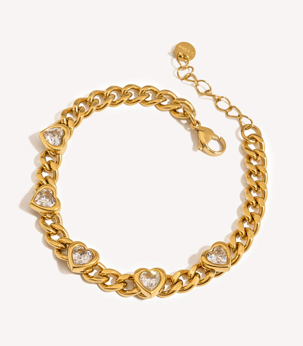 Гривна с кубинска плетка и сърца с циркони