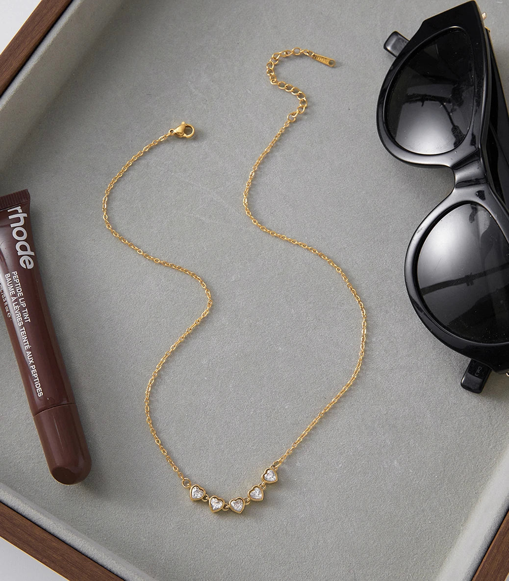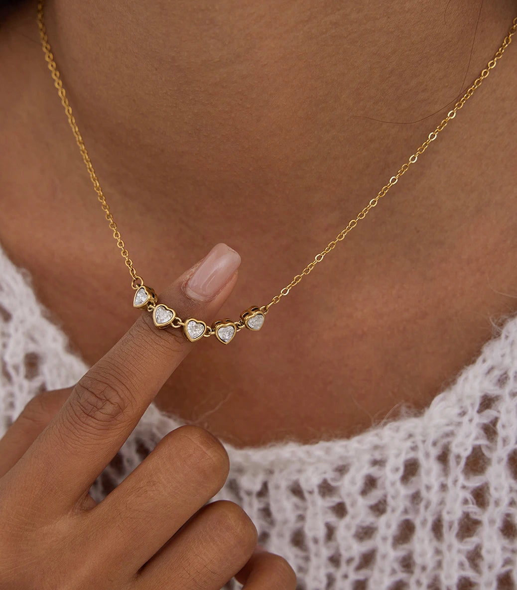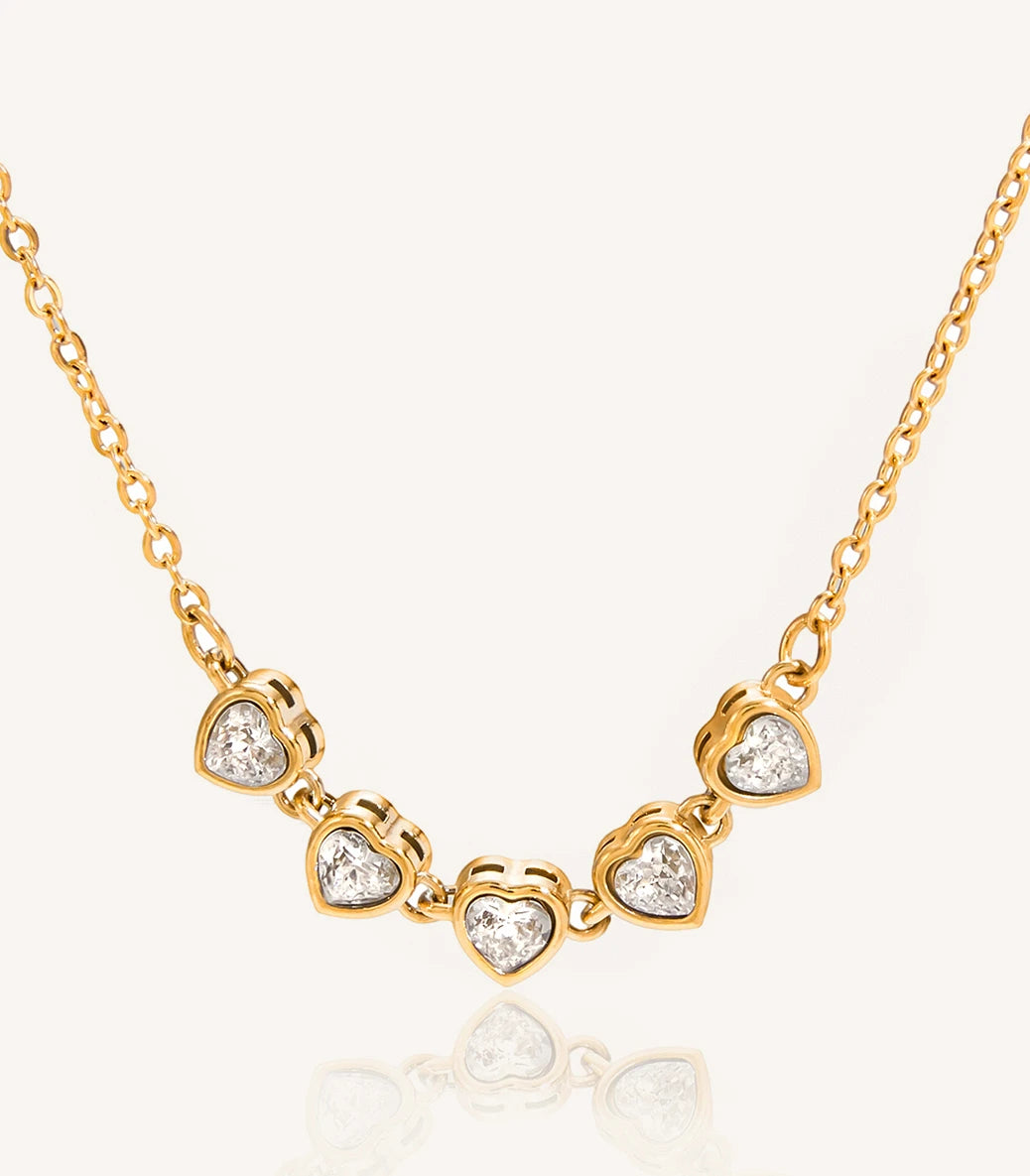 Колие със сърца с бели циркони