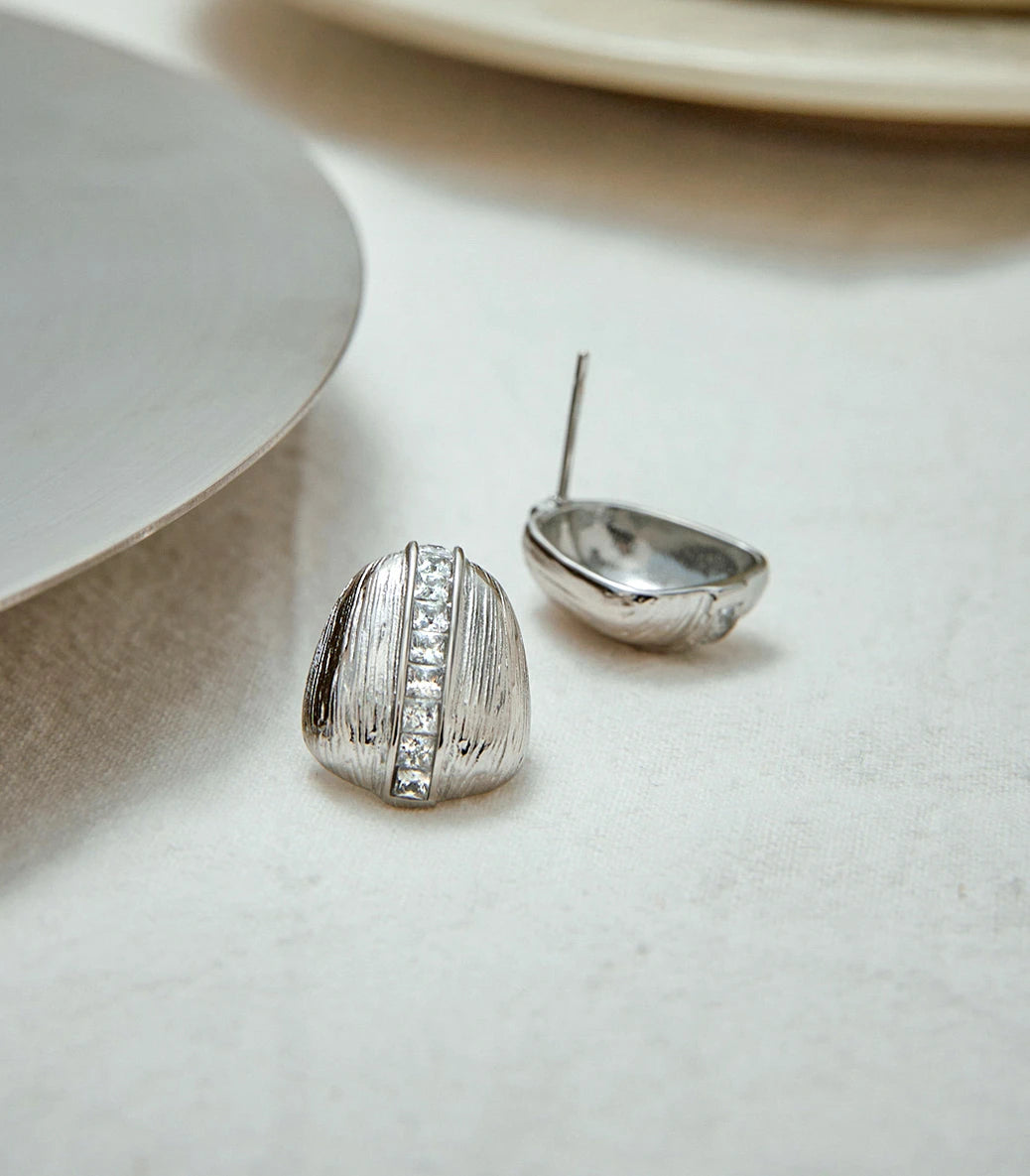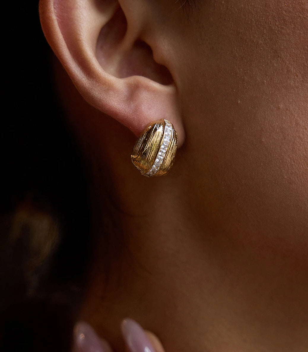 Обеци на винт с релефен ефект и циркони
