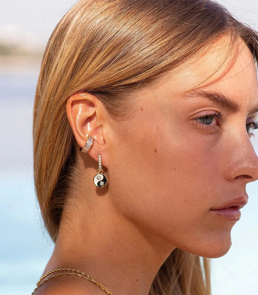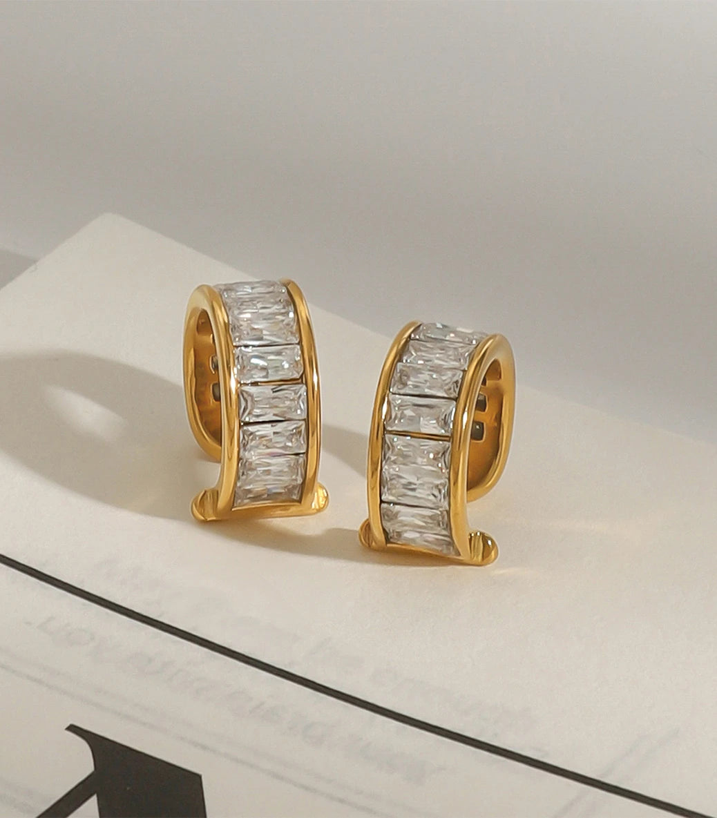 Обеци за хрущял с бели циркони
