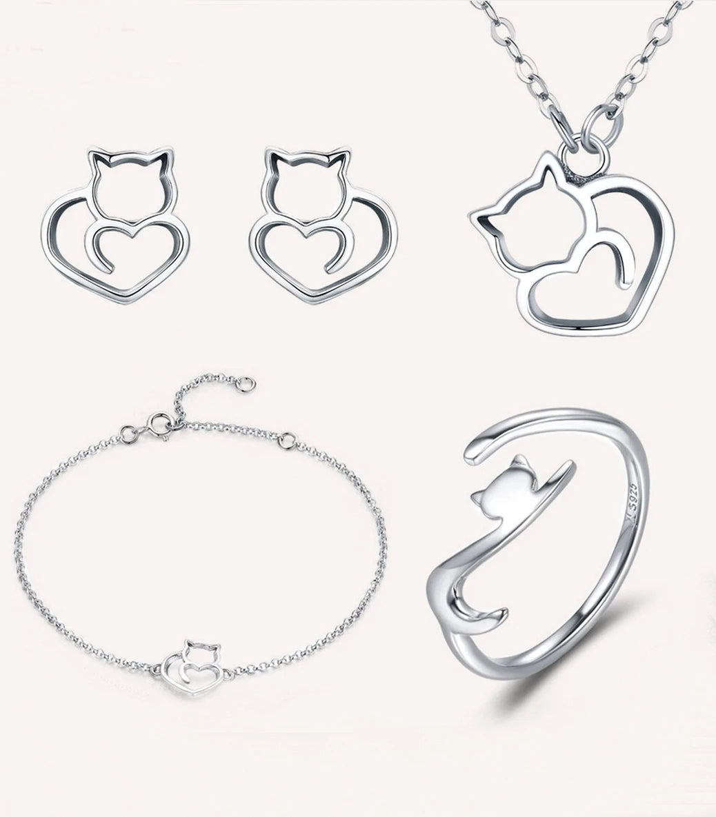Сребърни обеци с щифт, сребърно регулируемо колие, сребрен регулируем пръстен и сребърна регулируема гривна