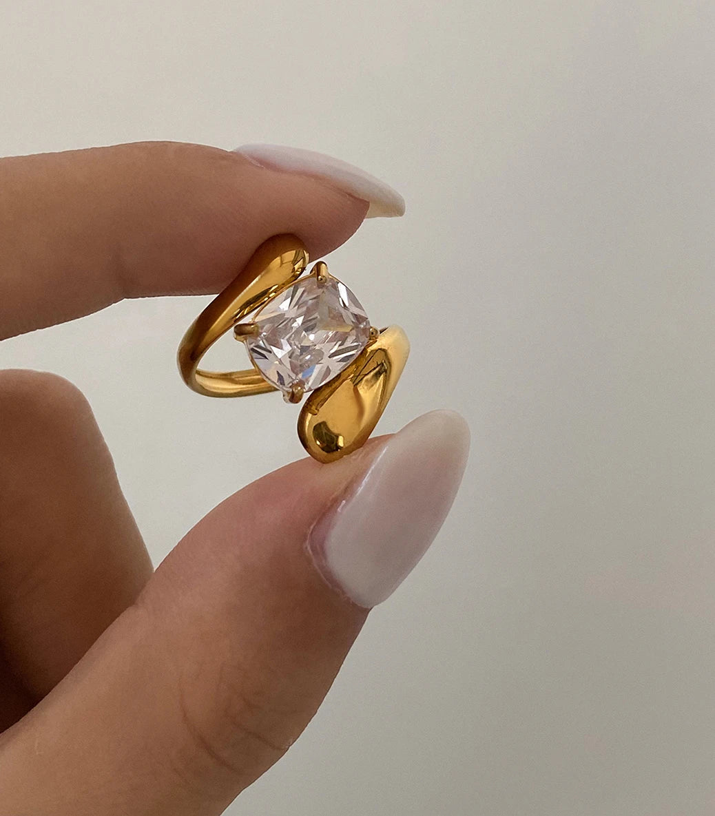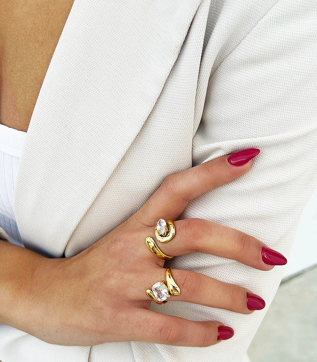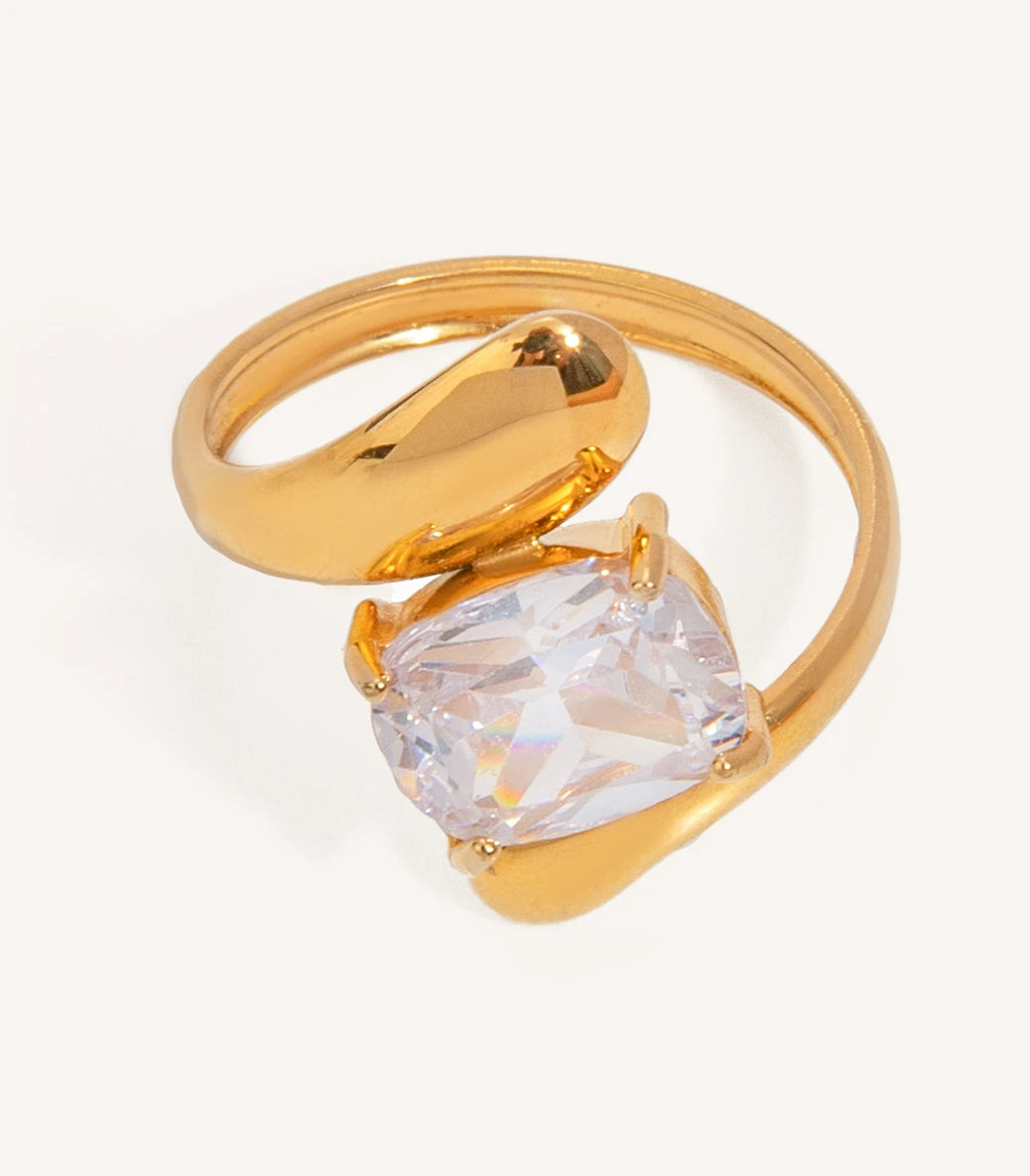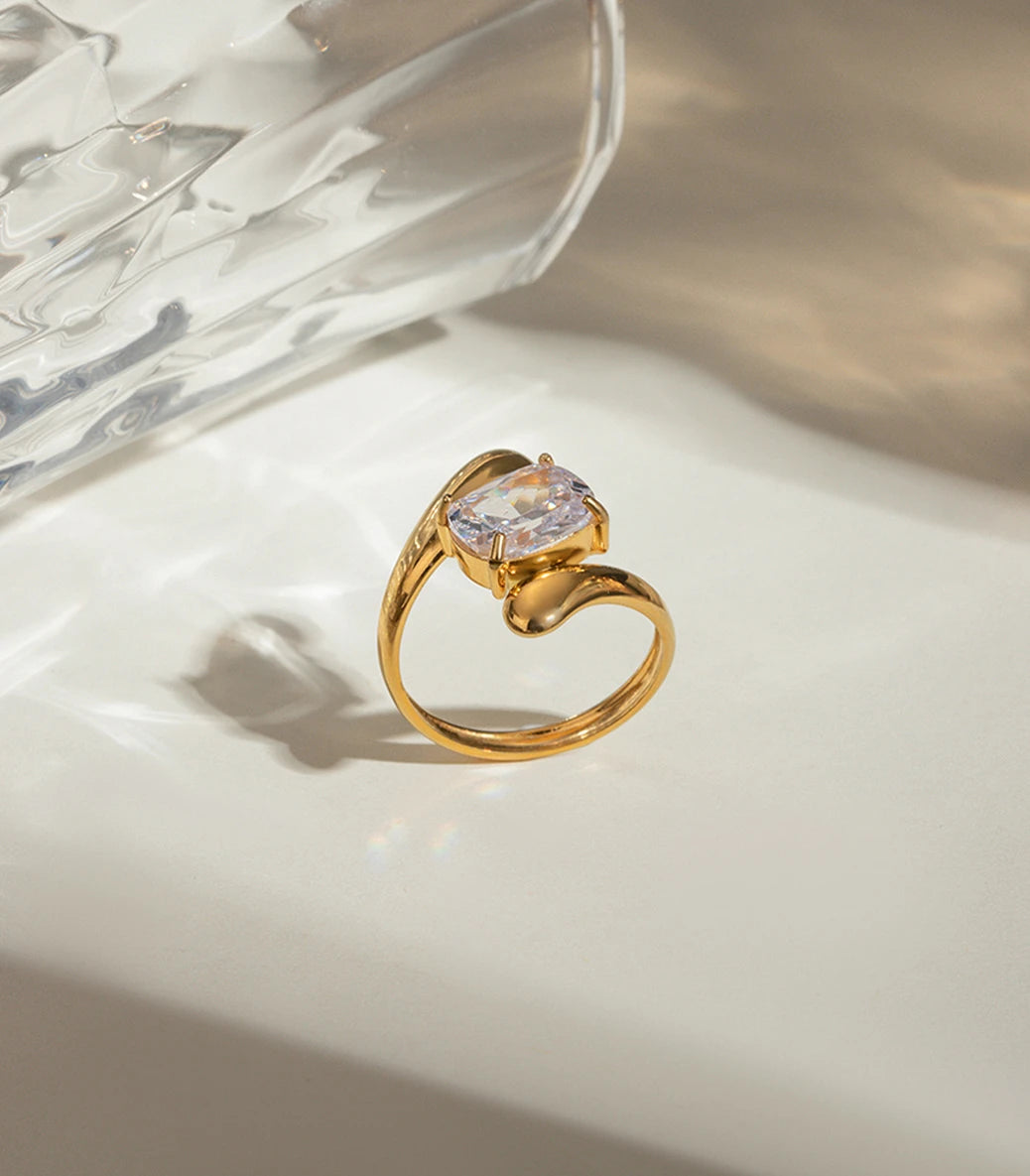 Регулируем пръстен drop с бял циркон