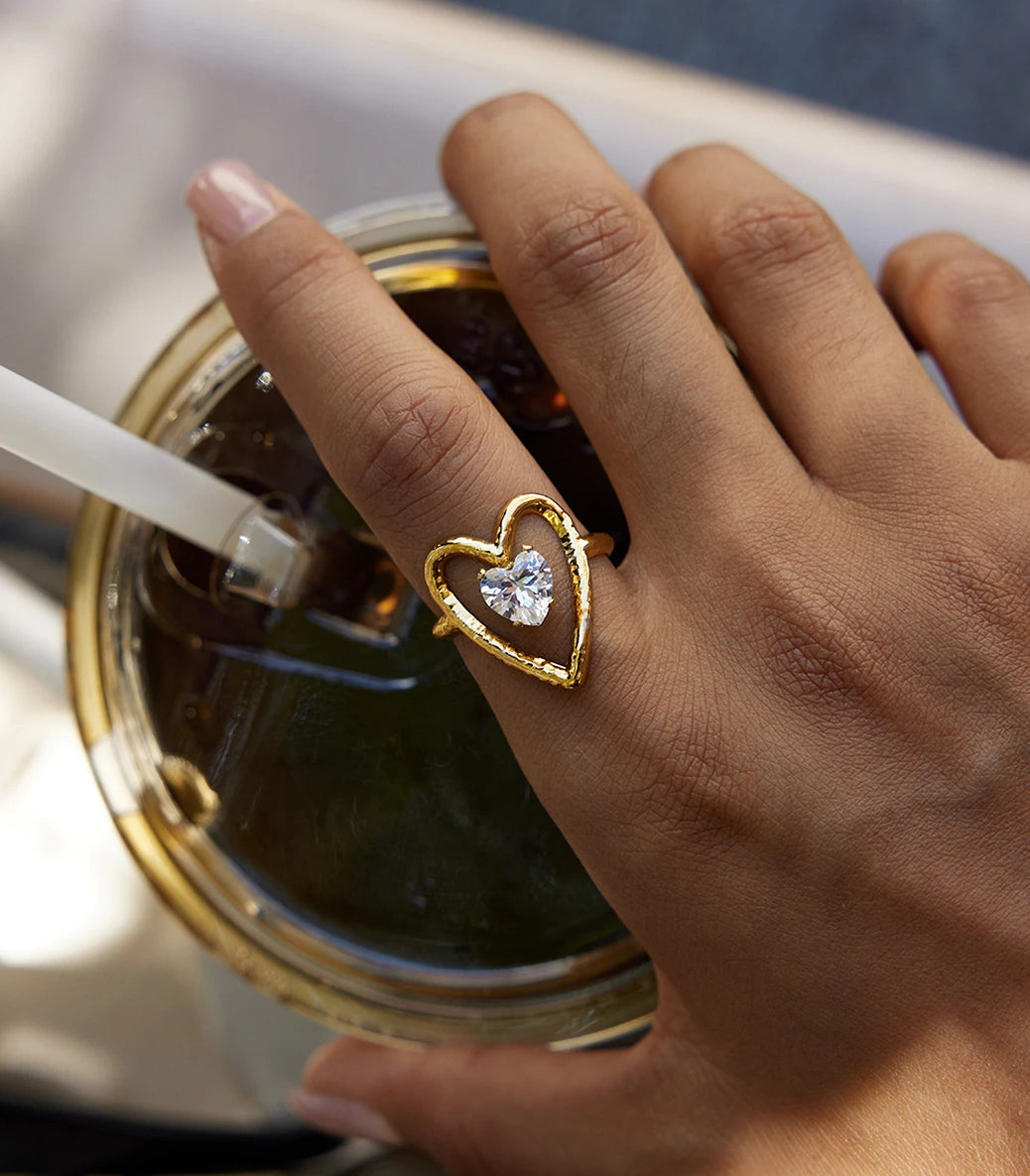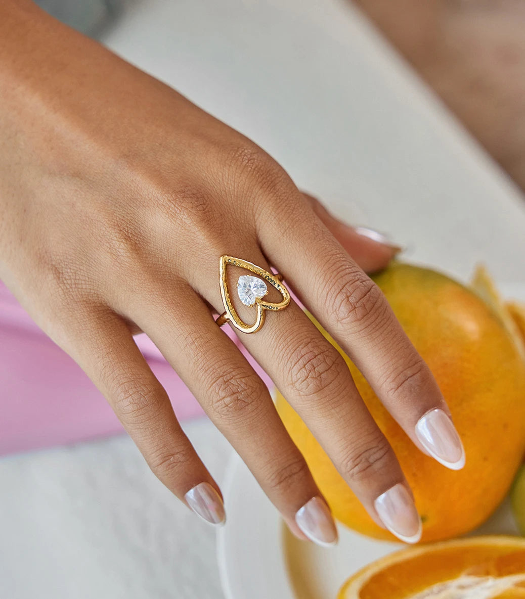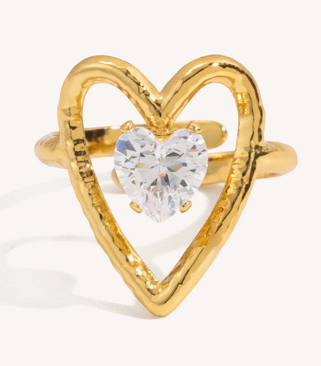 Регулируем пръстен сърце с циркон