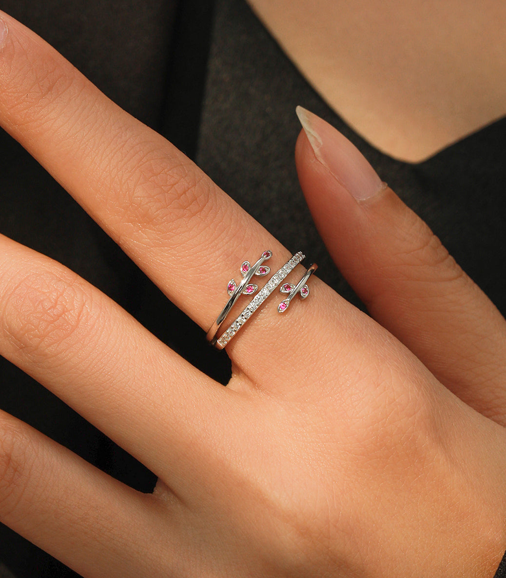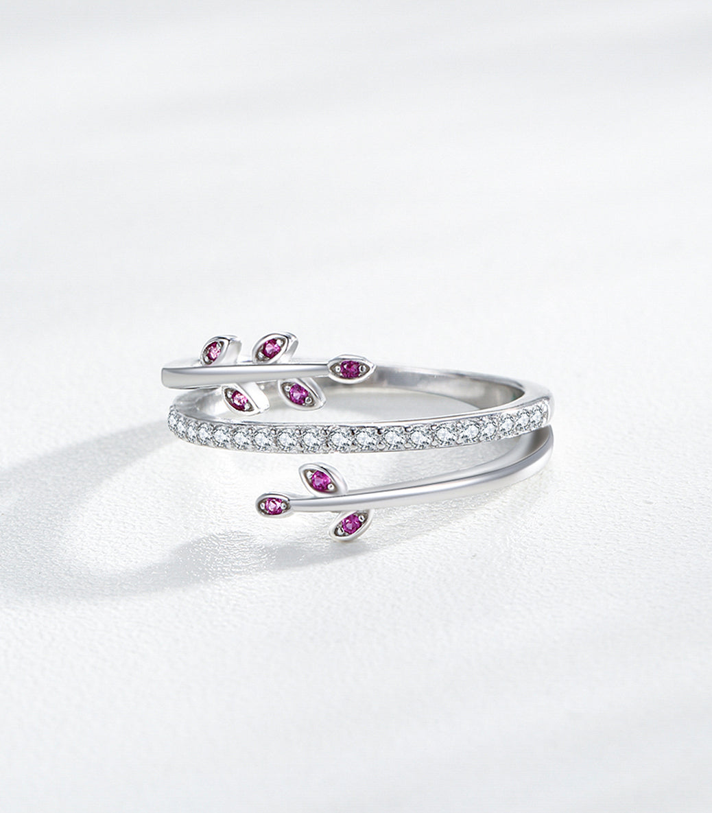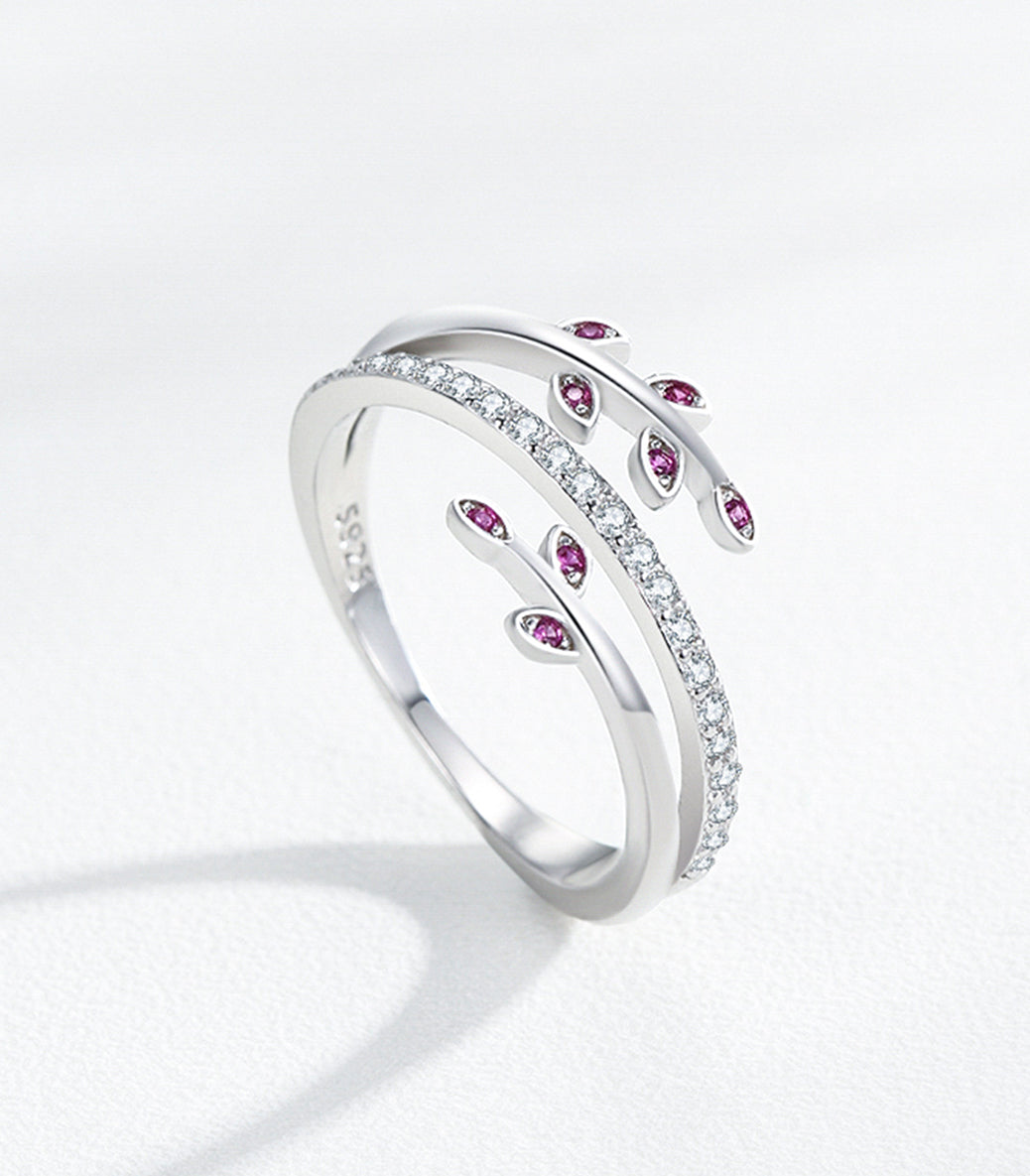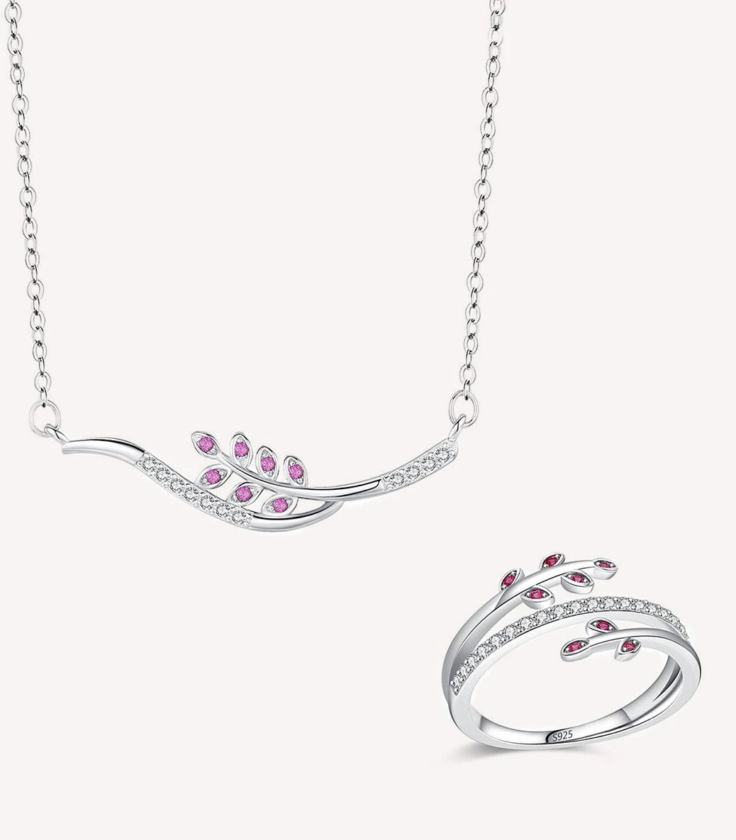 Сребърно регулируемо колие и сребрен пръстен, с бели и виолетови кубични циркони
