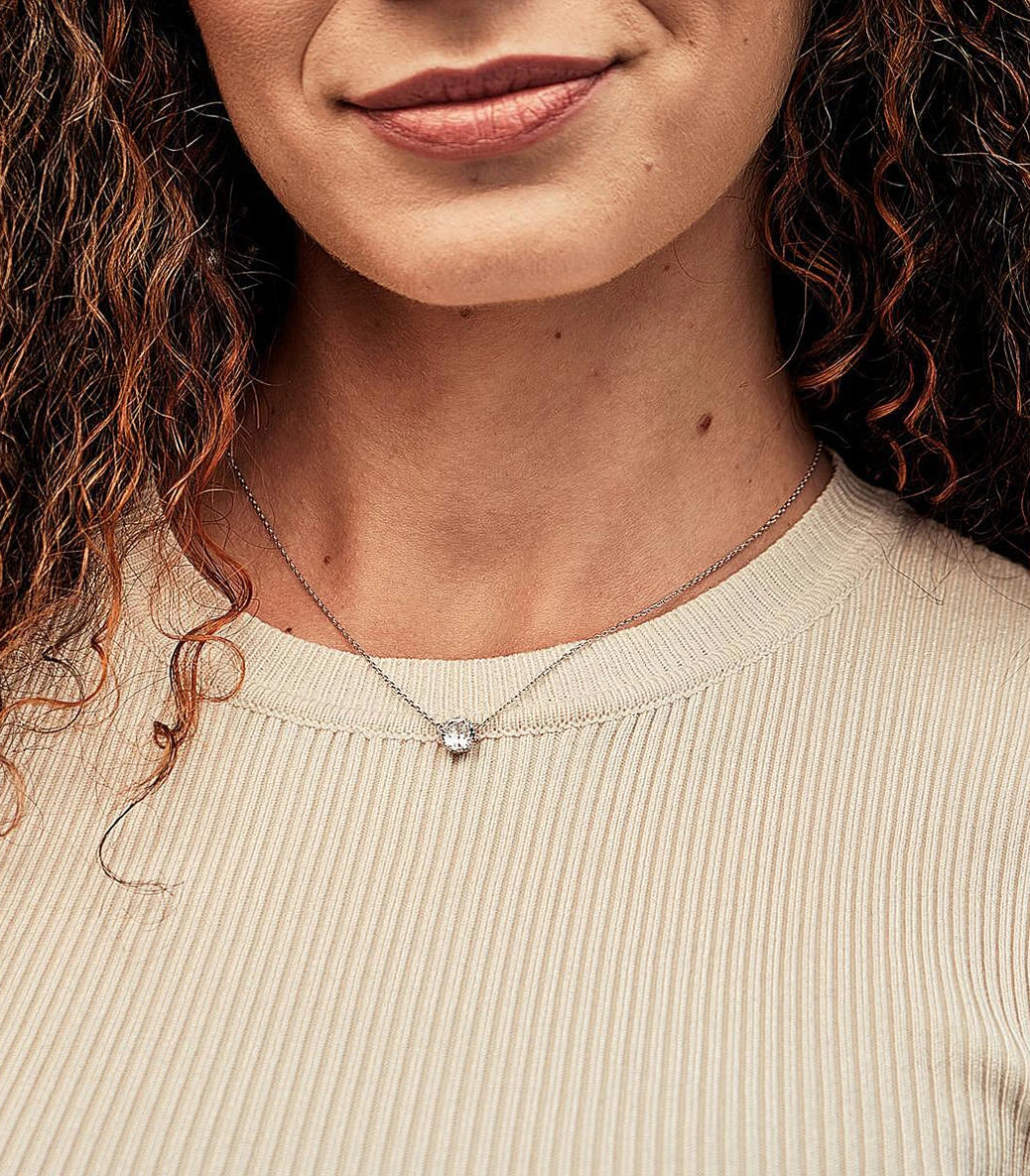 Сребърни обеци с бял фасетиран циркон и щифт и сребърно регулируемо колие с бял фасетиран циркон