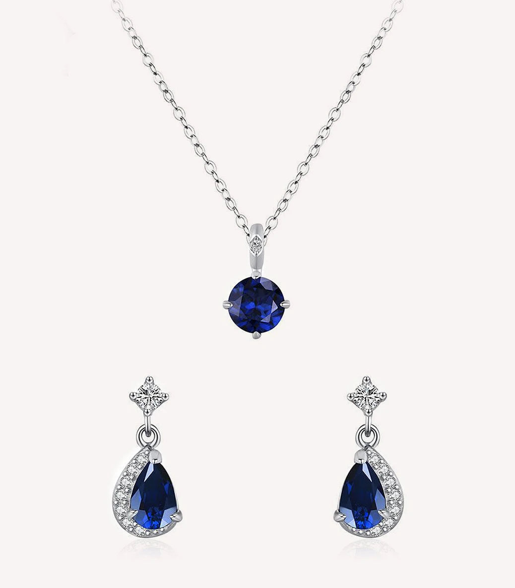 Сребърно регулируемо колие и сребърни обеци с щифт, с тъмносини и бели кубични циркони
