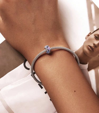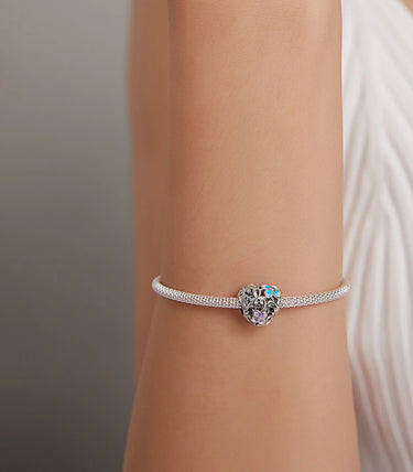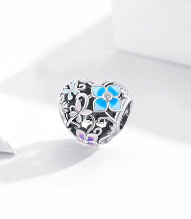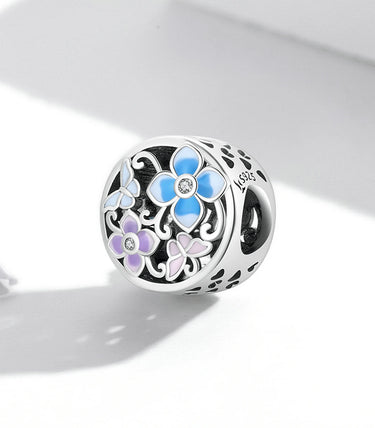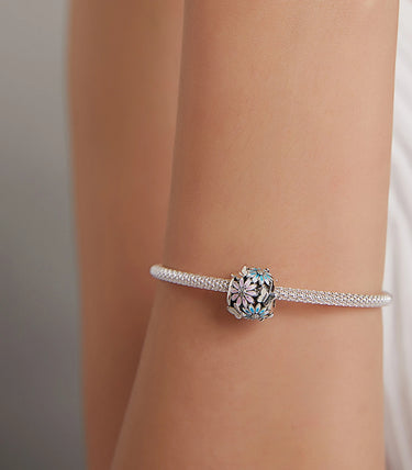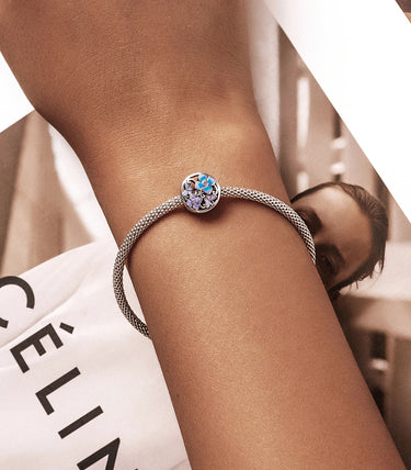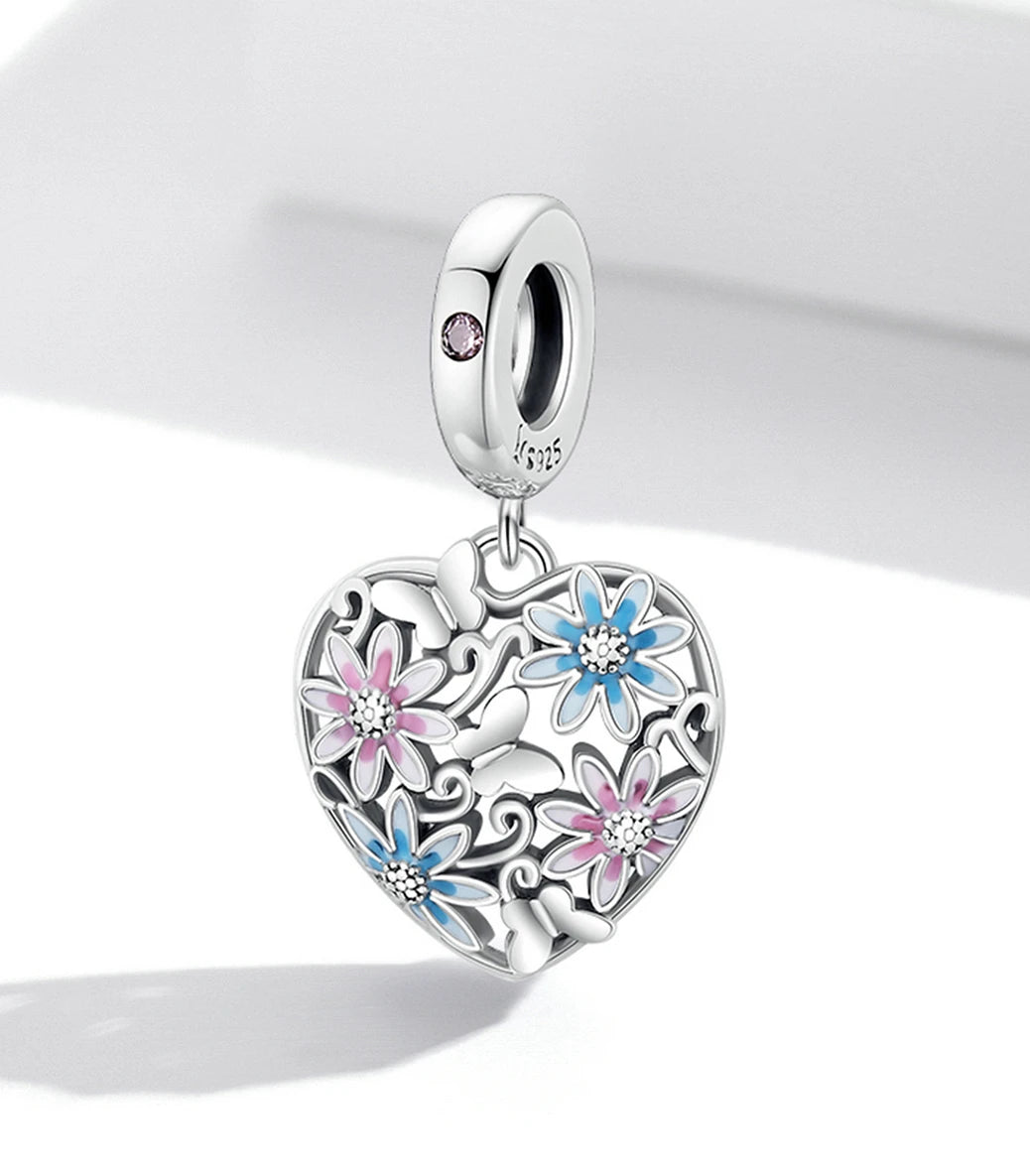 Сребърна висулка, сребърен разделител - стопер и сребърни талисмани с бял кубичен циркон и разноцветен емайл