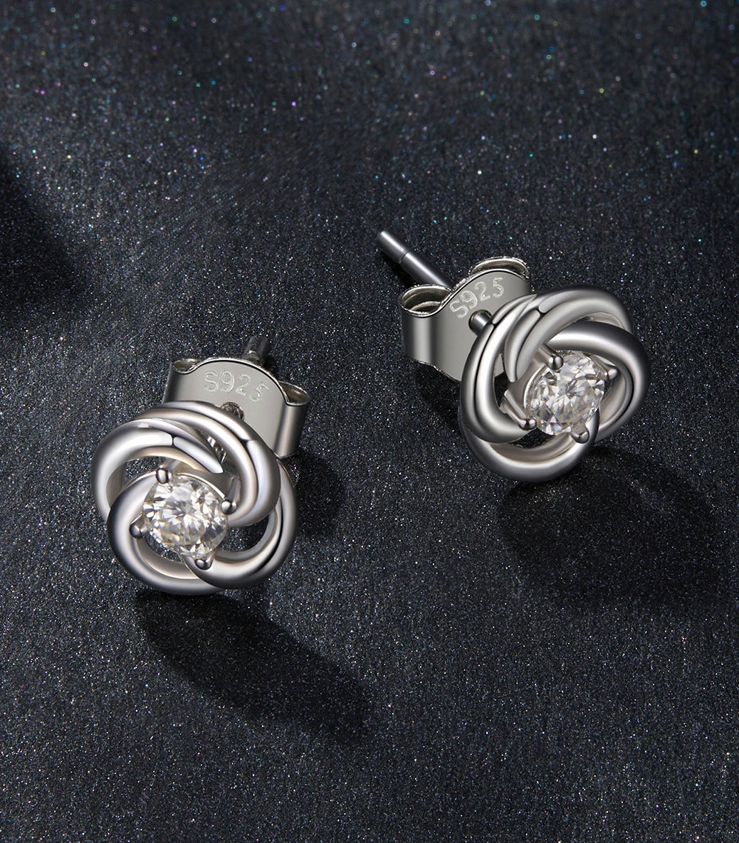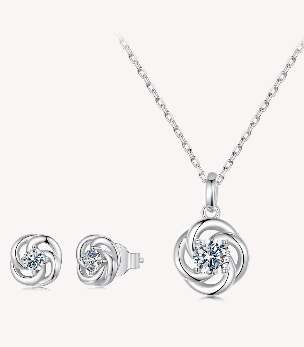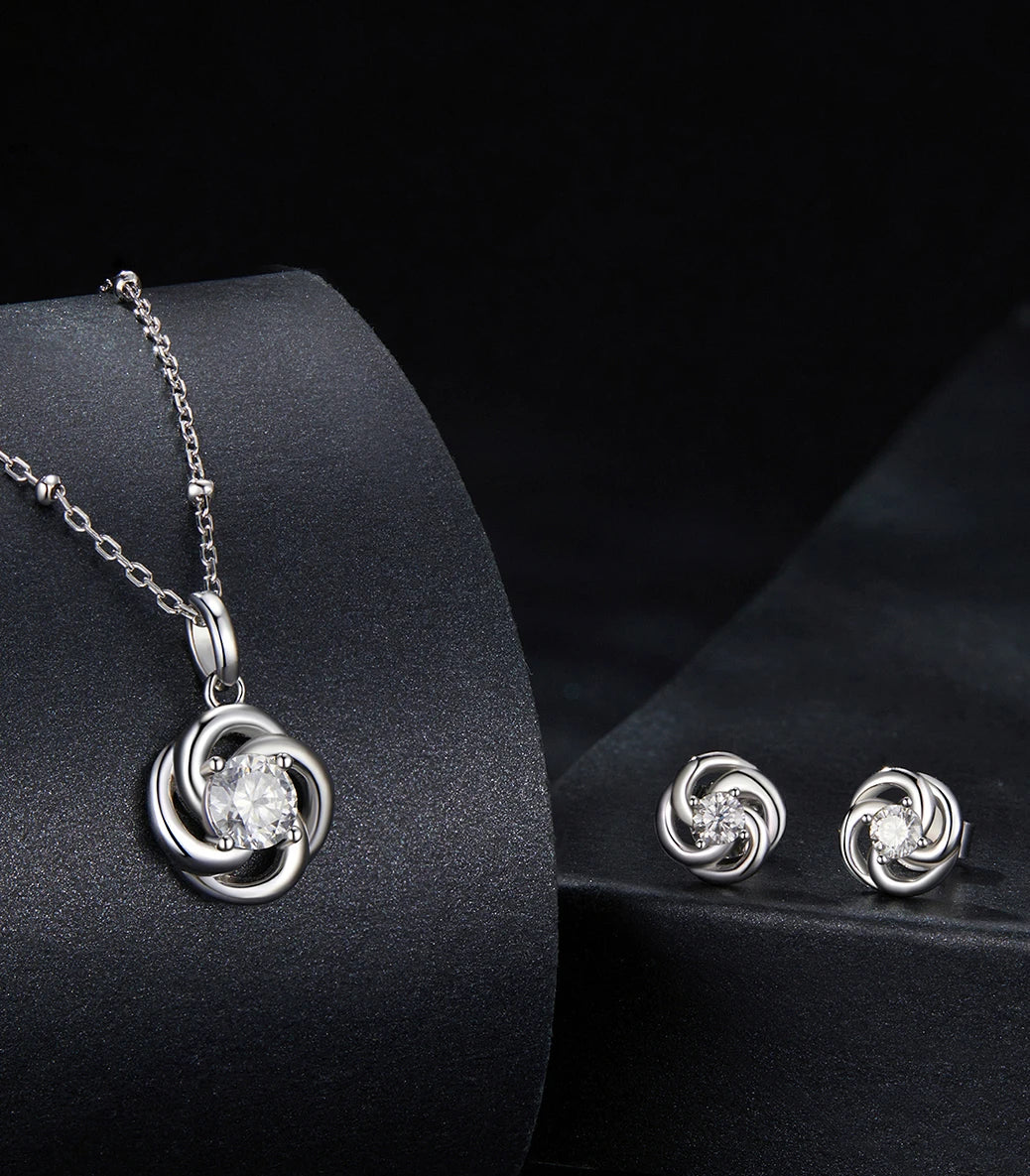 Сребърни обеци с винт и сребърно регулируемо колие със скъпоценния камък мойсанит