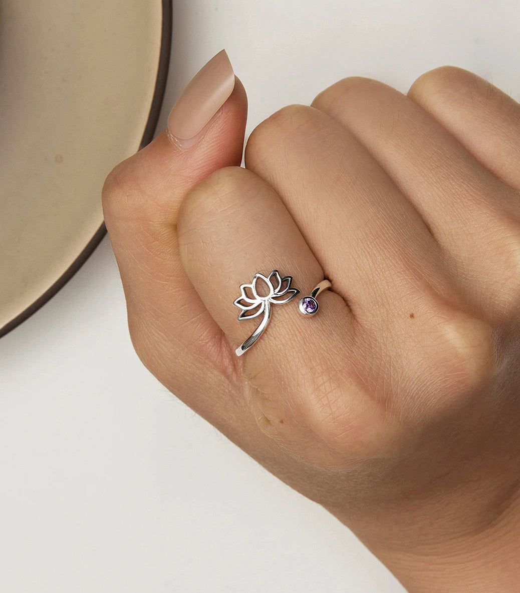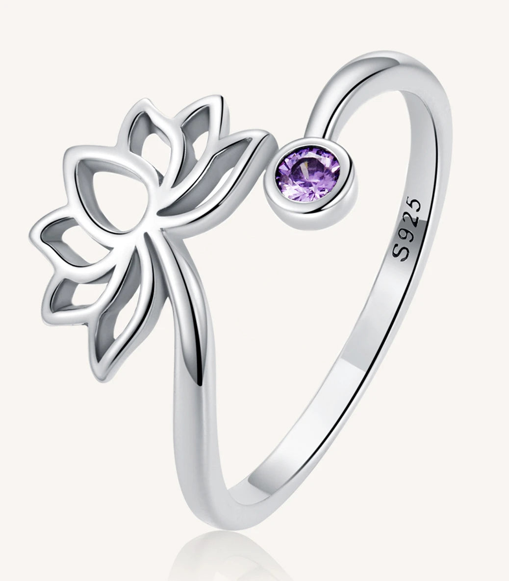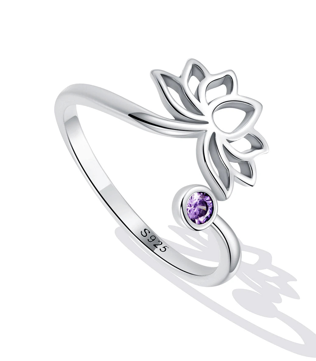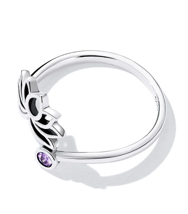 Сребърен регулируем пръстен с лилав кубичен циркон