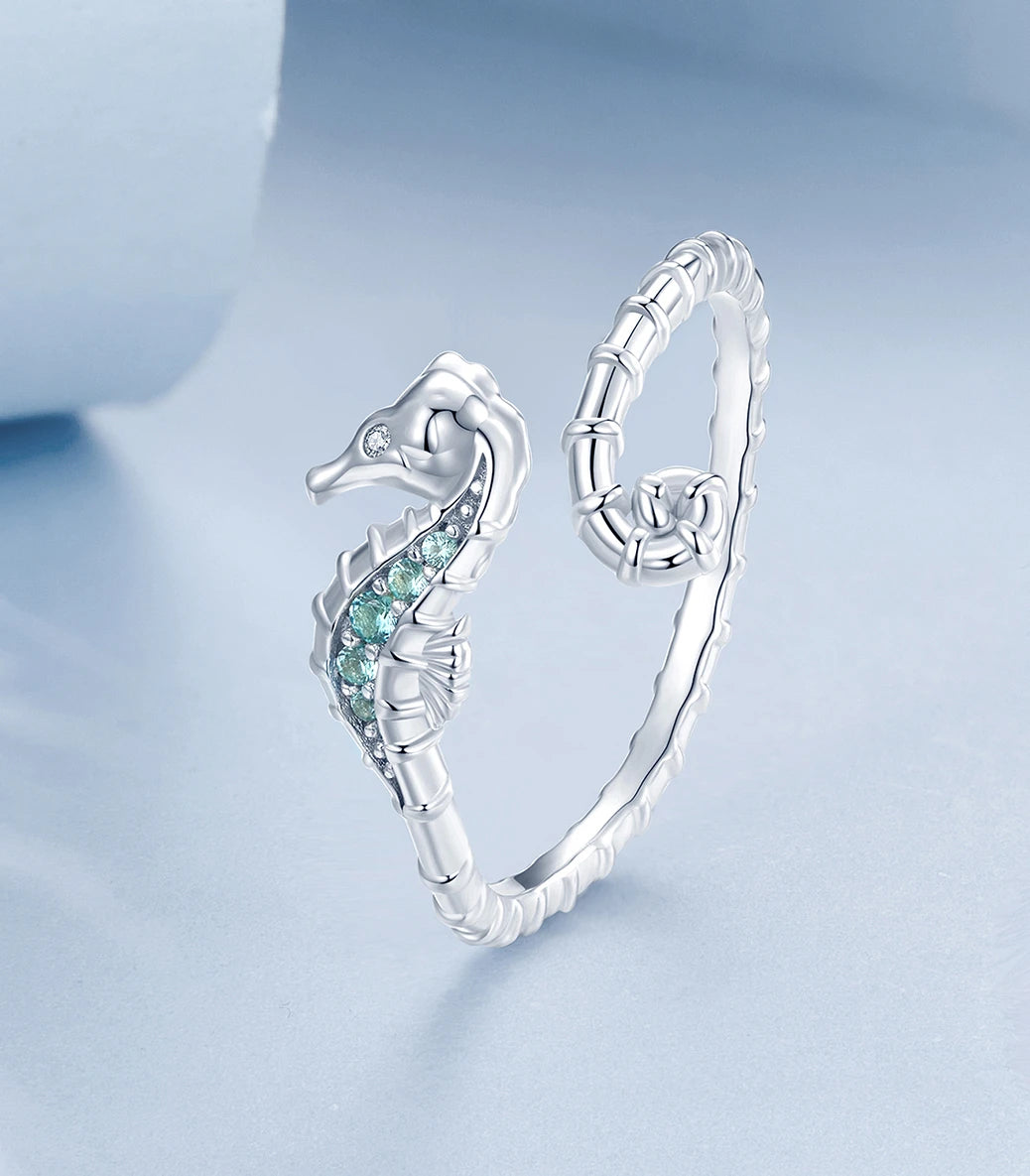 Сребърен регулируем пръстен с бял и тюркоазен кубичен циркон