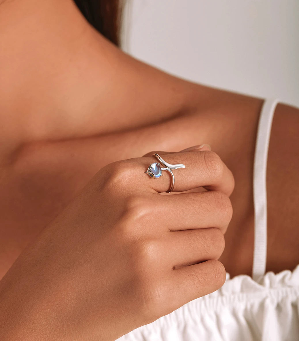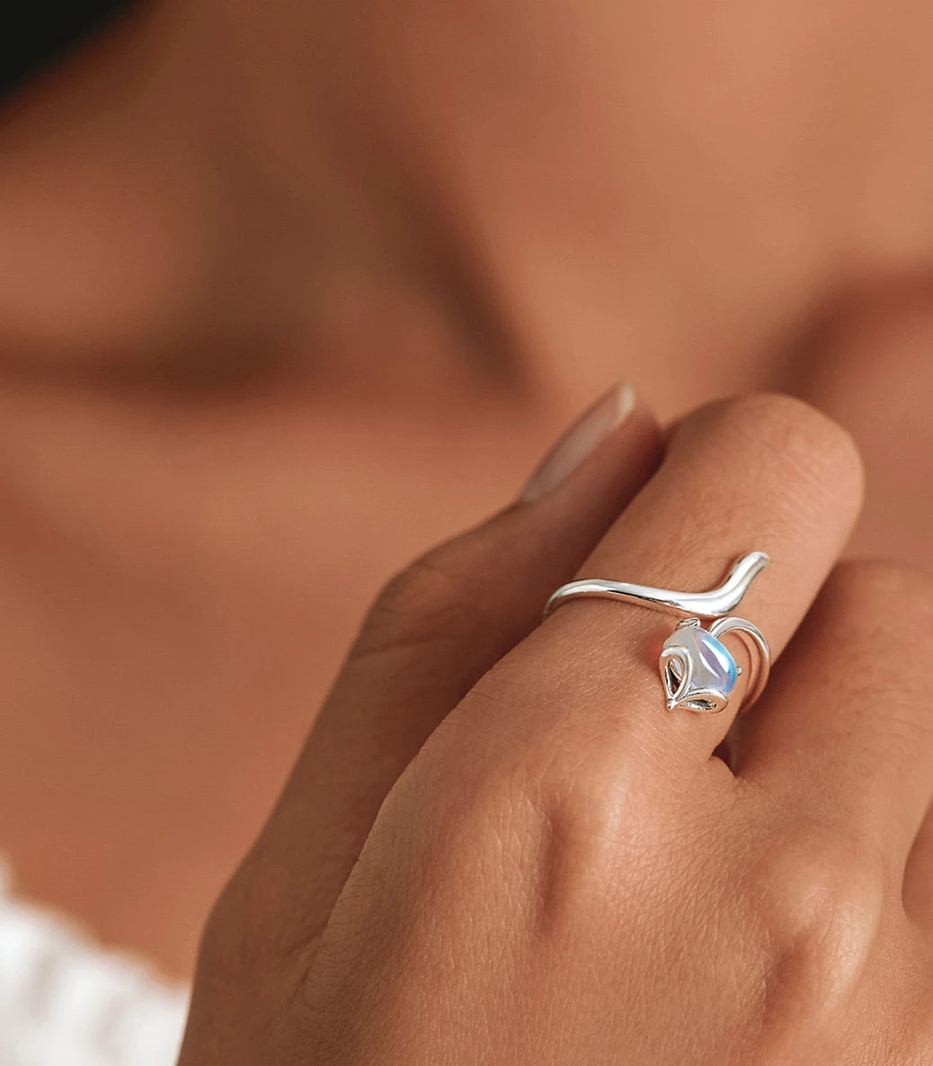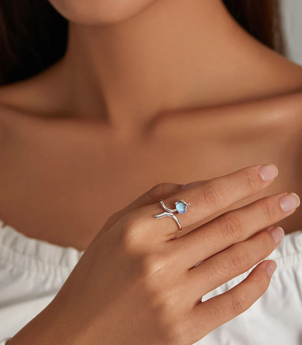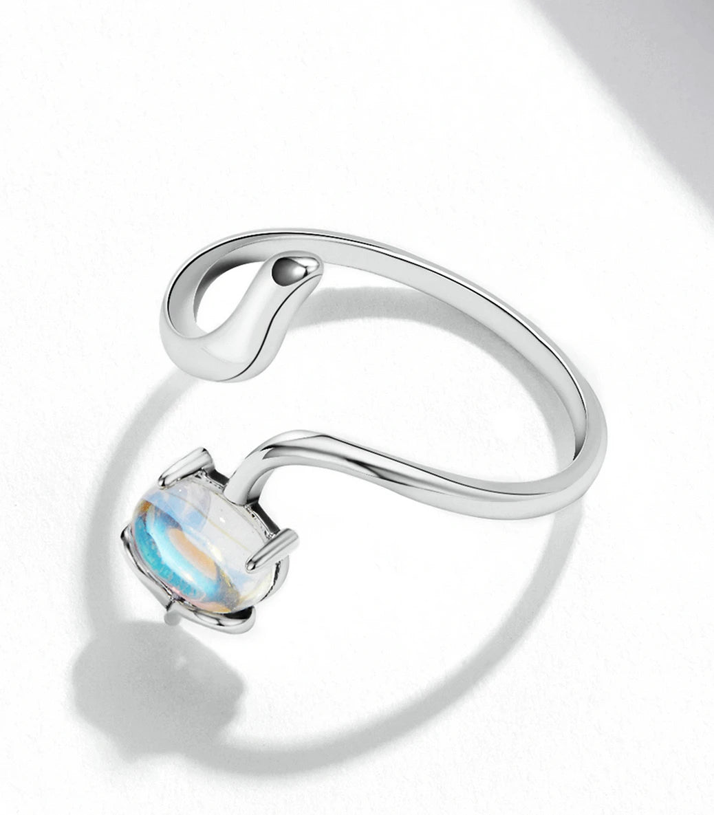 Сребърен регулируем пръстен със скъпоценния Лунен камък