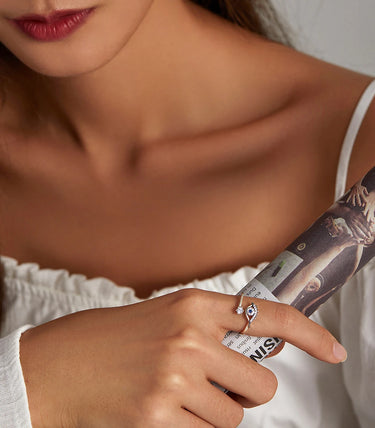 Сребърен регулируем пръстен с бял и син кубичен циркон