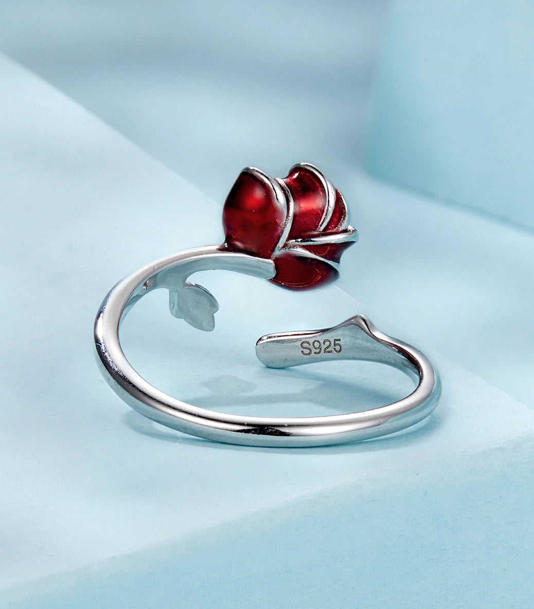 Сребърен регулируем пръстен с червен емайл