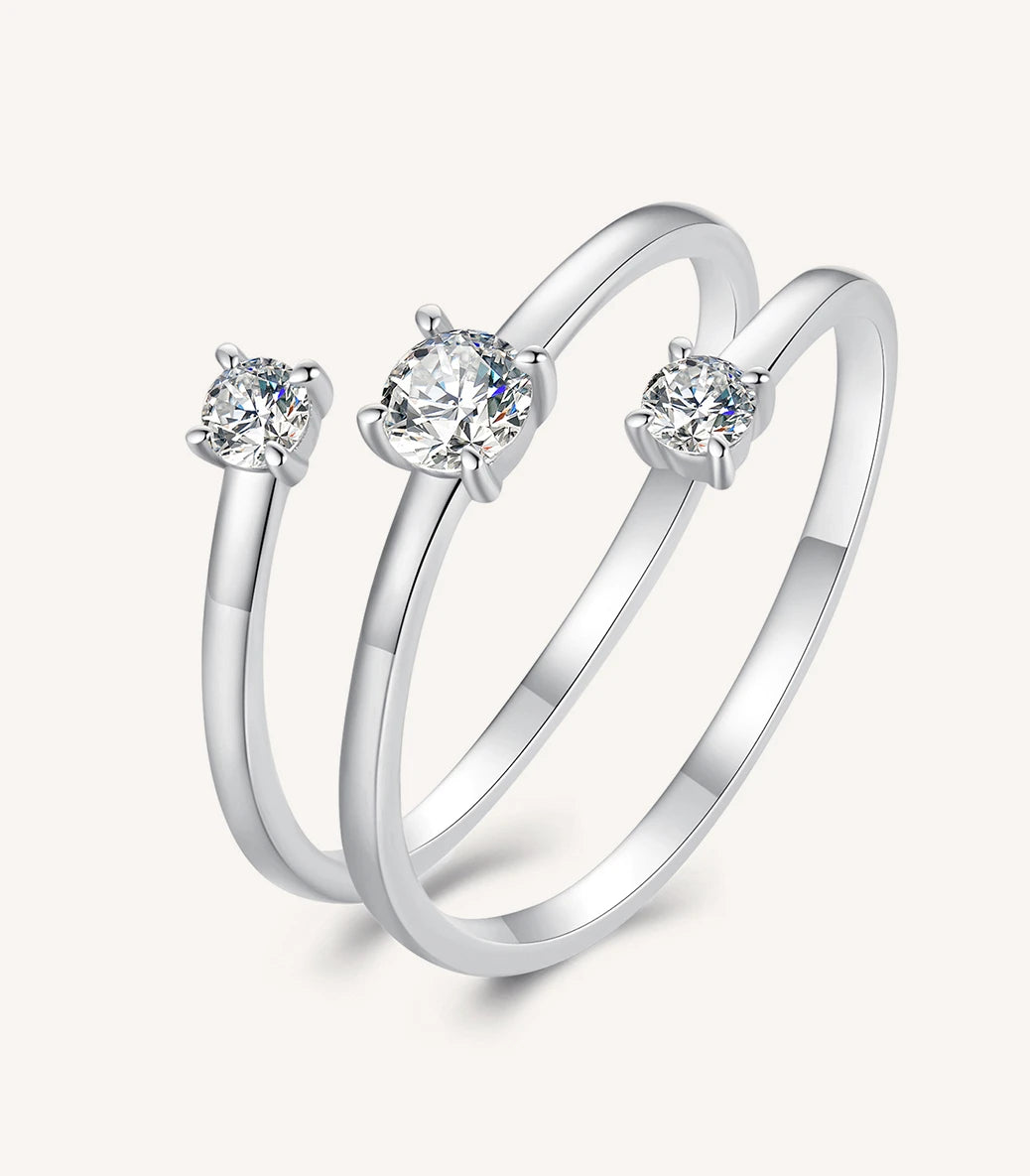 Сребърен регулируем пръстен със скъпоценния камък мойсанит