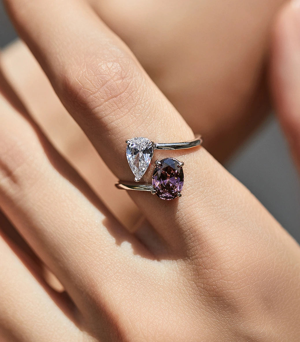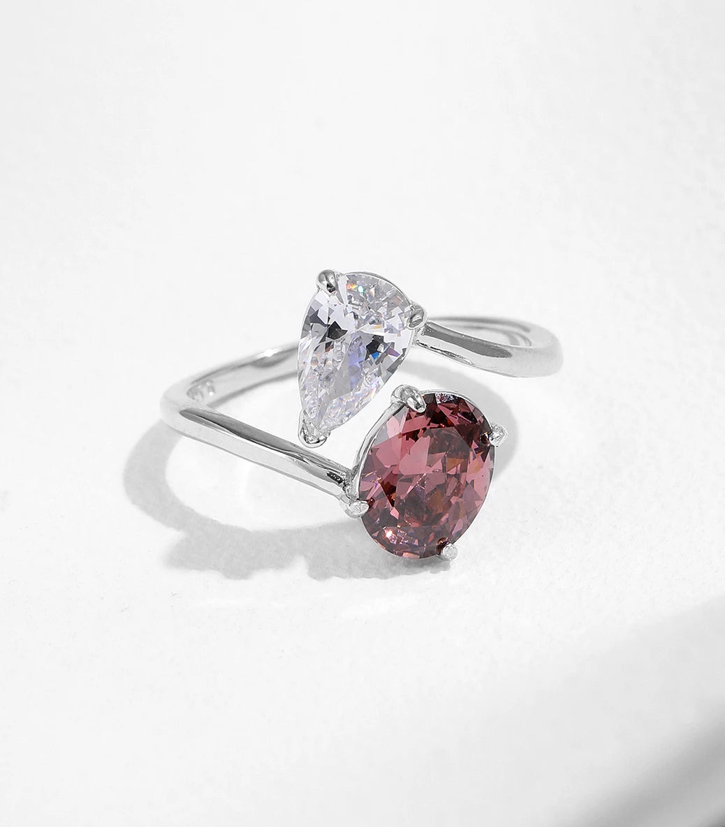 Сребърен пръстен с виолетово-кафяв кубичен циркон клас ААА