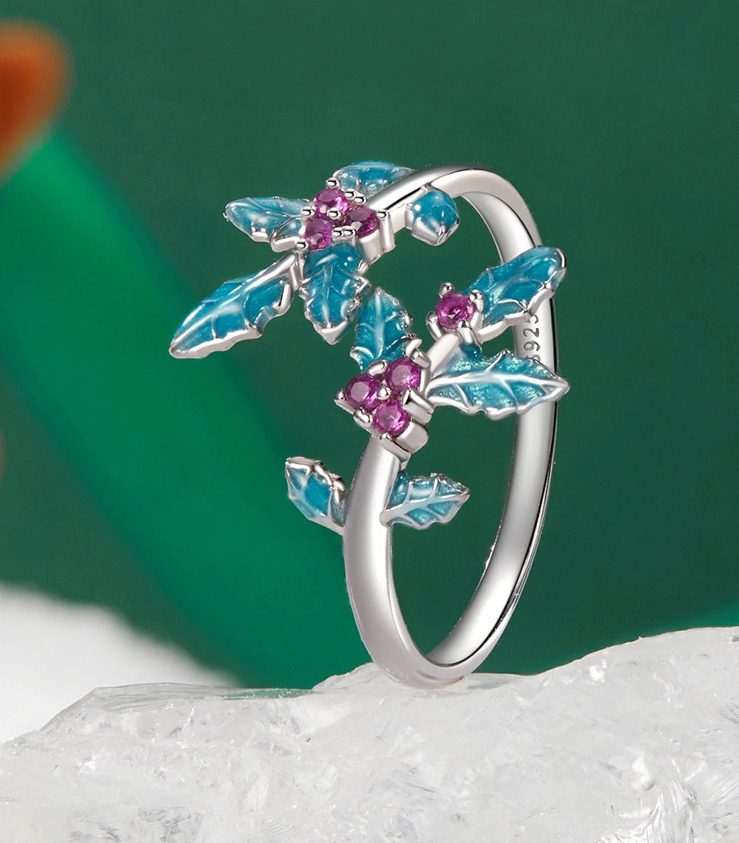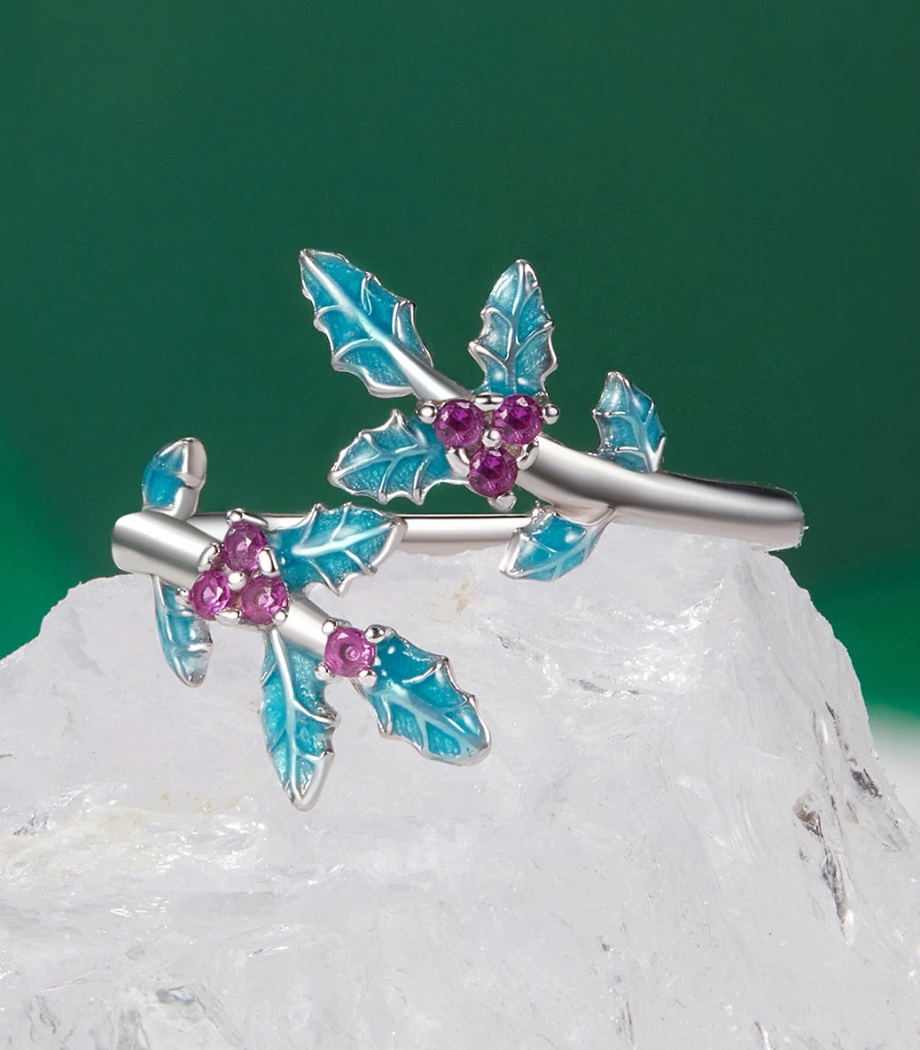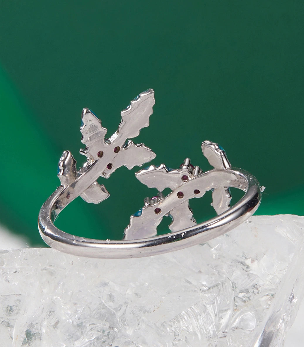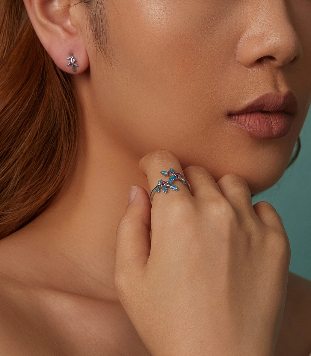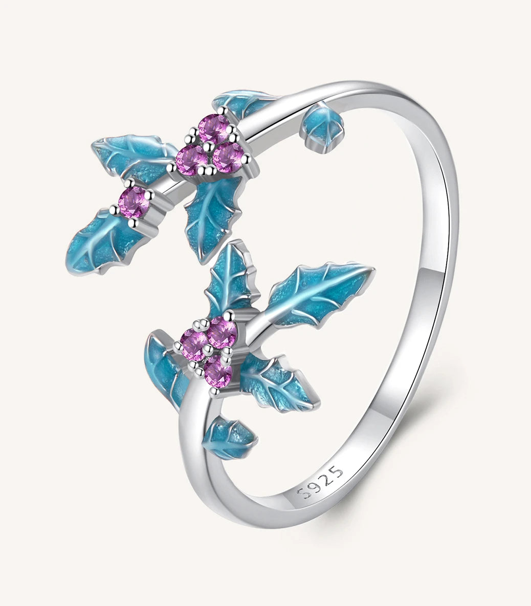 Сребърен регулируем пръстен с виолетов кубичен циркон и тюркоазен емайл