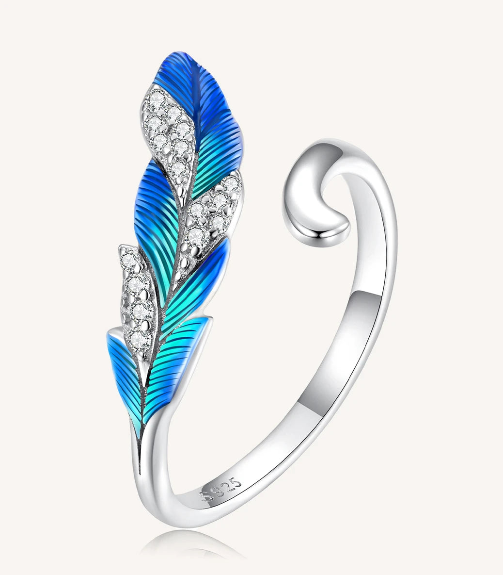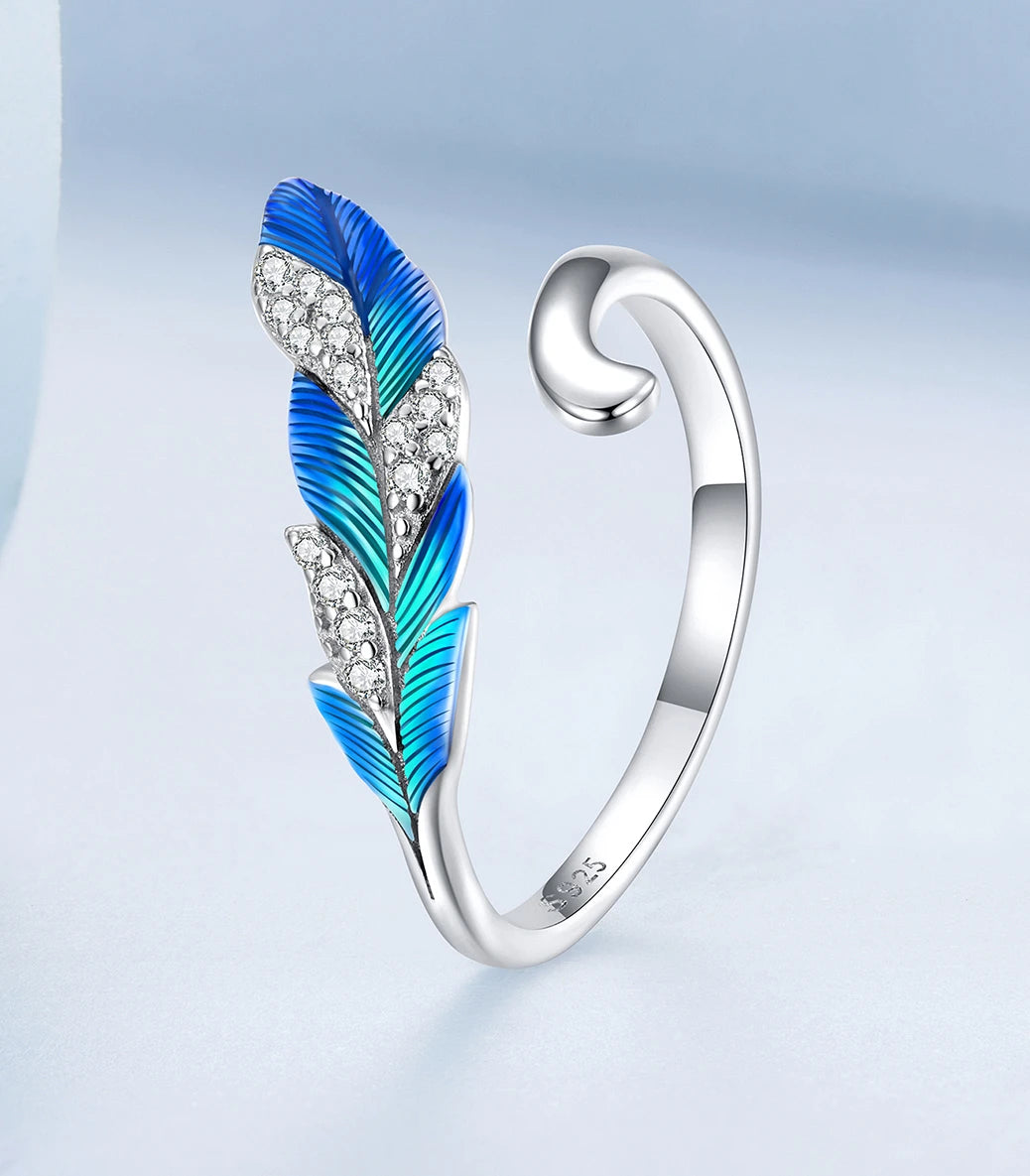 Сребърен регулируем пръстен с бял кубичен циркон и тюркоазен емайл