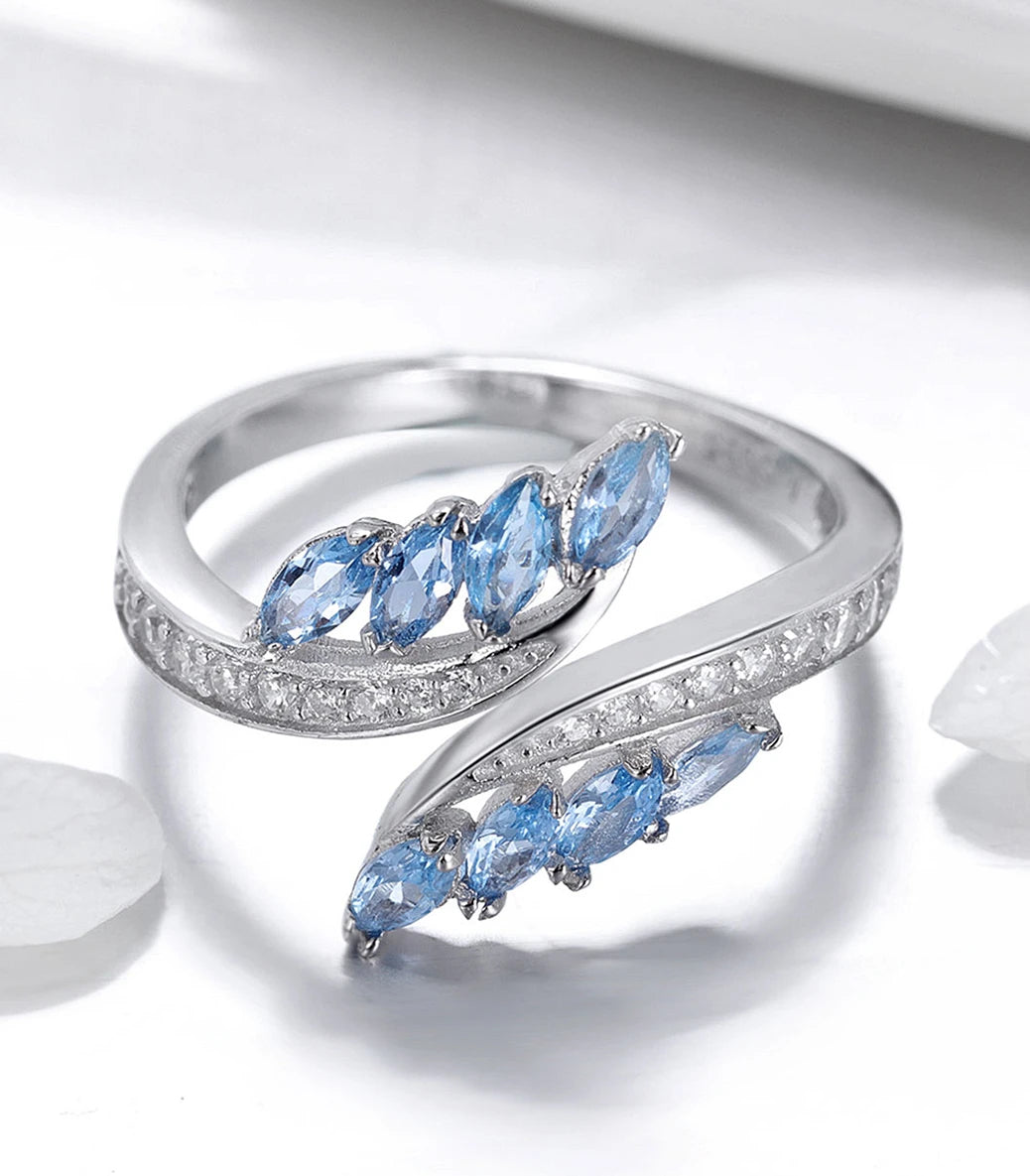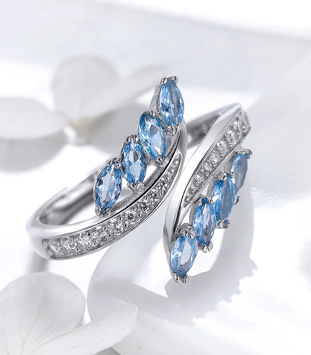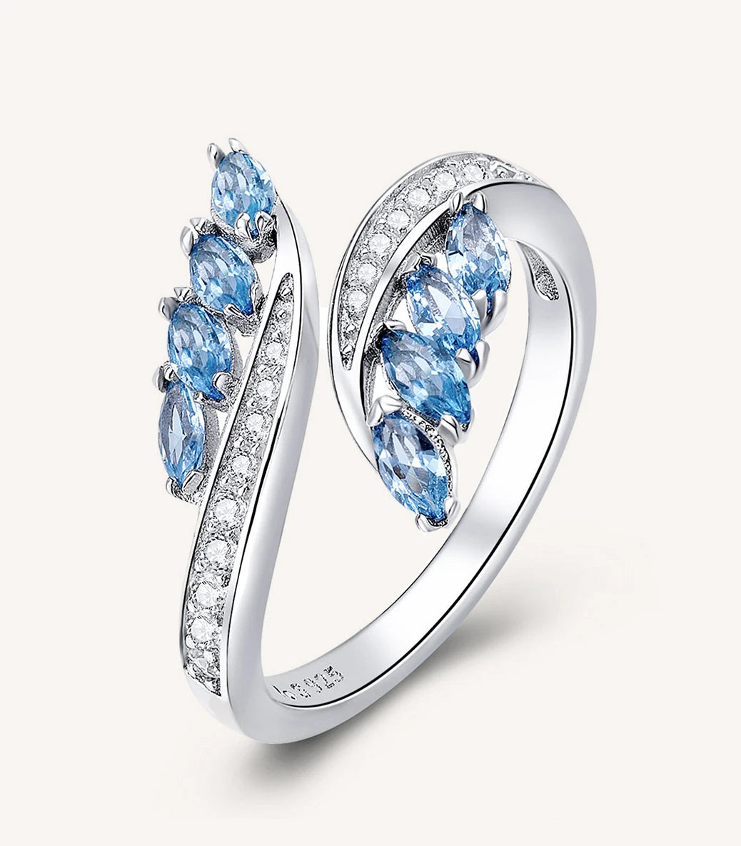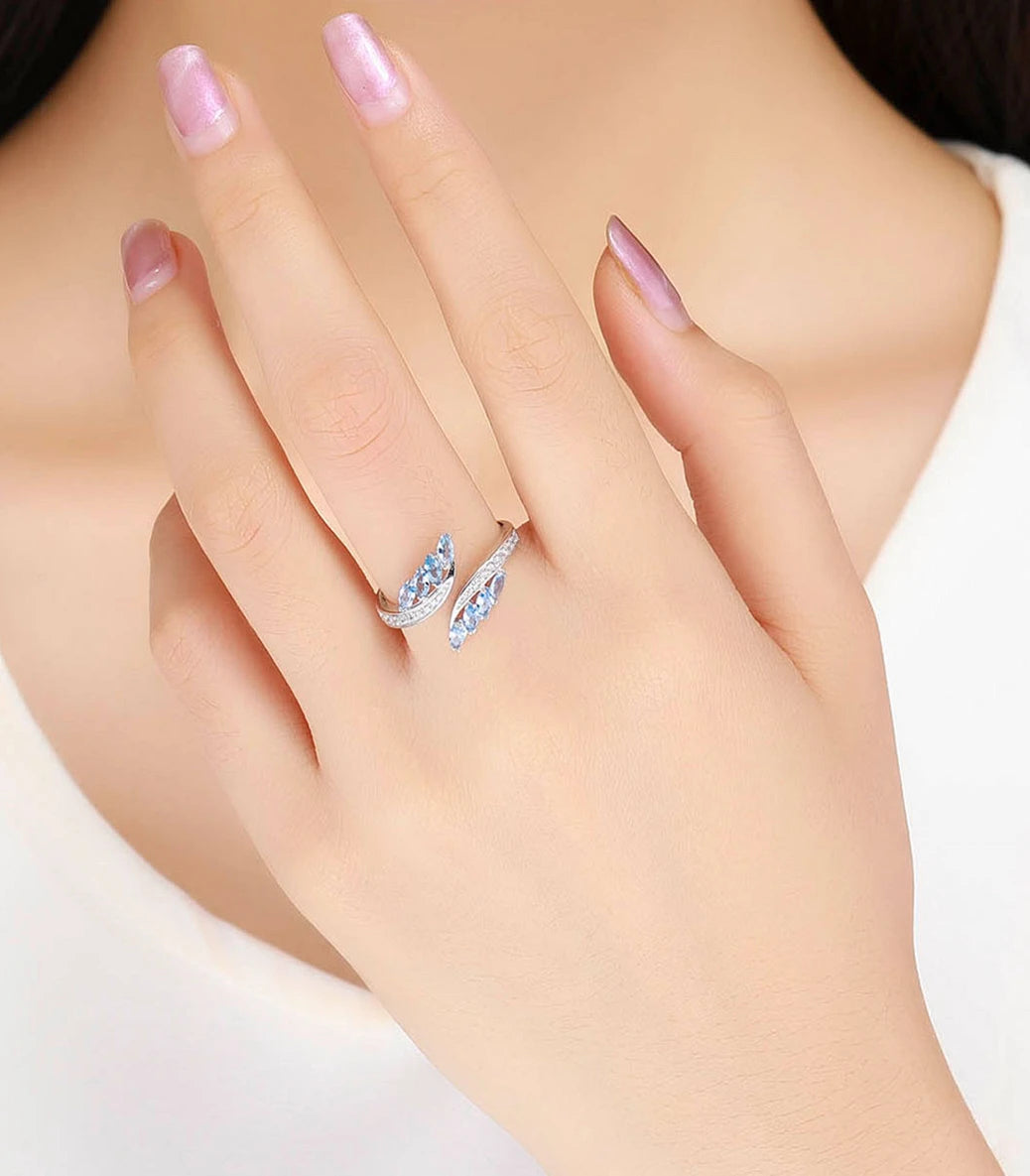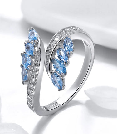Сребърен регулируем пръстен с бял и син кубичен циркон