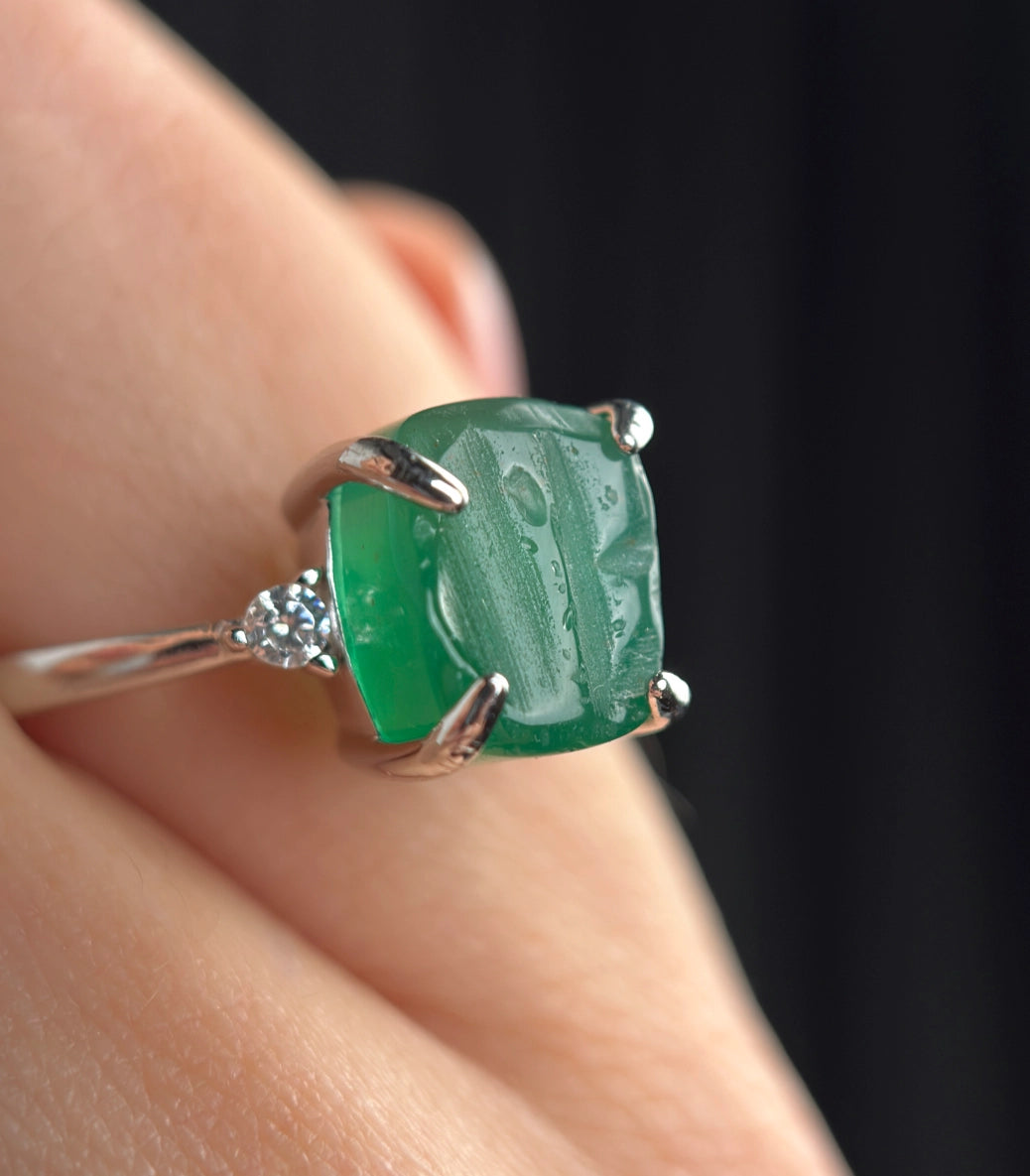 Камък: Естествен зелен ахат, кубичен циркон 5А