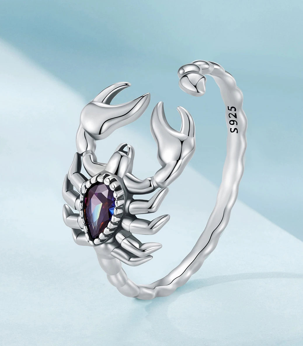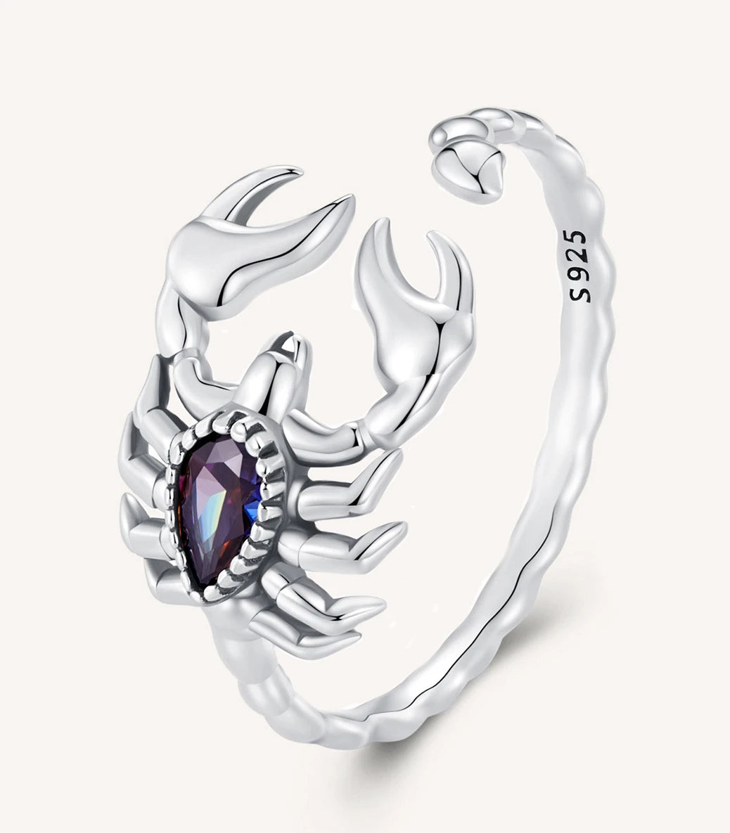 Сребърен регулируем пръстен с виолетов кубичен циркон
