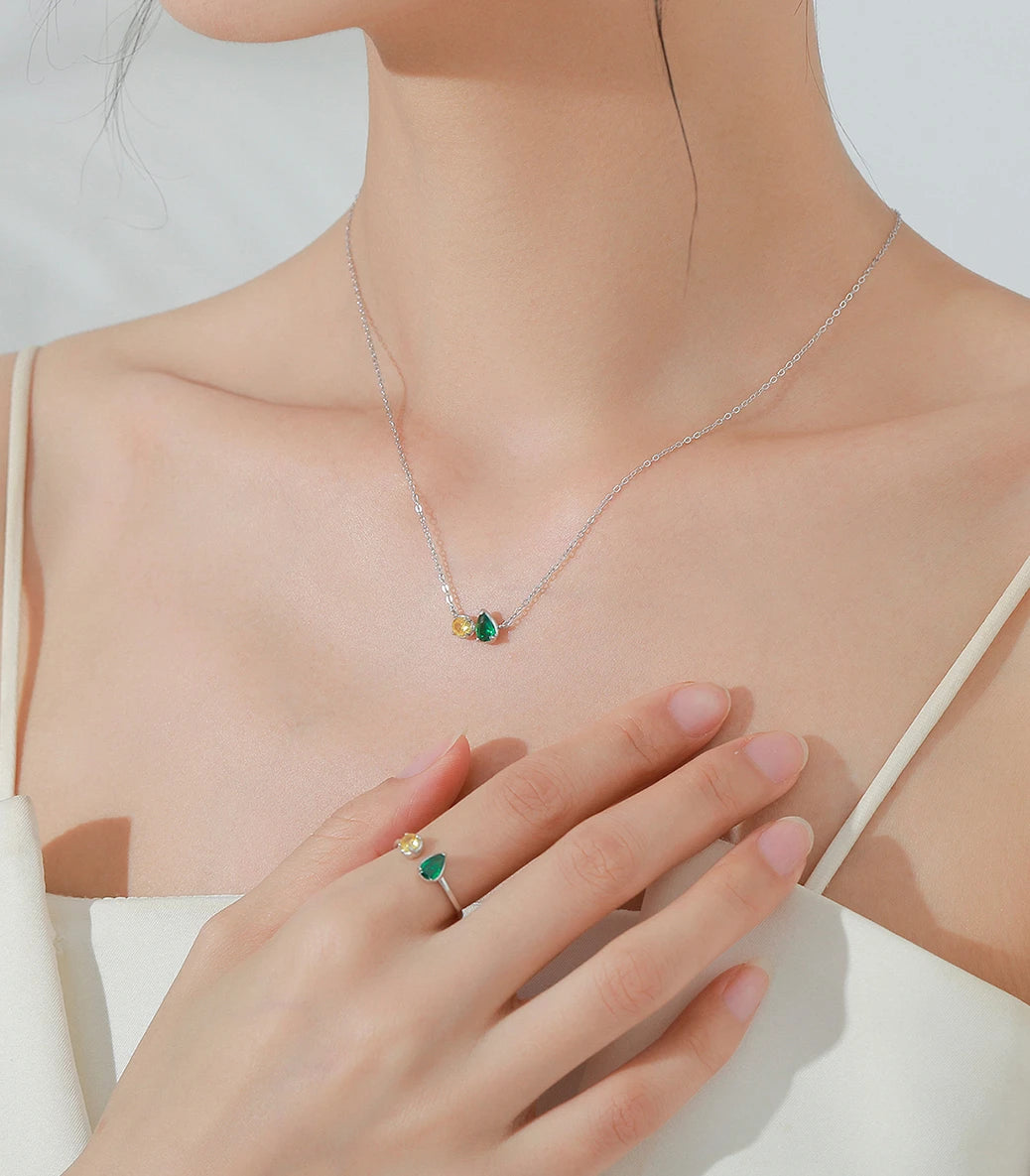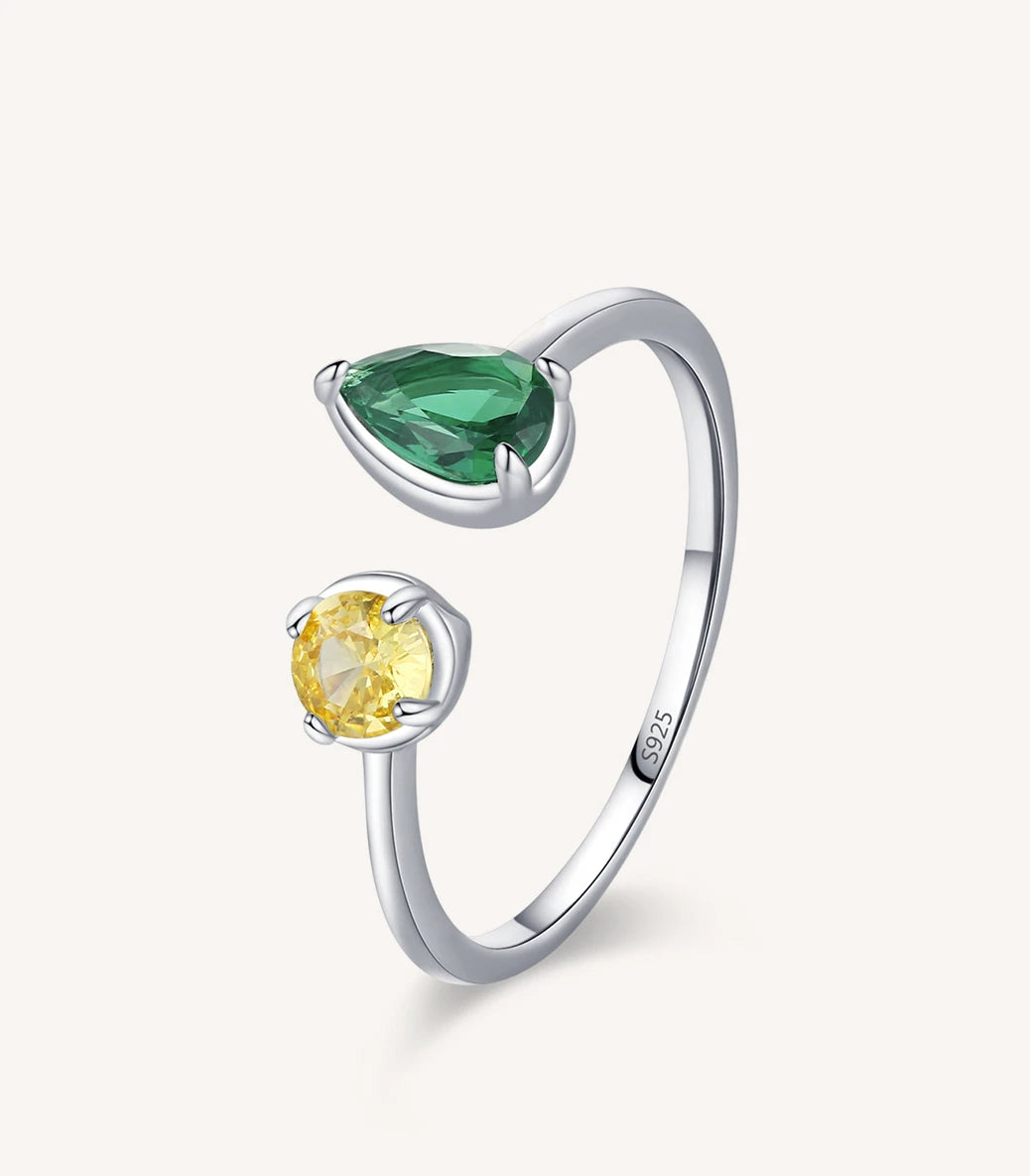 Сребърен регулируем пръстен с жълт и зелен кубичен циркон