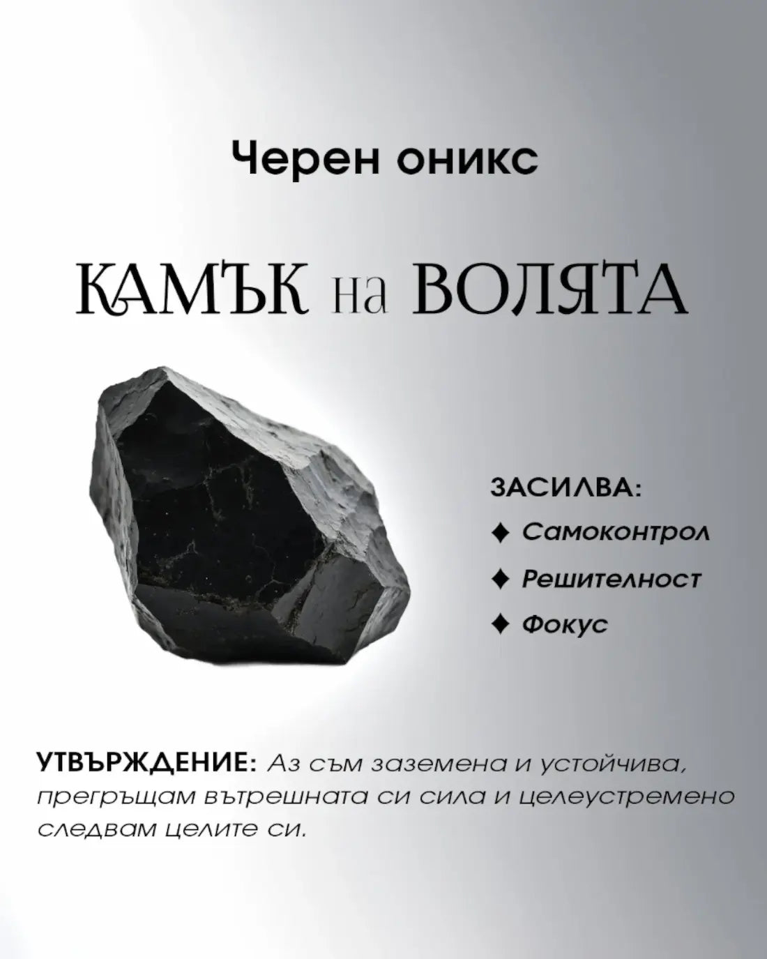 Черният оникс е камъкът на волята - силен, земен и без излишен шум. В езотеричната традиция се свързва с дисциплина, фокус и самоконтрол, когато не ти трябва „мотивация за два часа“, а стабилност да довършиш започнатото.