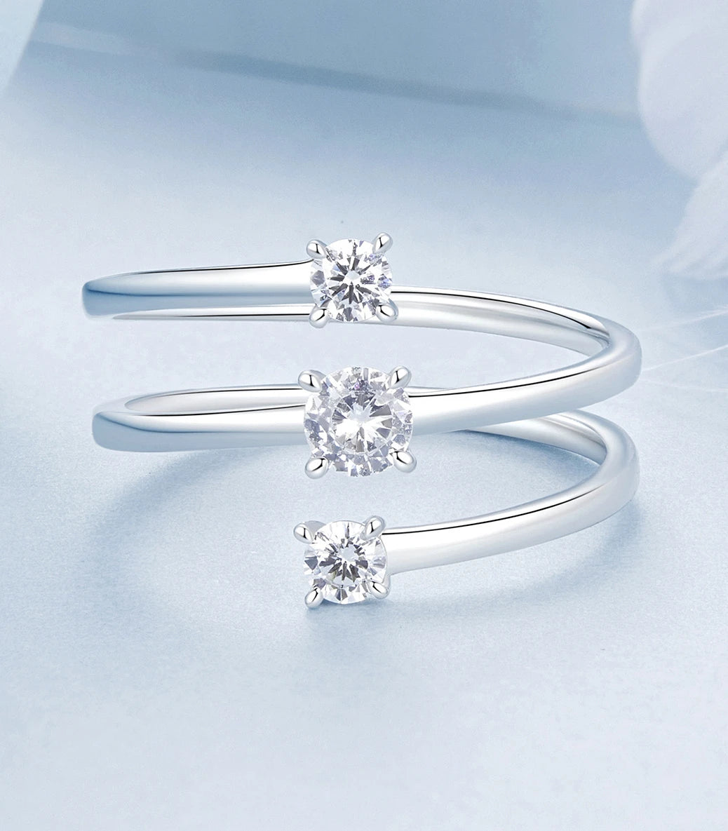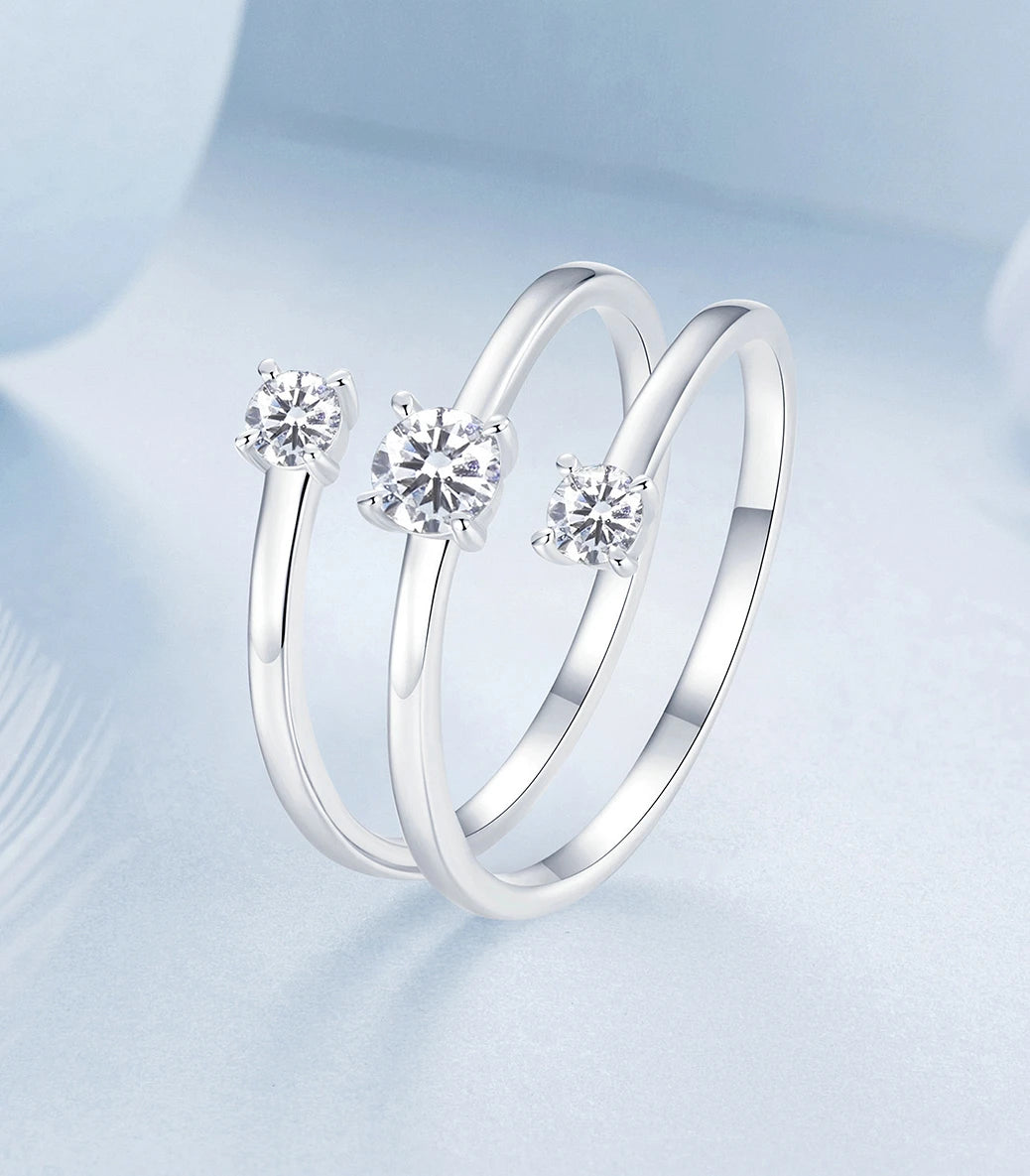 Сребърен регулируем пръстен с бял кубичен циркон