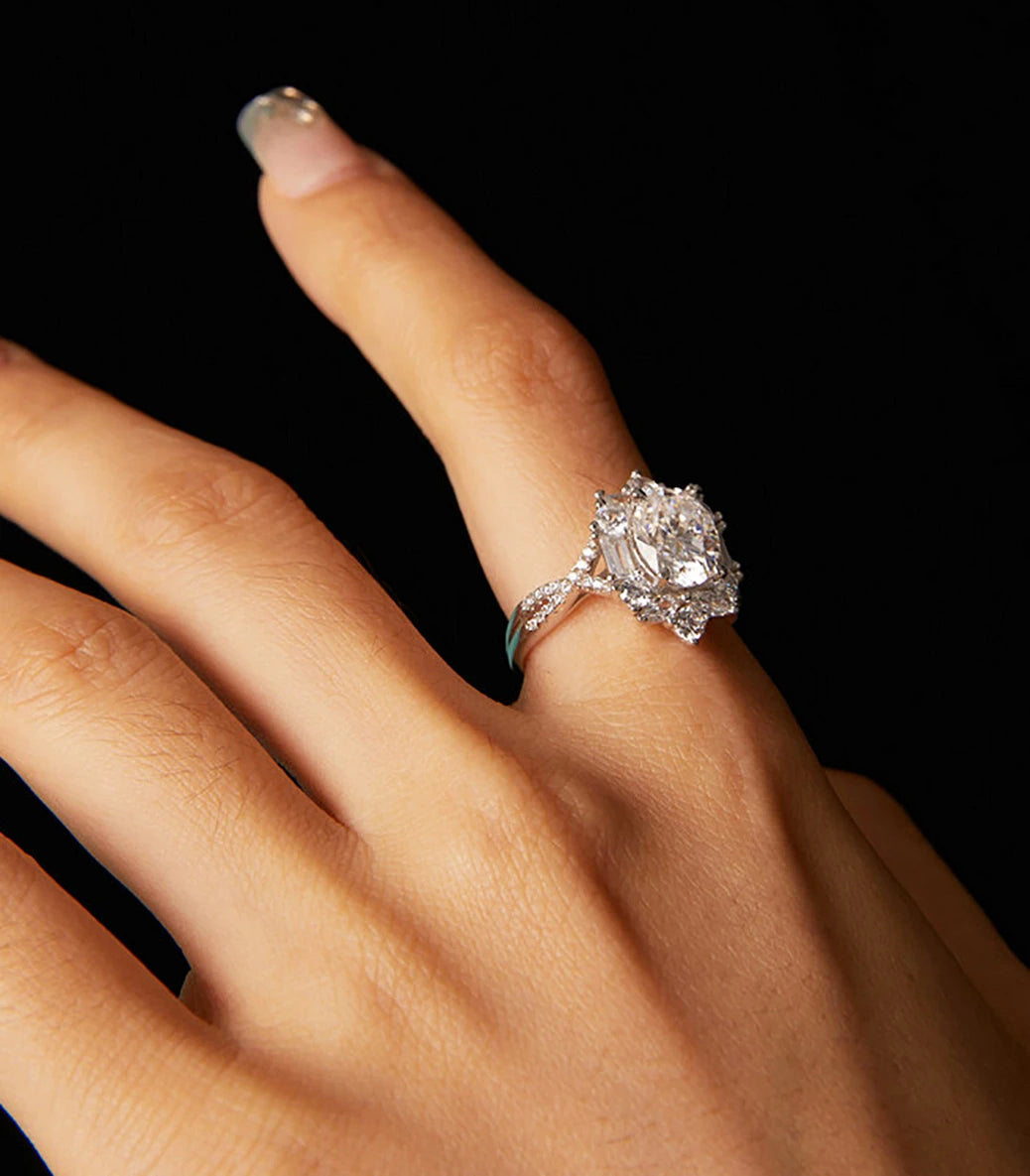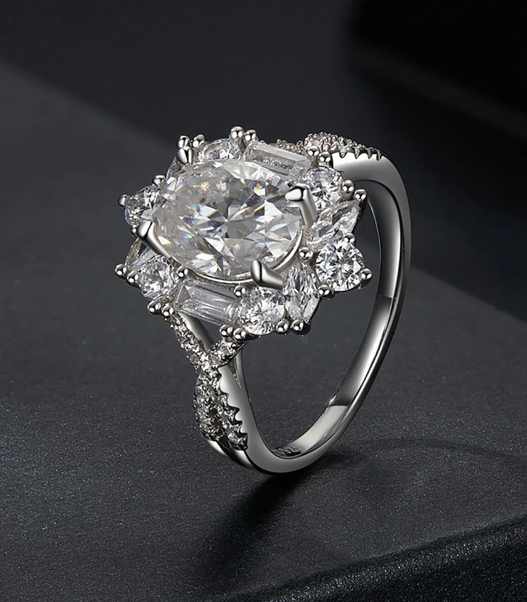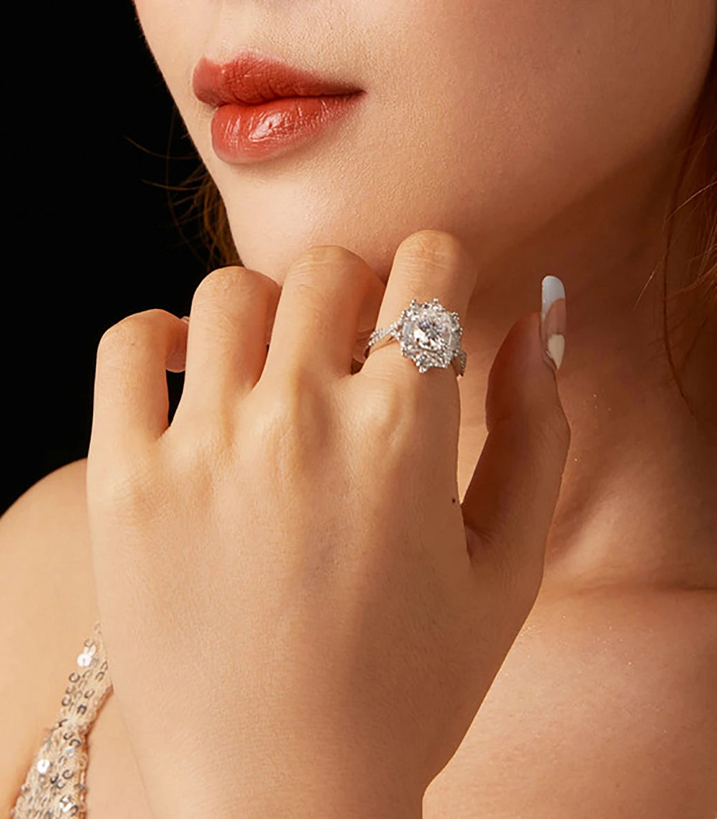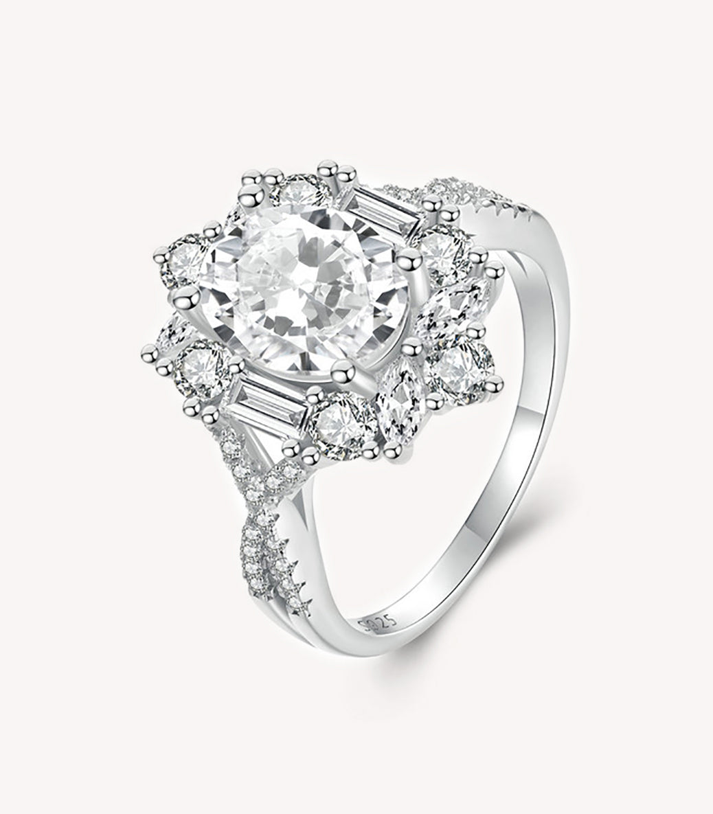 Сребърен пръстен със скъпоценен камък мойсанит и бял кубичен циркон