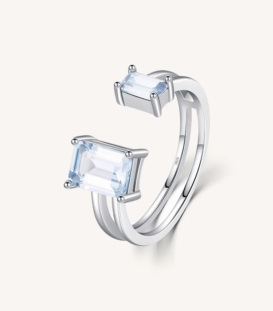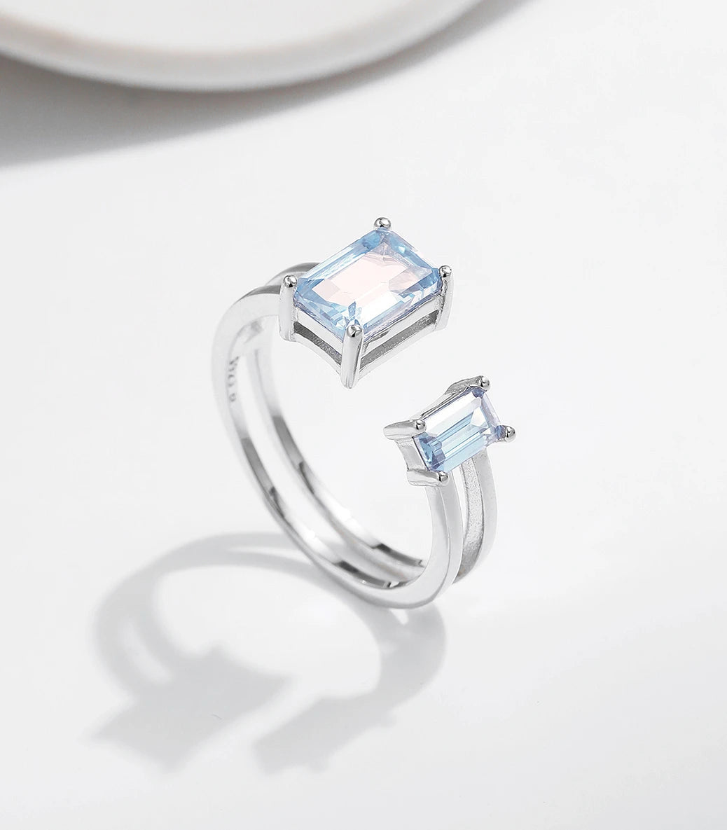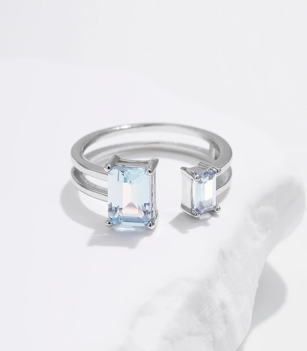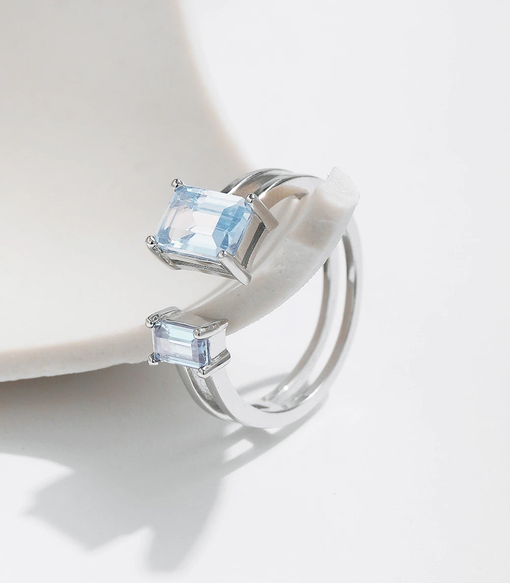 Сребърен регулируем пръстен с небесносин кубичен циркон клас ААА
