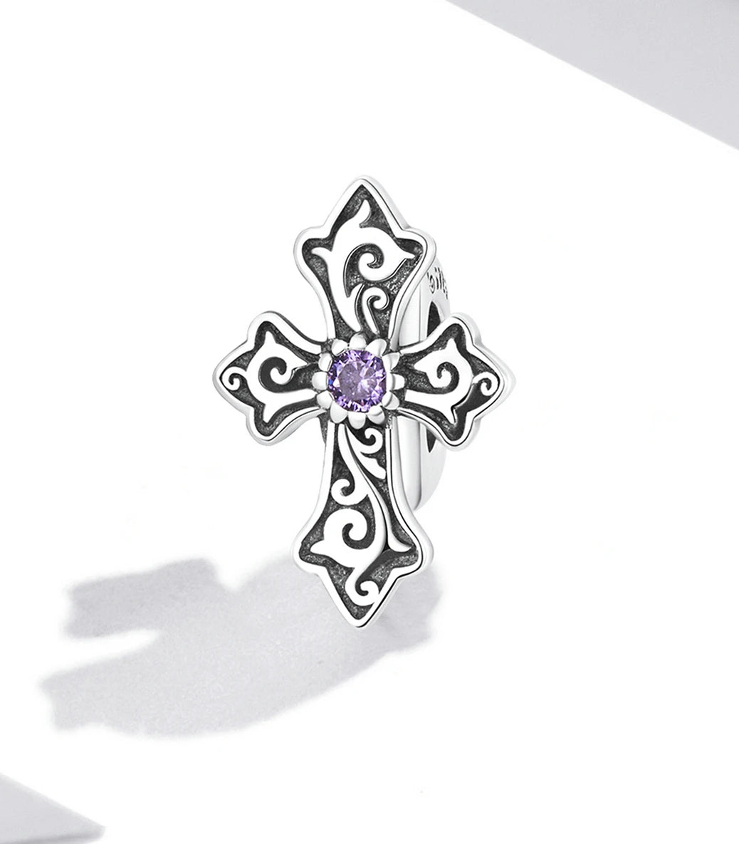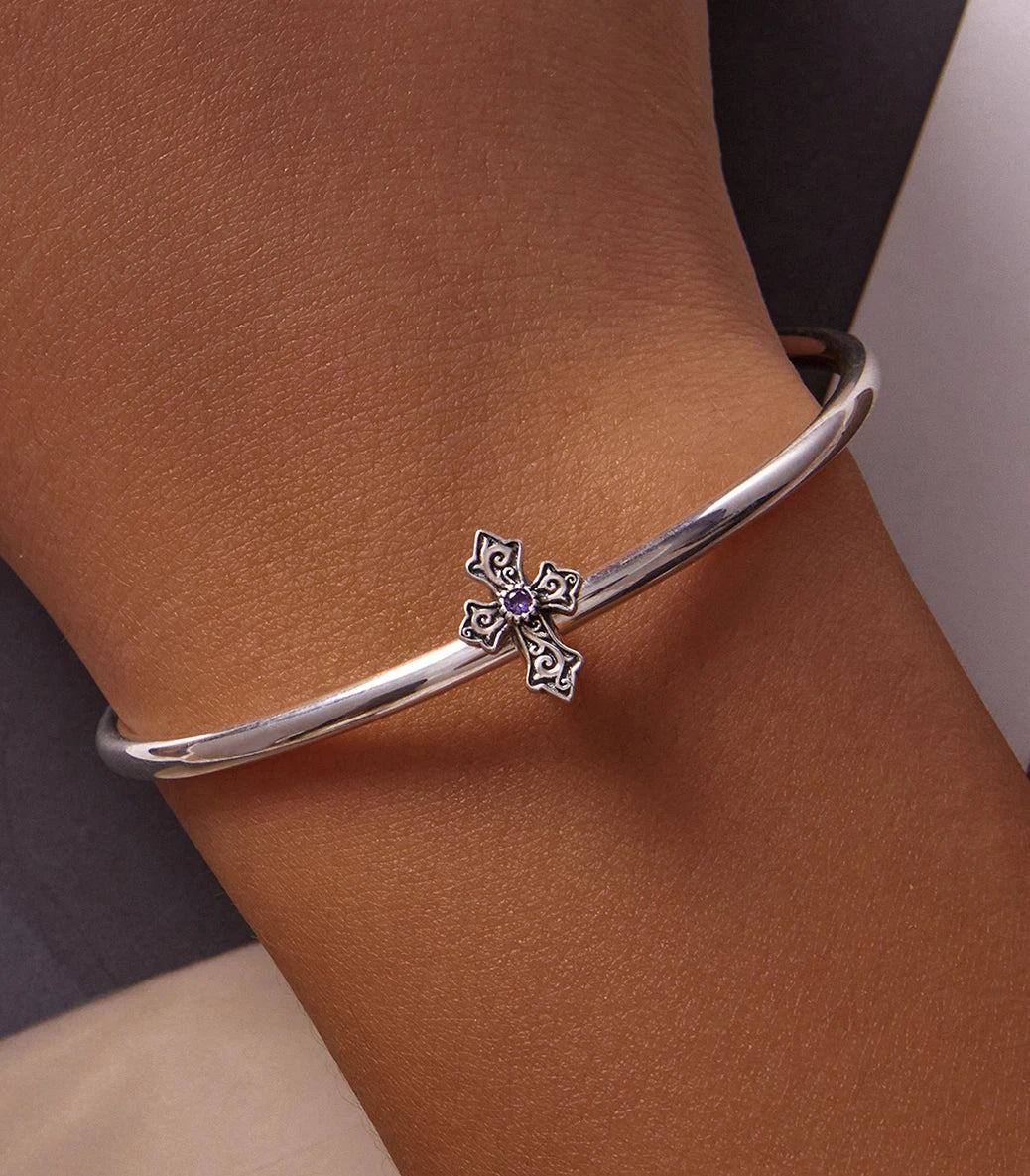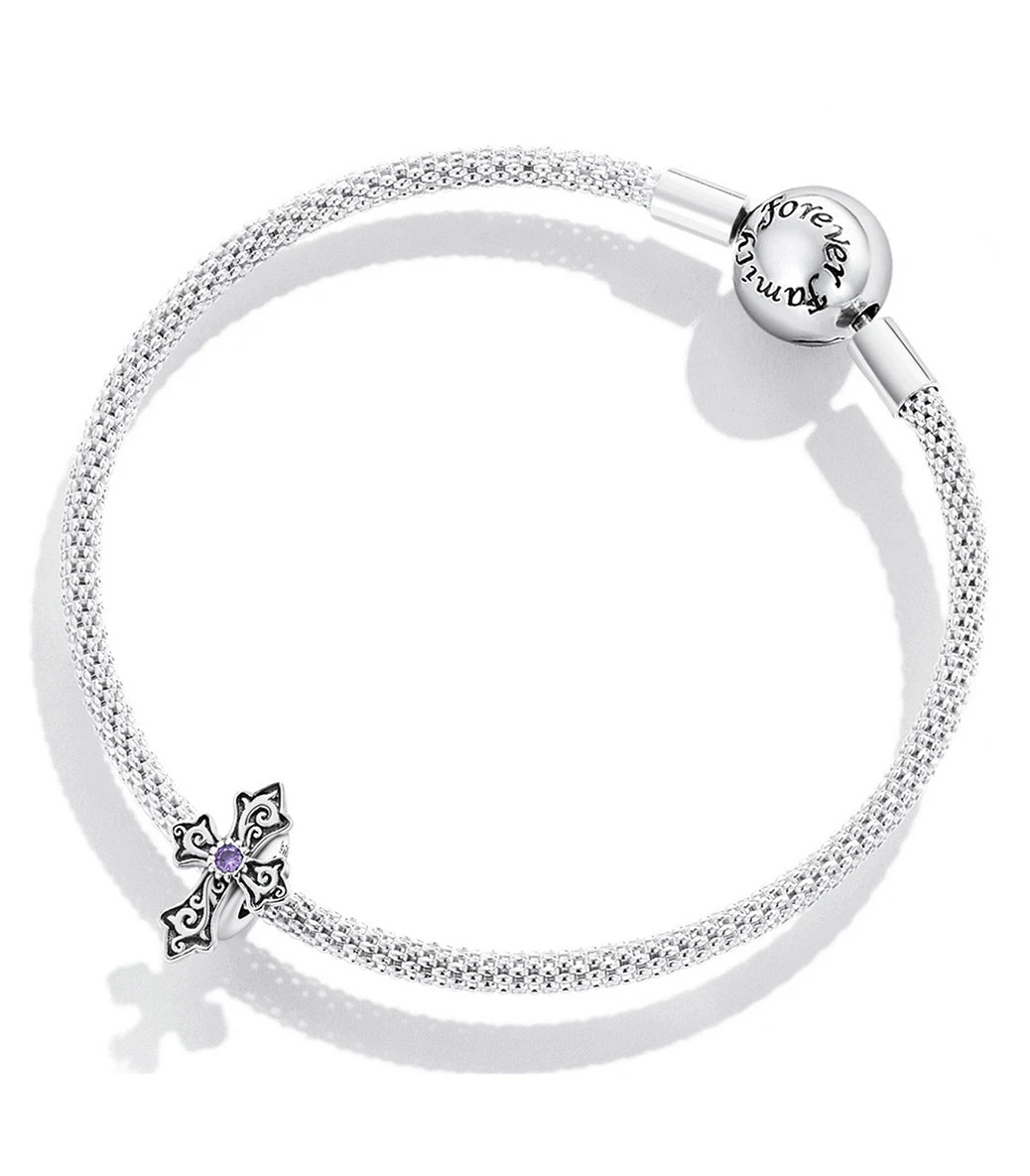 Сребърен разделител стопер с вграден силиконов уплътнител и лилав циркон
