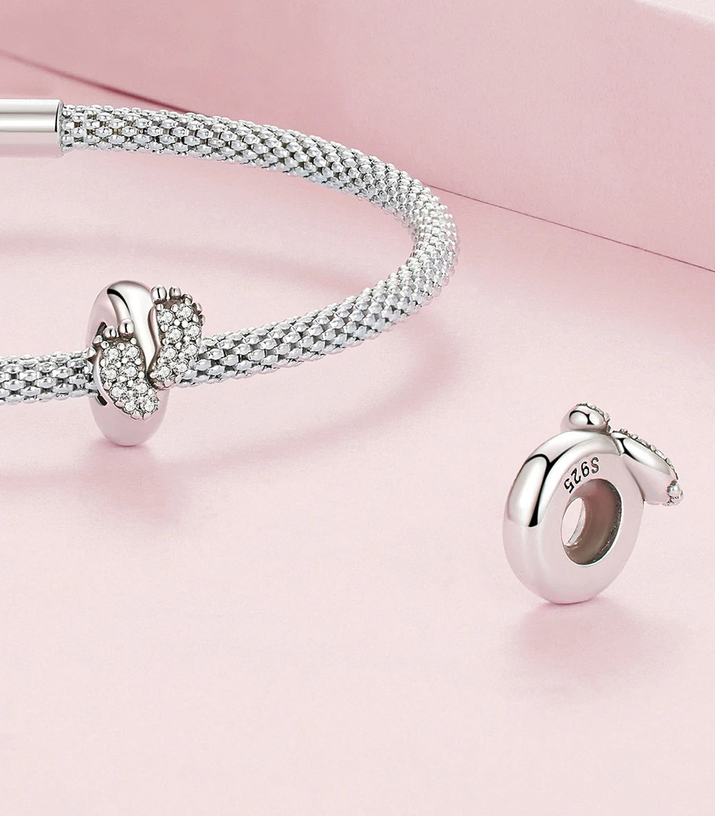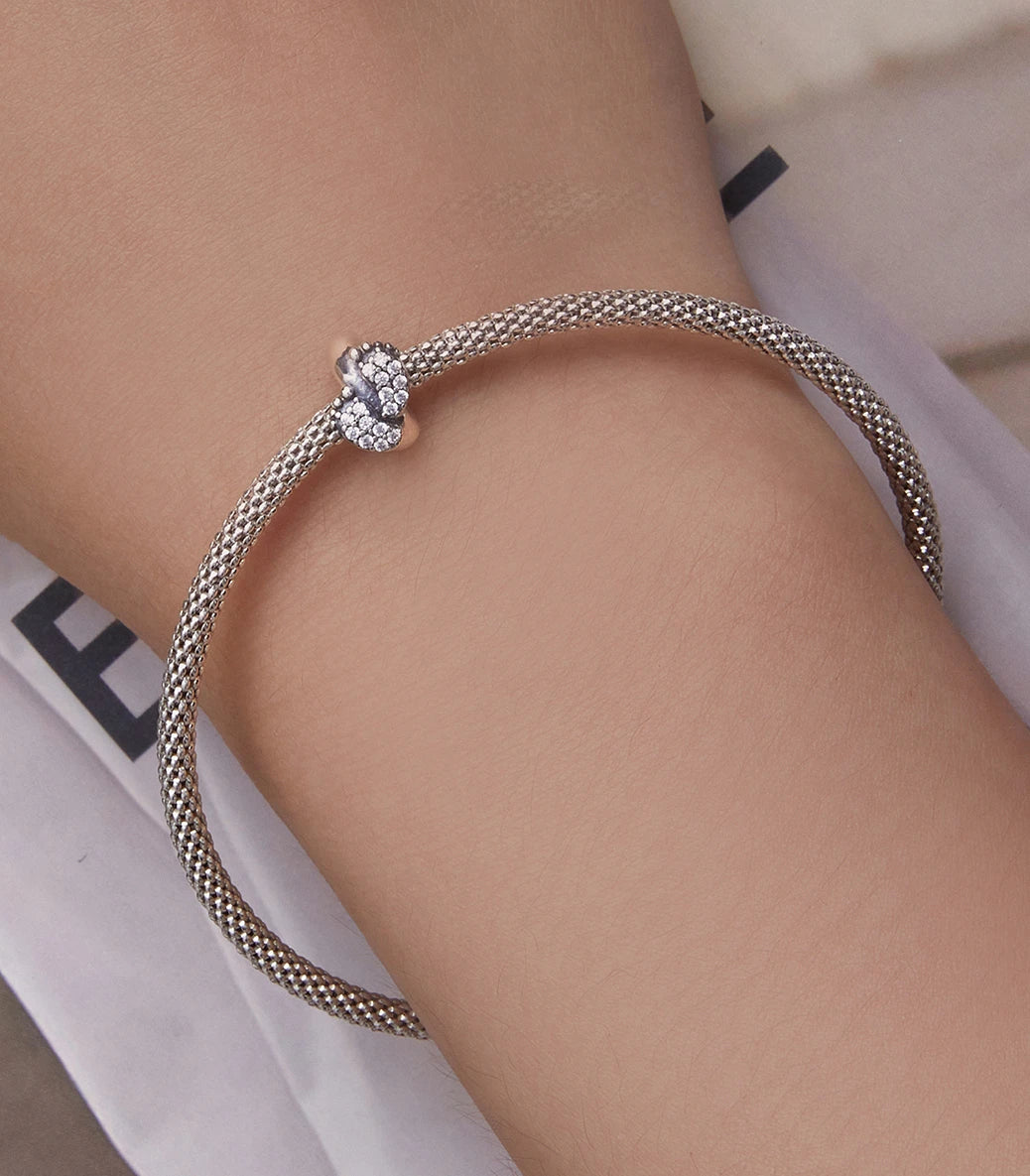 Сребърен разделител стопер с вграден силиконов уплътнител и бял циркон