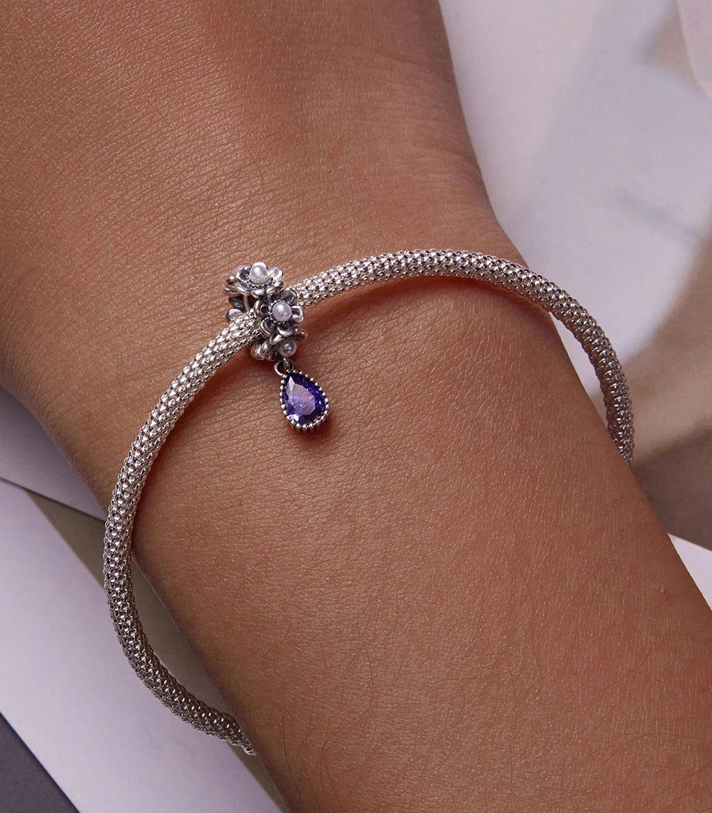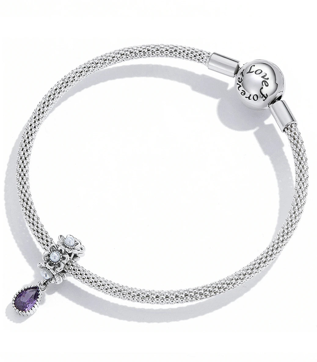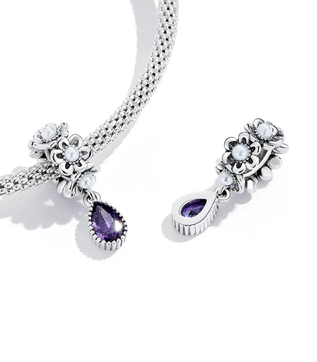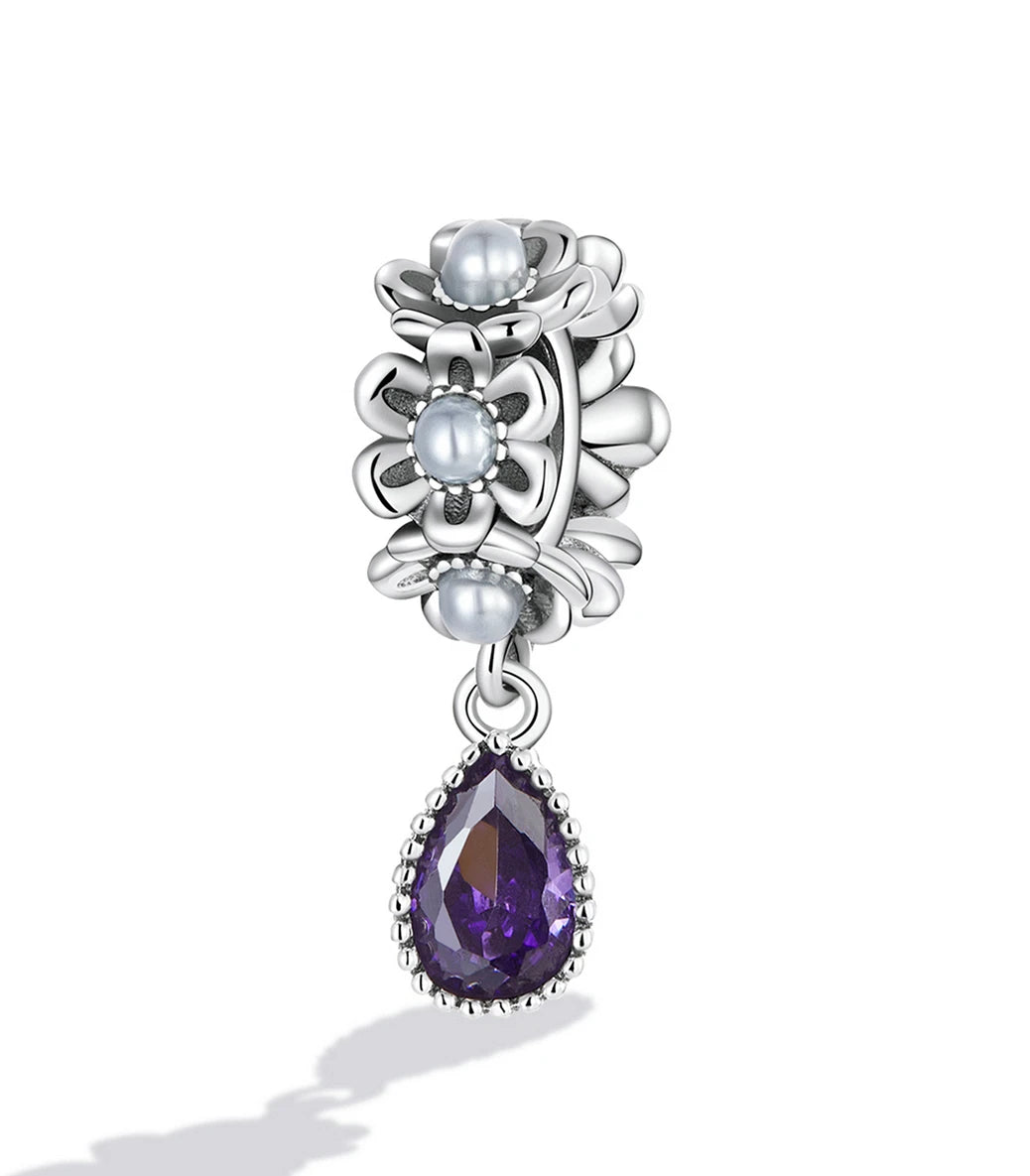 Сребърен разделител с култивирана перла Акоя и лилав кубичен циркон