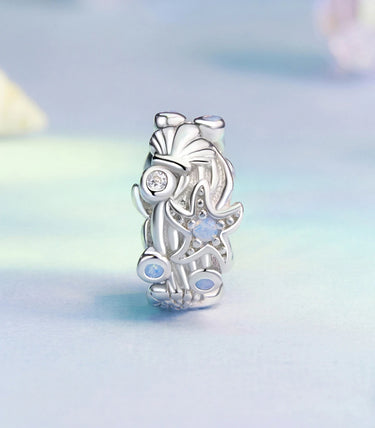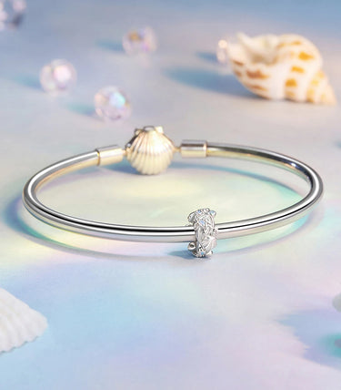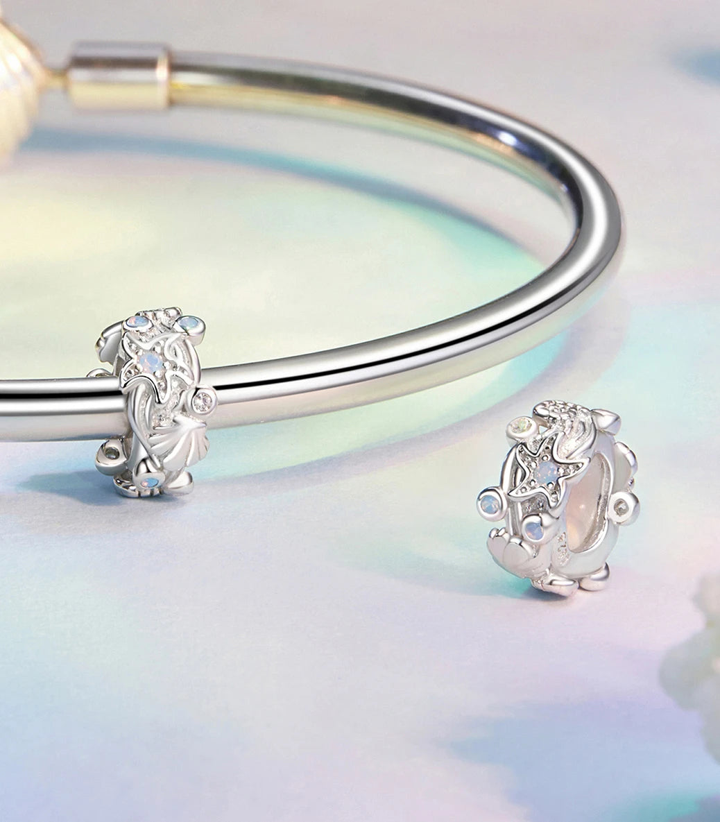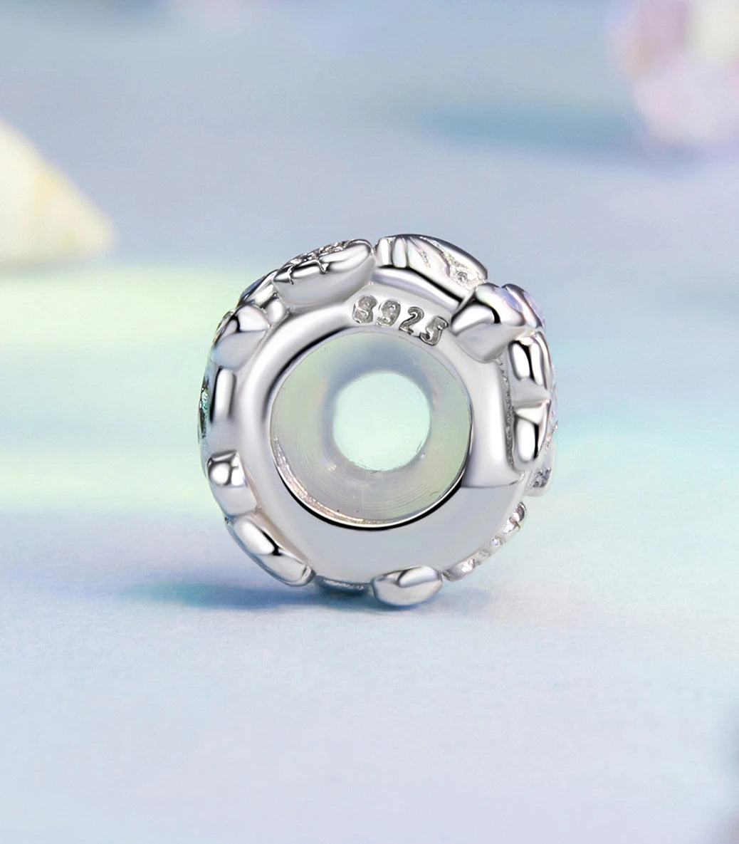 Сребърен разделителен стопер с вграден силиконов уплътнител, бял кубичен циркон и скъпоценен камък Опал