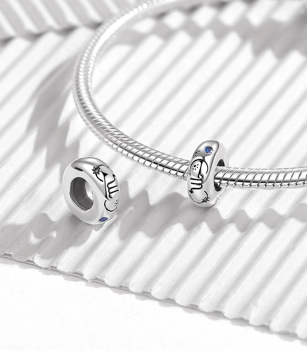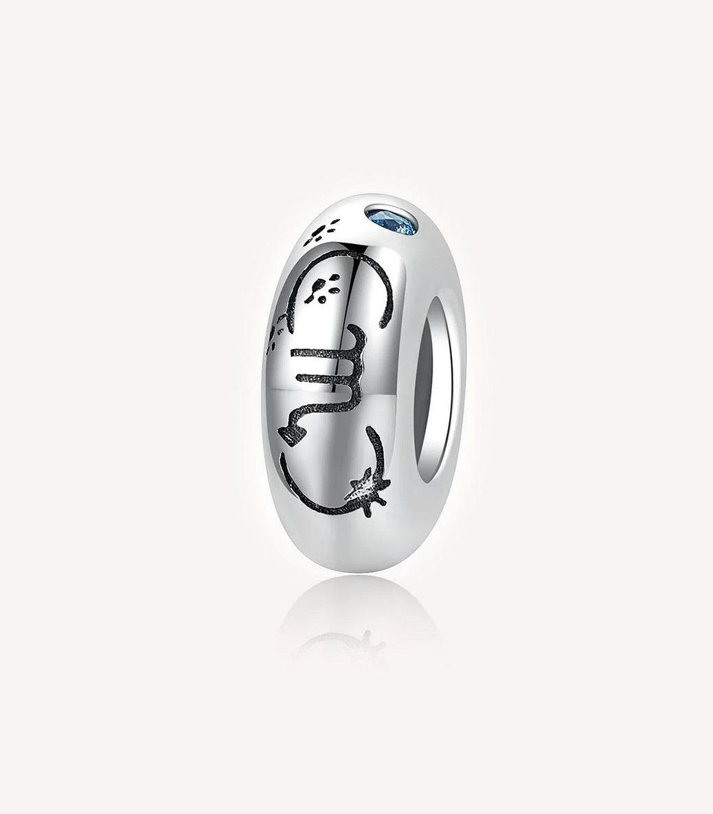 Сребърен разделителен стопер с вграден силиконов уплътнител и син кубичен циркон