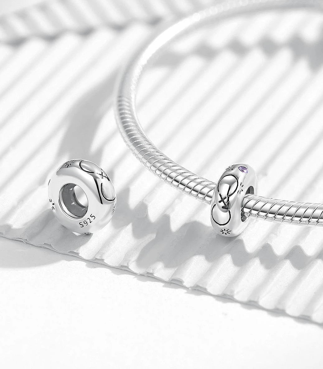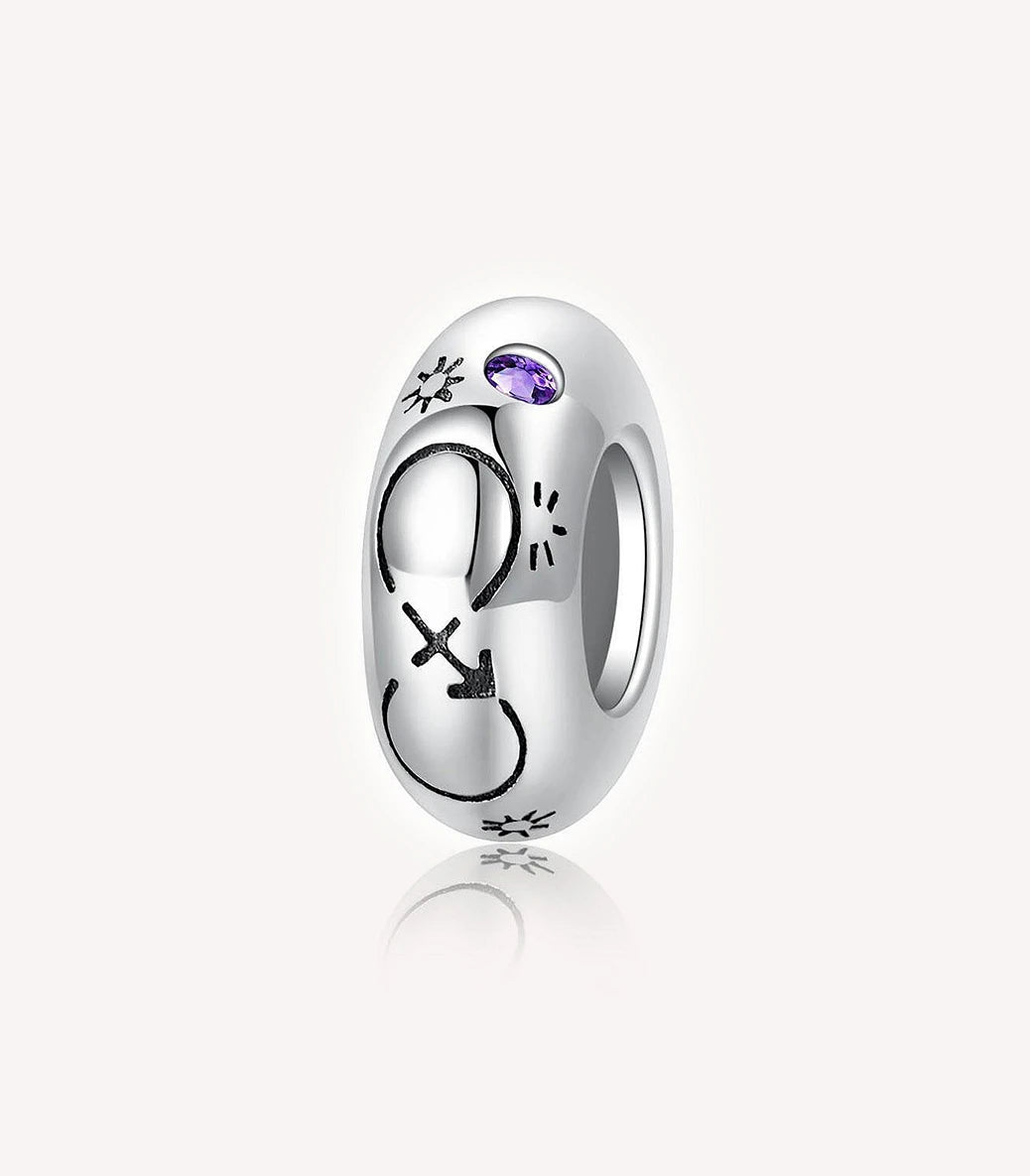 Сребърен разделител стопер с вграден силиконов уплътнител и лилав кубичен циркон