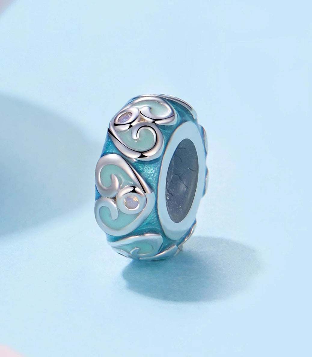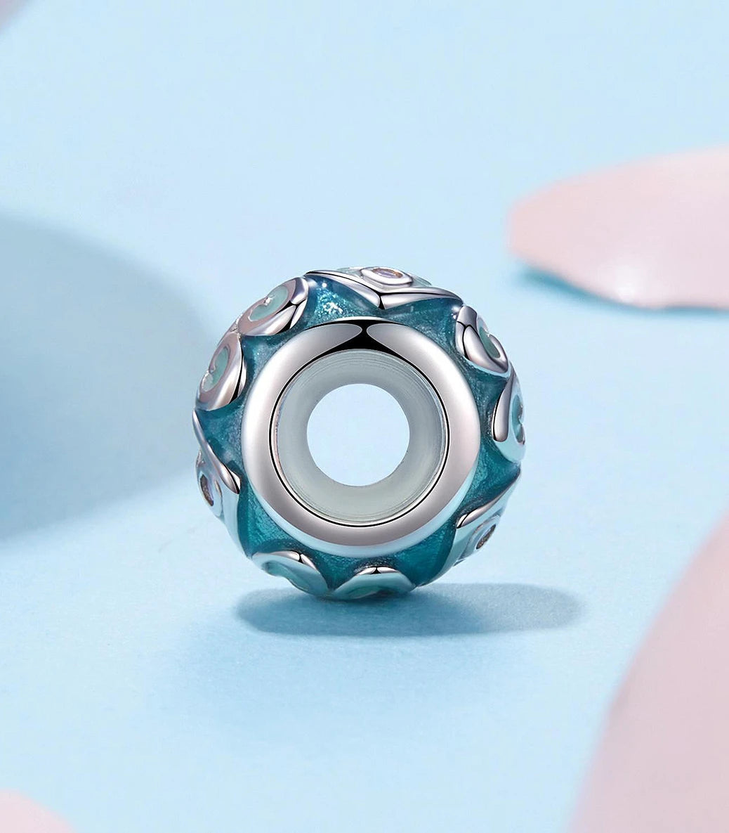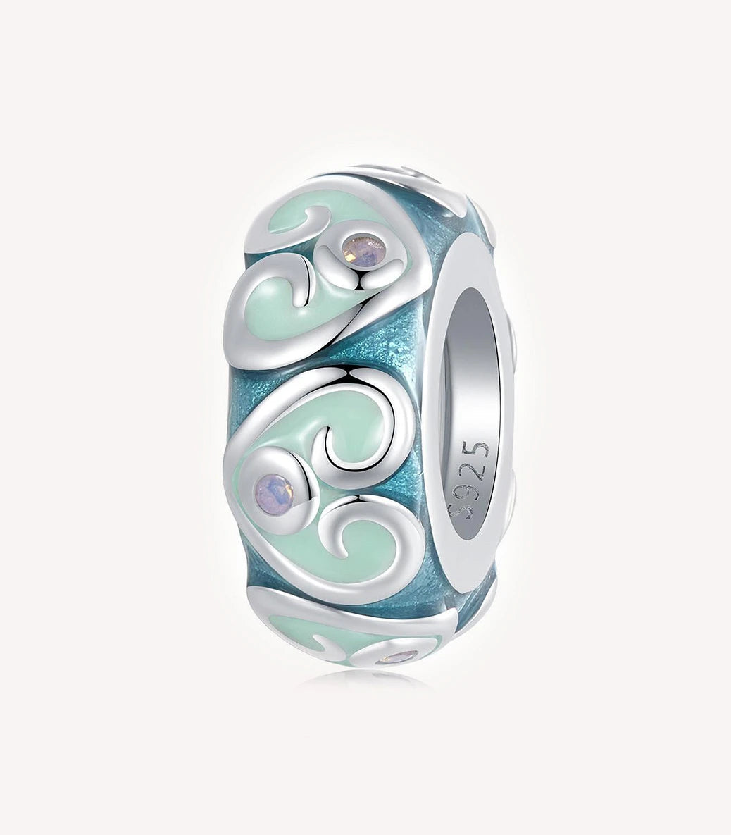 Сребърен разделител стопер с вграден силиконов уплътнител, тюркоазен емайл и скъпоценен камък Опал