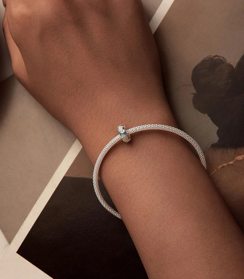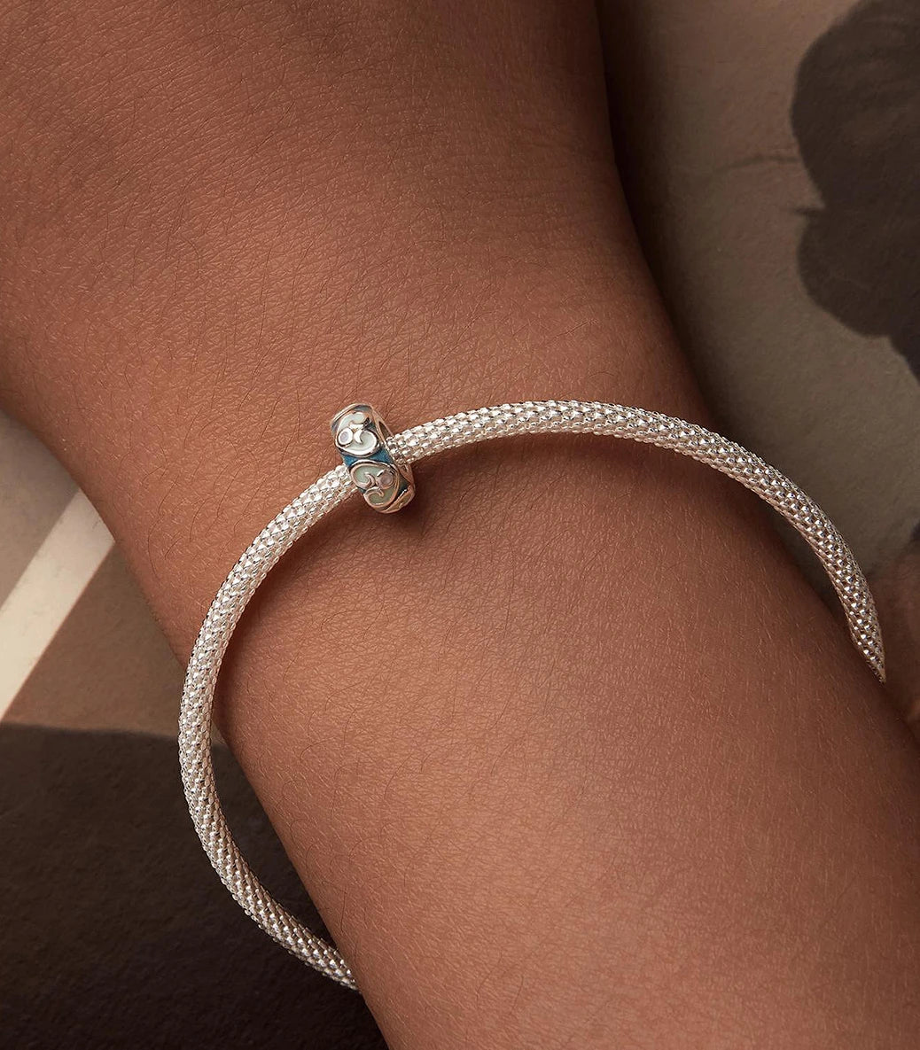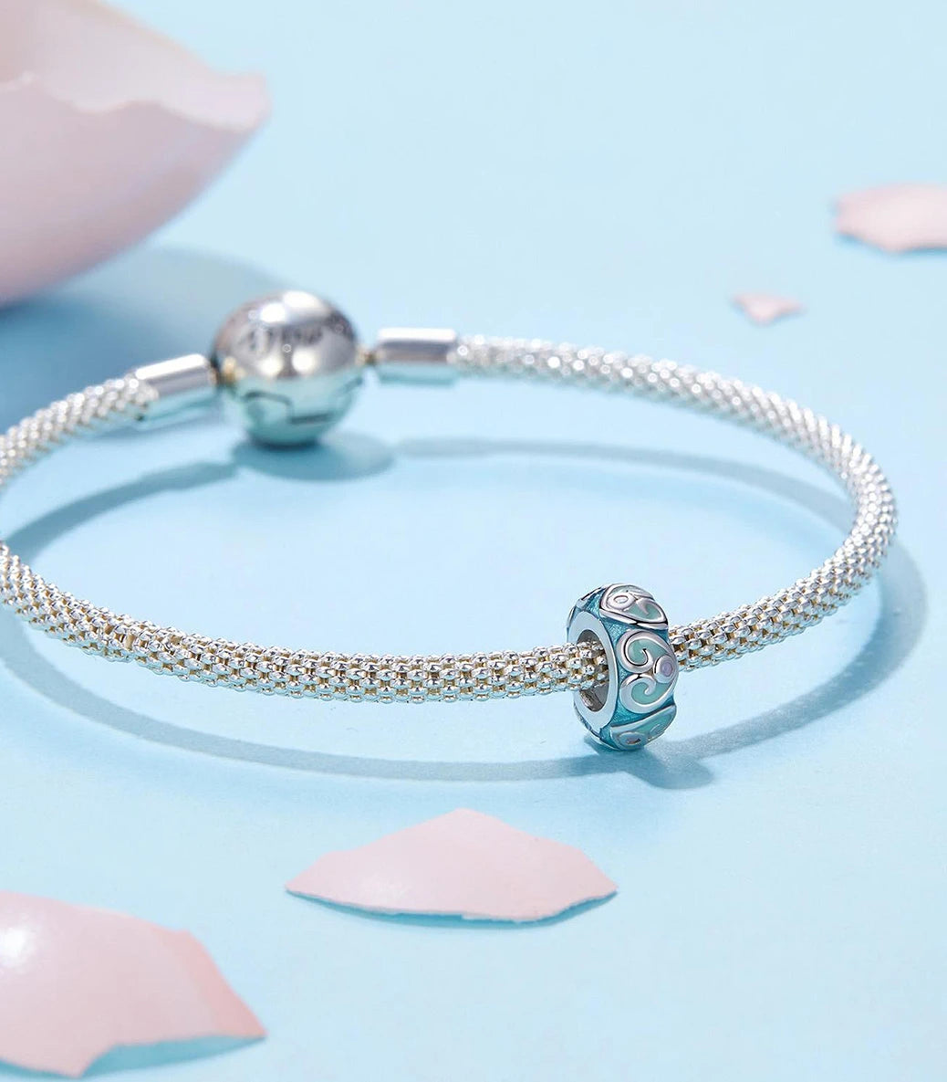 Сребърен разделител стопер с вграден силиконов уплътнител, тюркоазен емайл и скъпоценен камък Опал