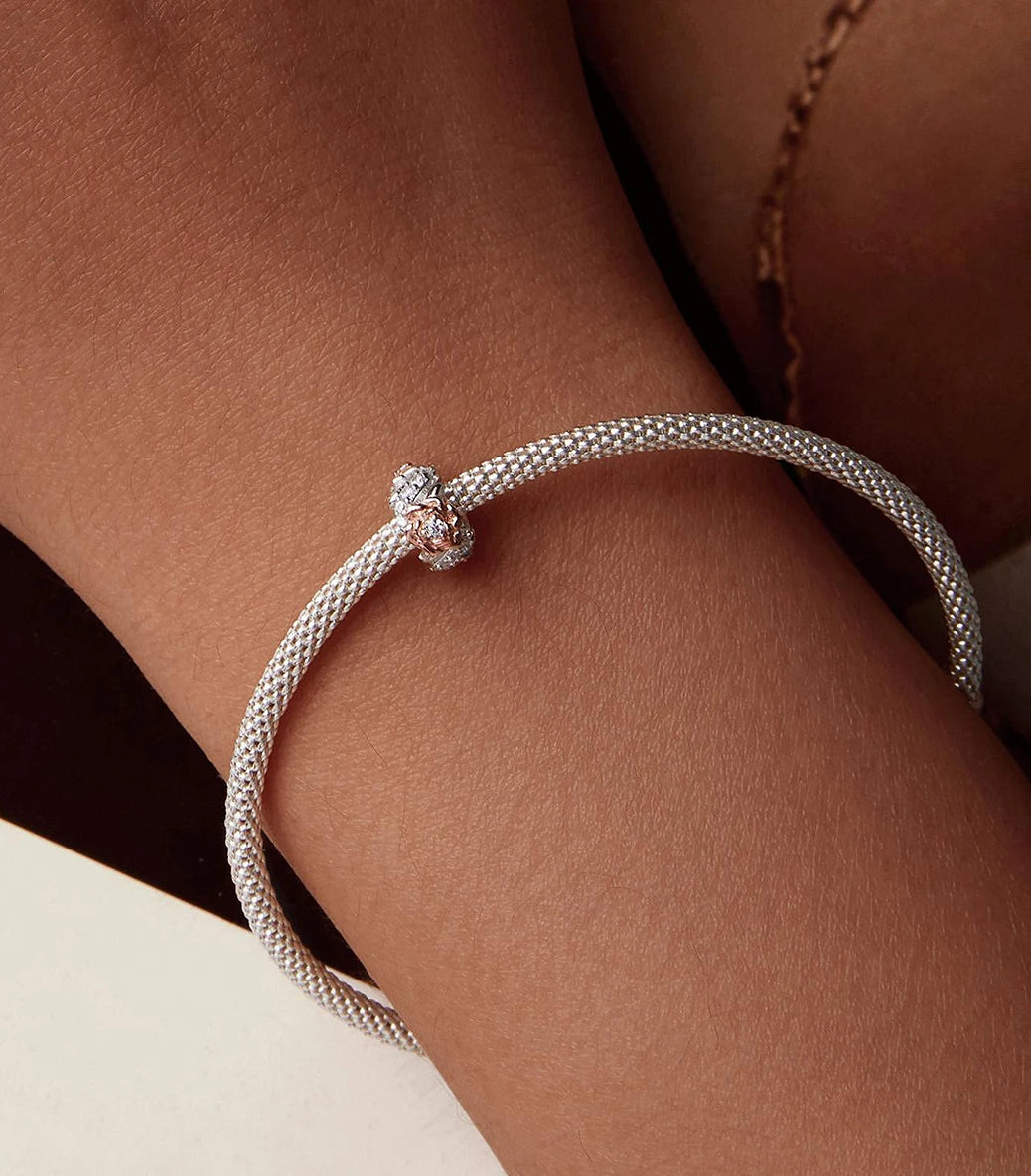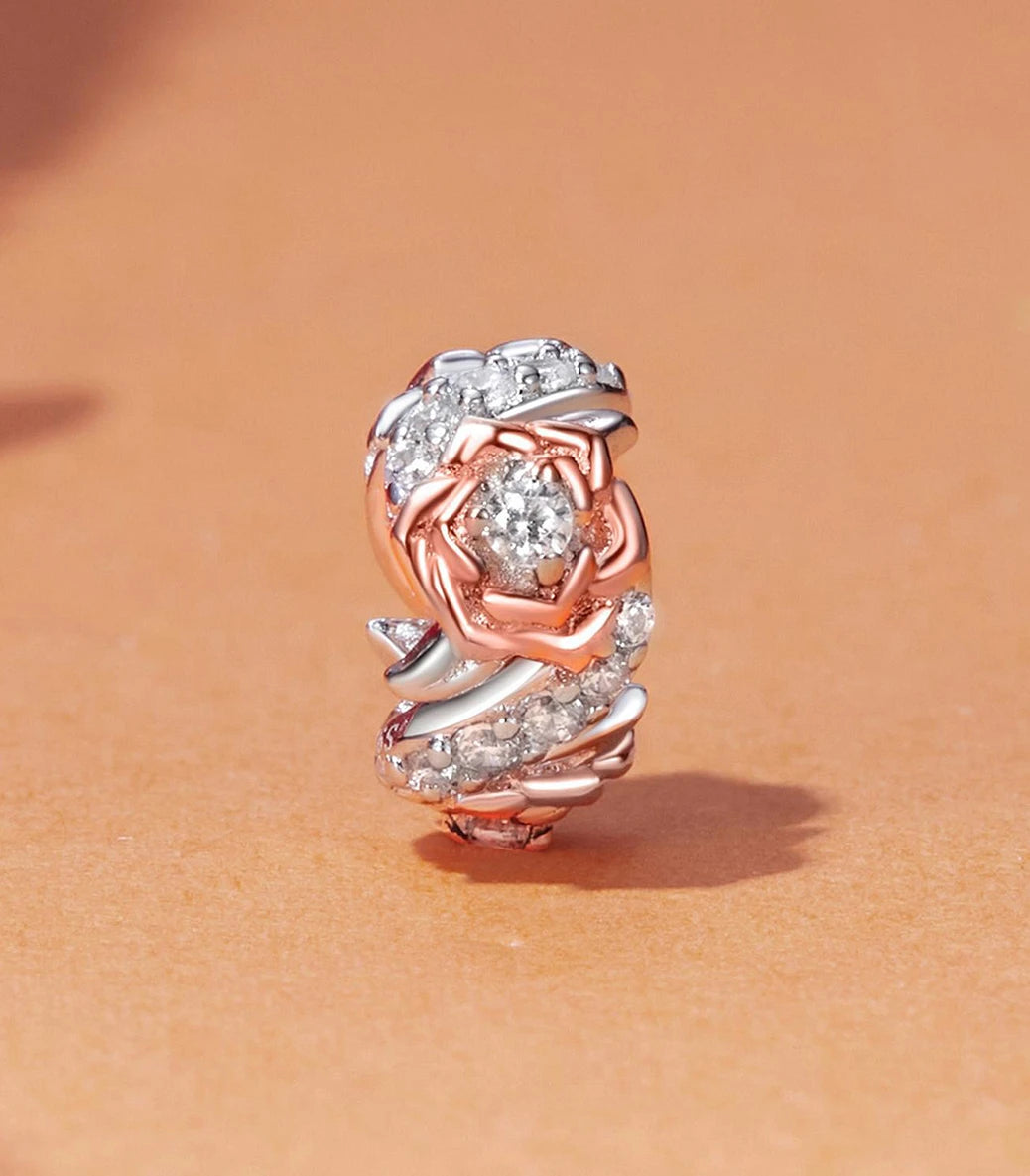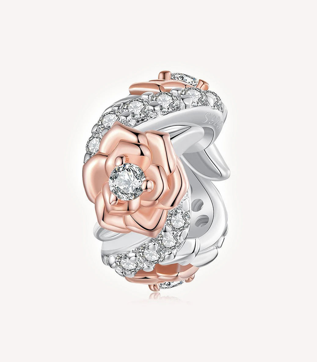 Сребърен разделител с бял кубичен циркон и покритие Rose Gold