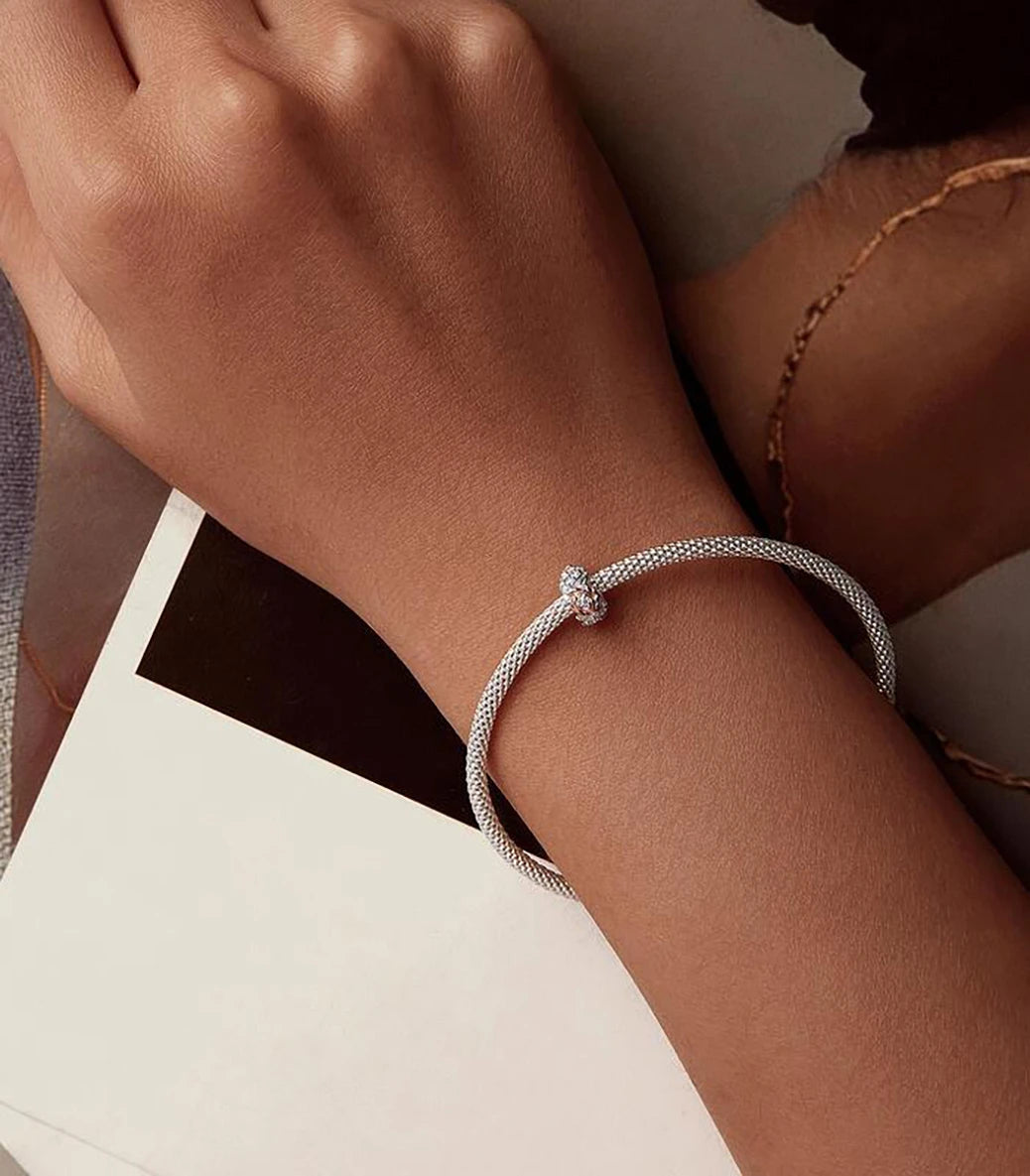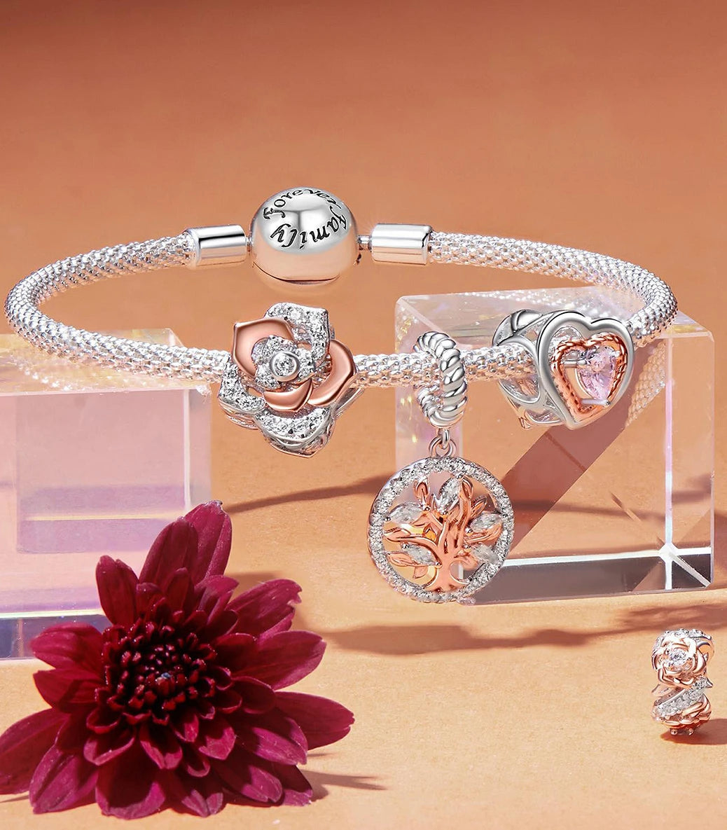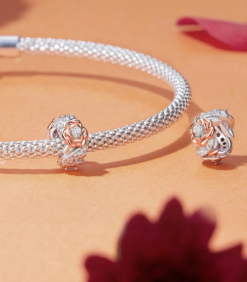 Сребърен разделител с бял кубичен циркон и покритие Rose Gold