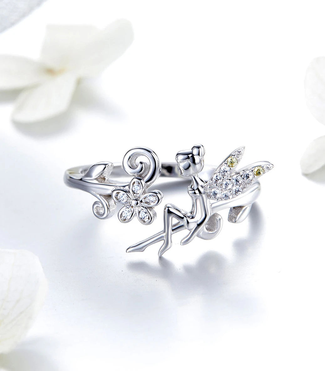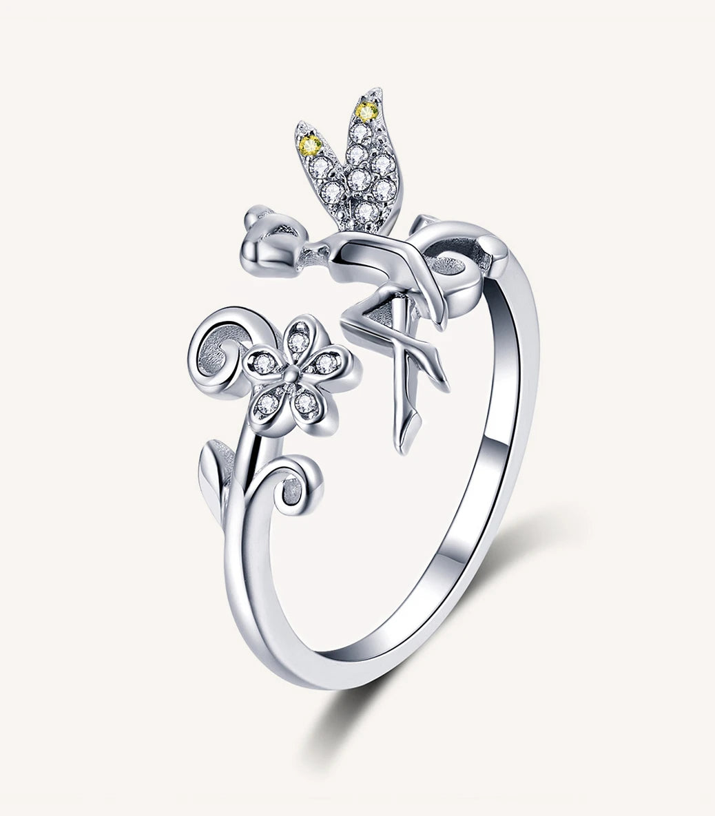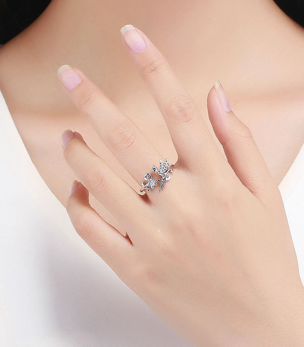 Сребърен регулируем пръстен с бял и жълт кубичен циркон