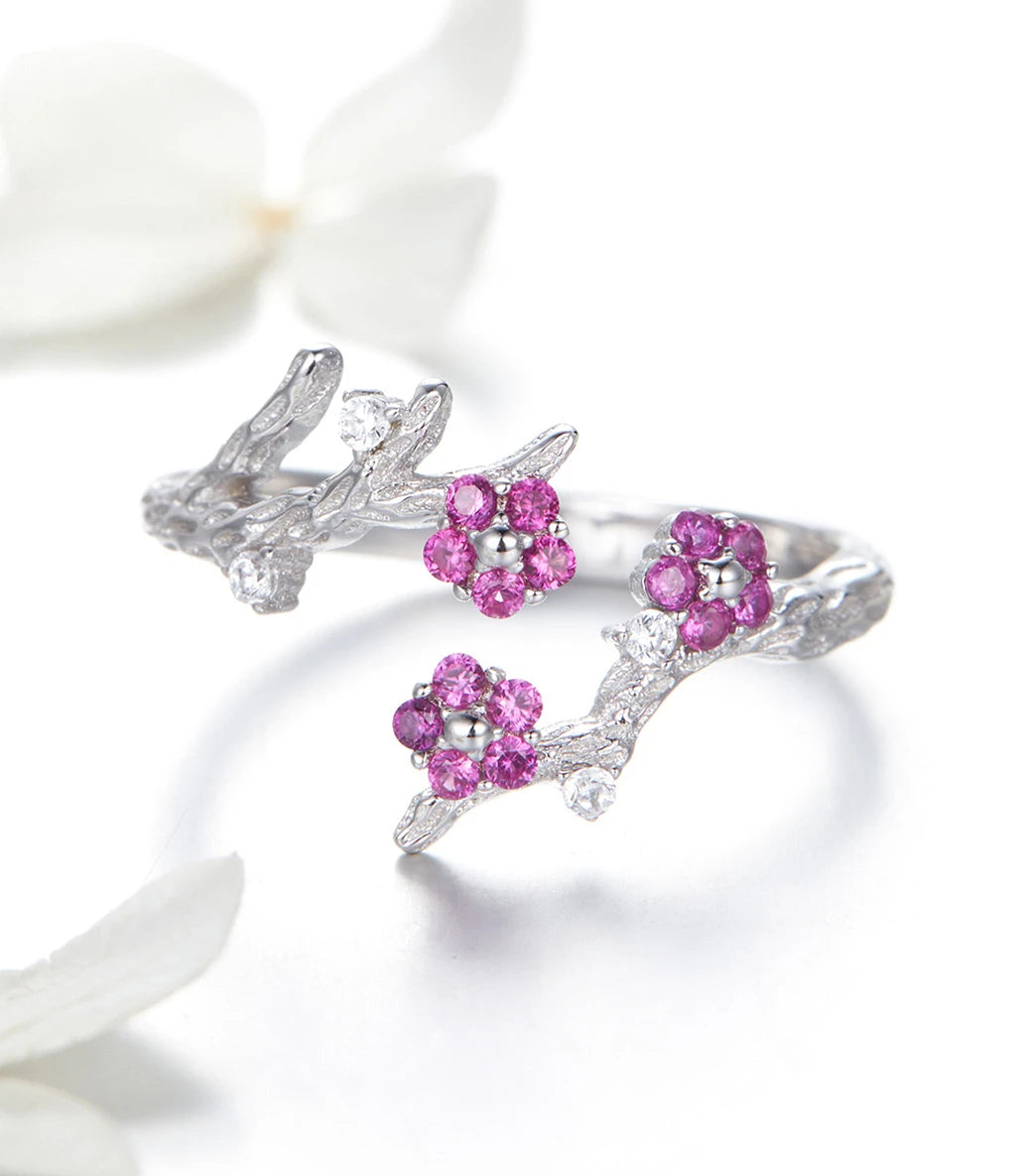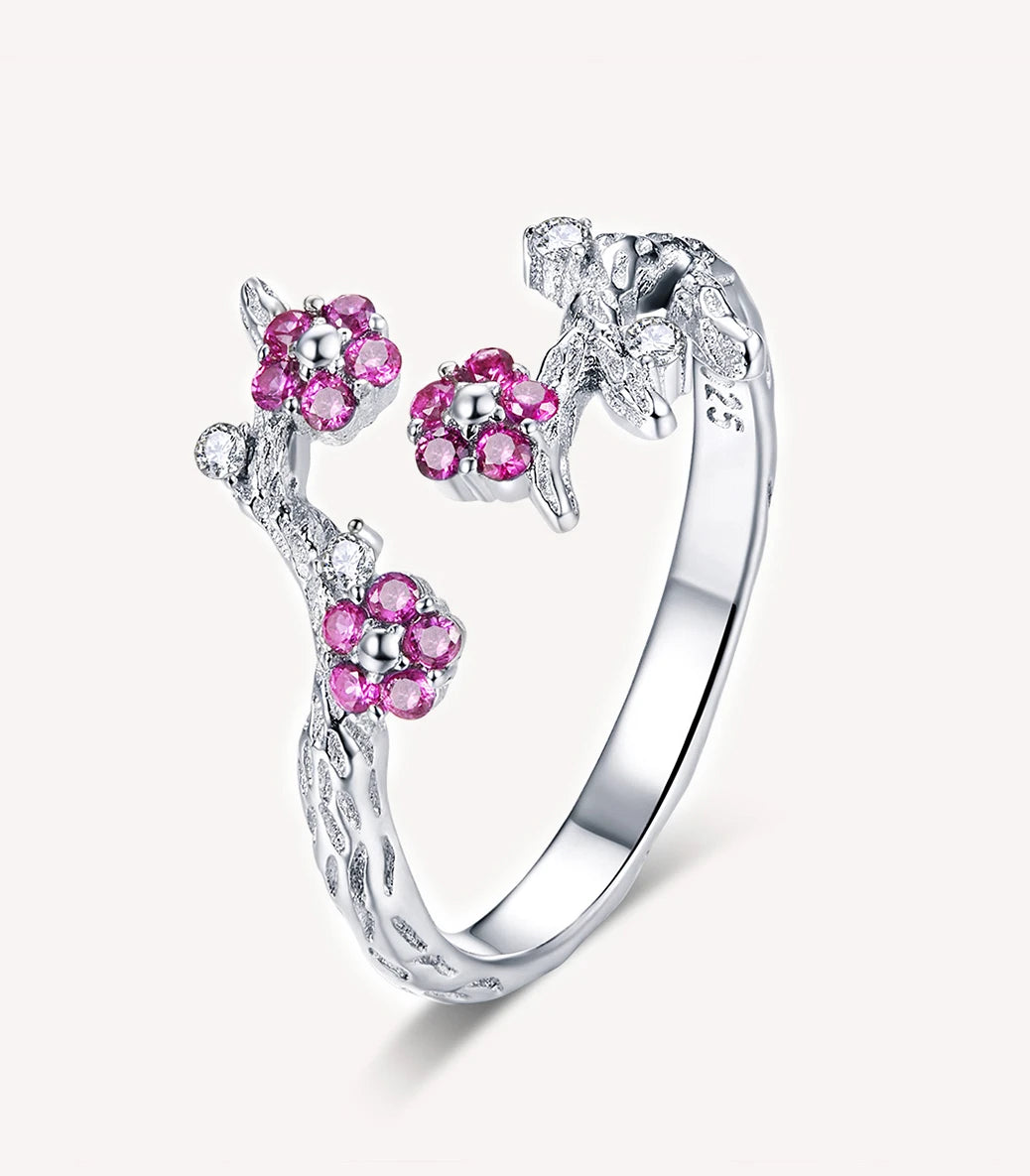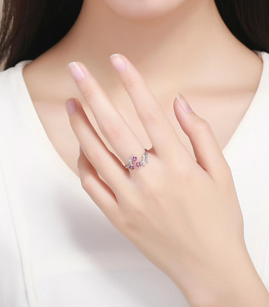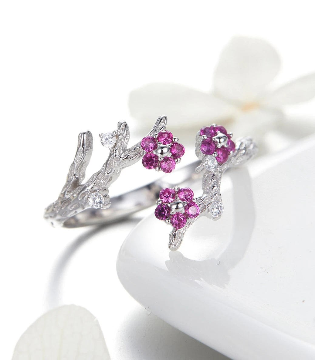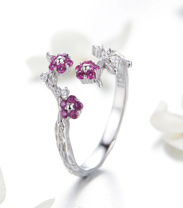 Сребърен регулируем пръстен с бял и пурпурен кубичен циркон