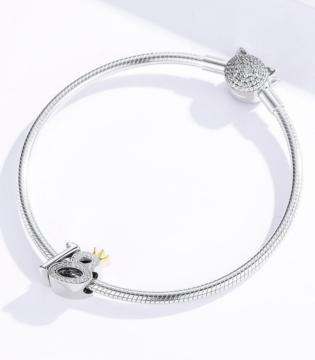 Сребърен талисман с бял кубичен циркон и златно покритие