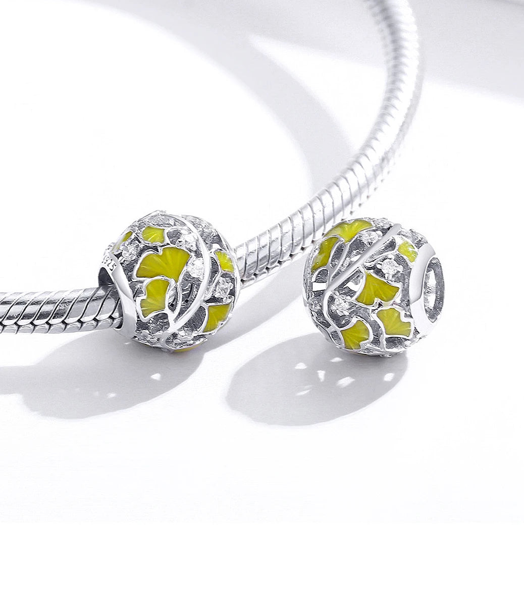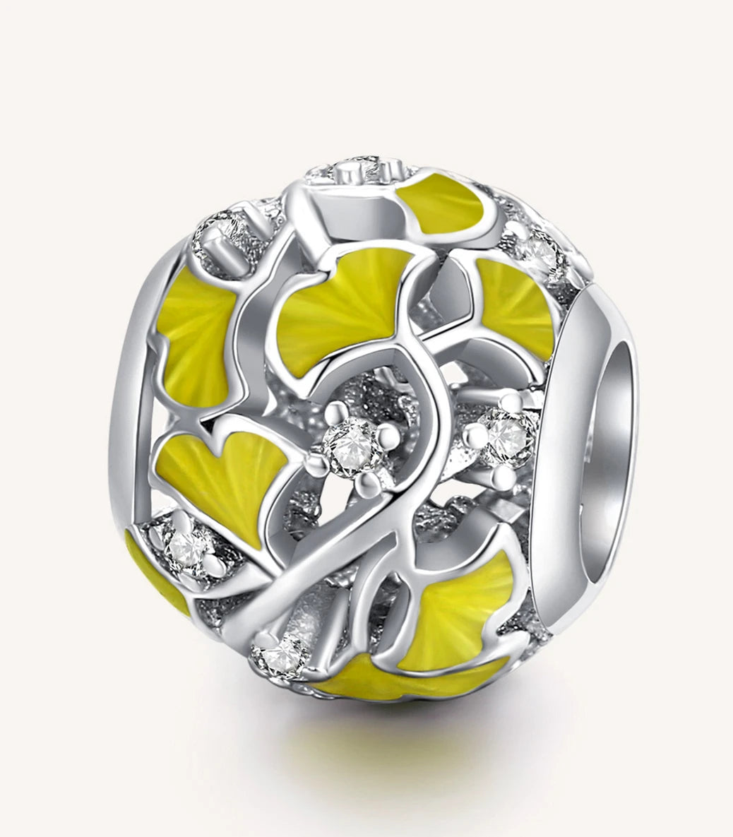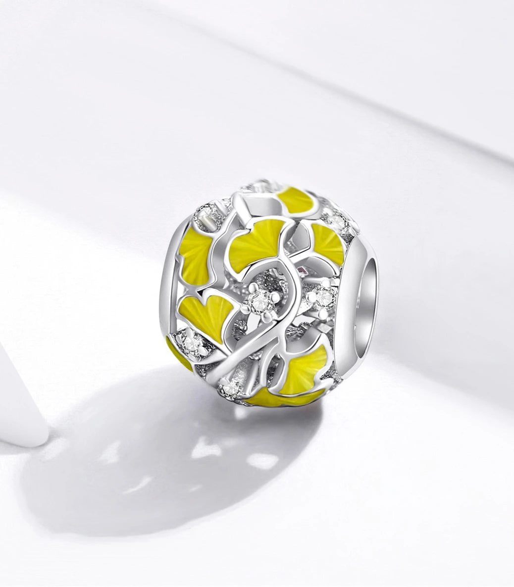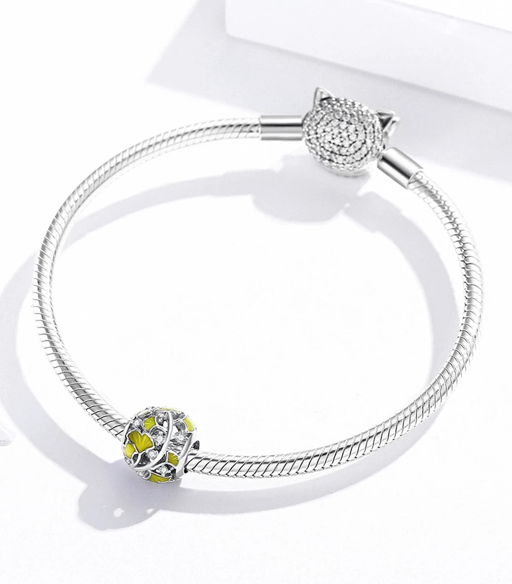 Сребърен талисман с бял кубичен циркон и жълт емайл