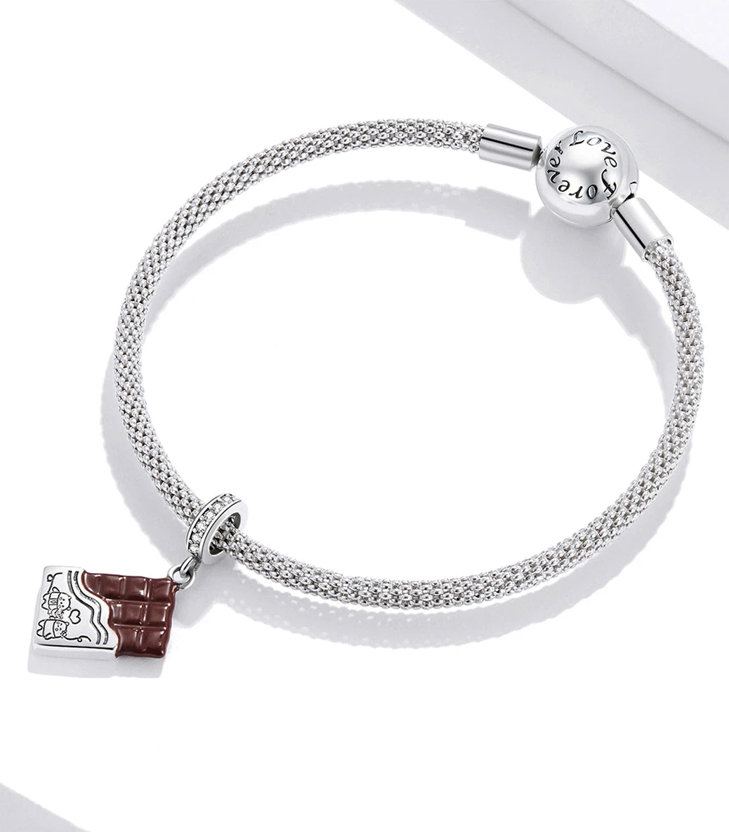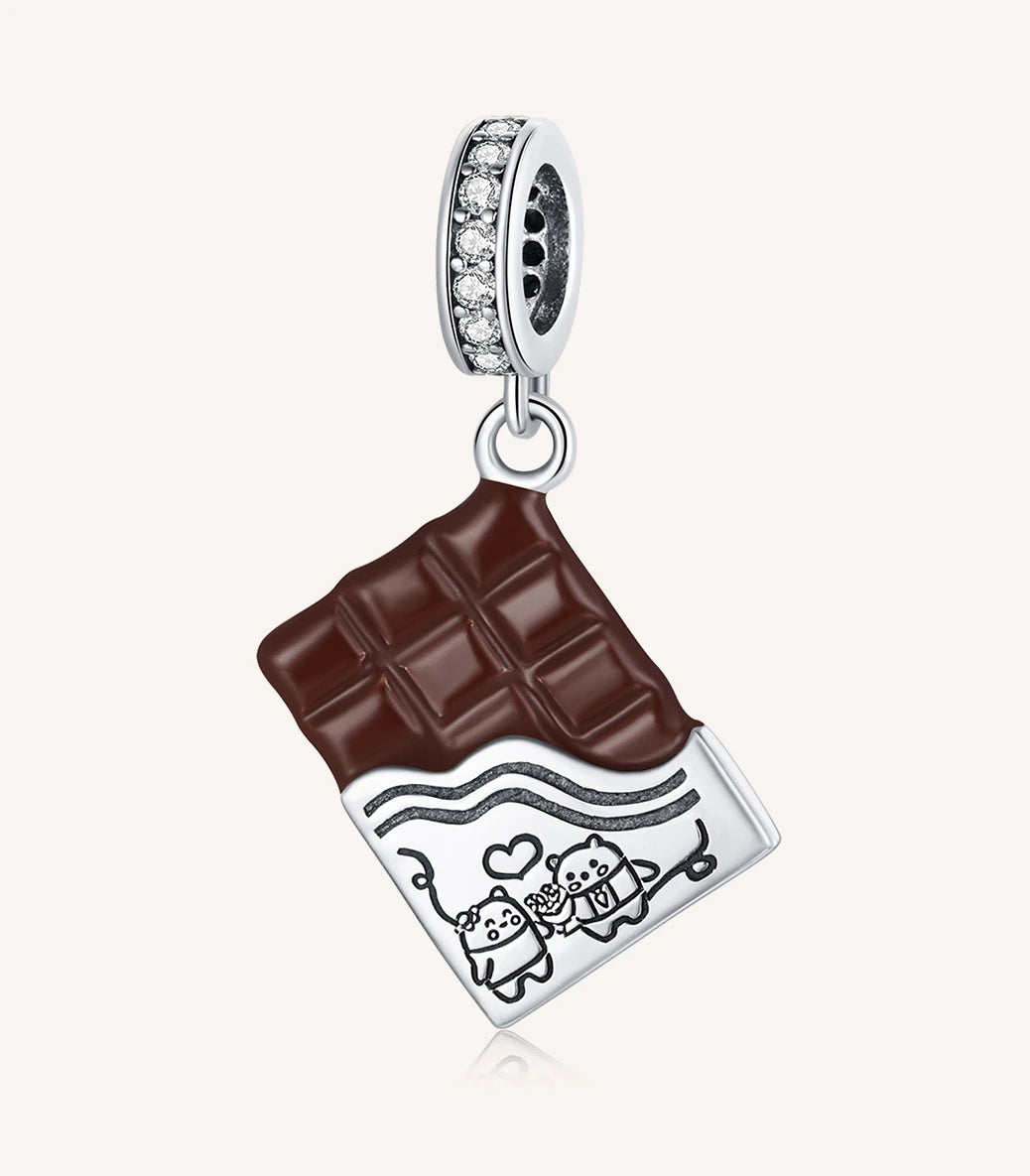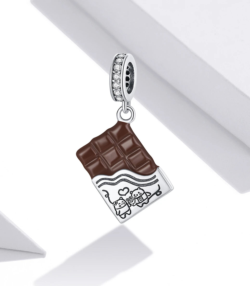 Сребърна висулка с бял кубичен циркон и кафяв емайл