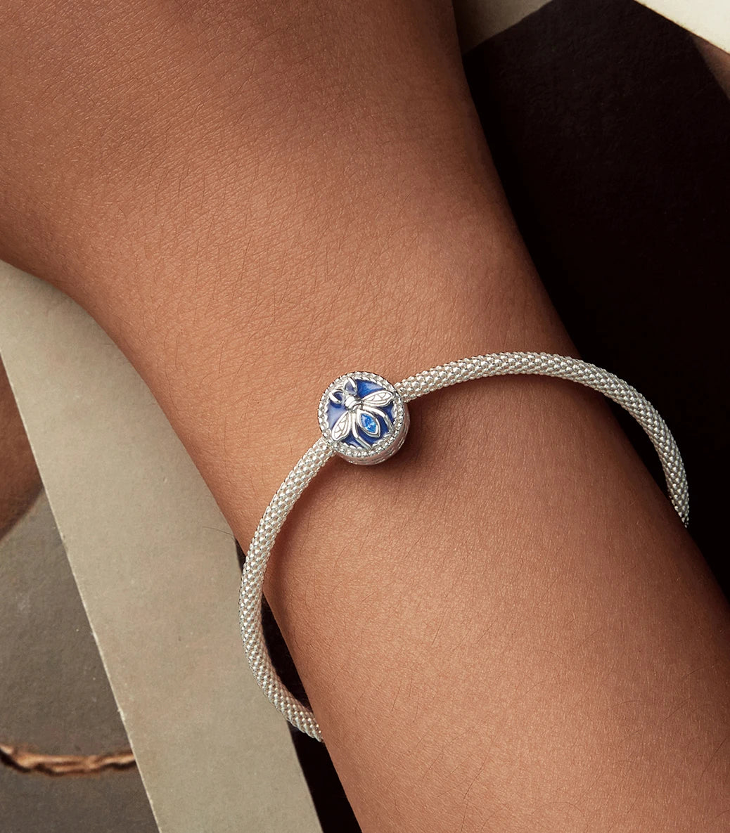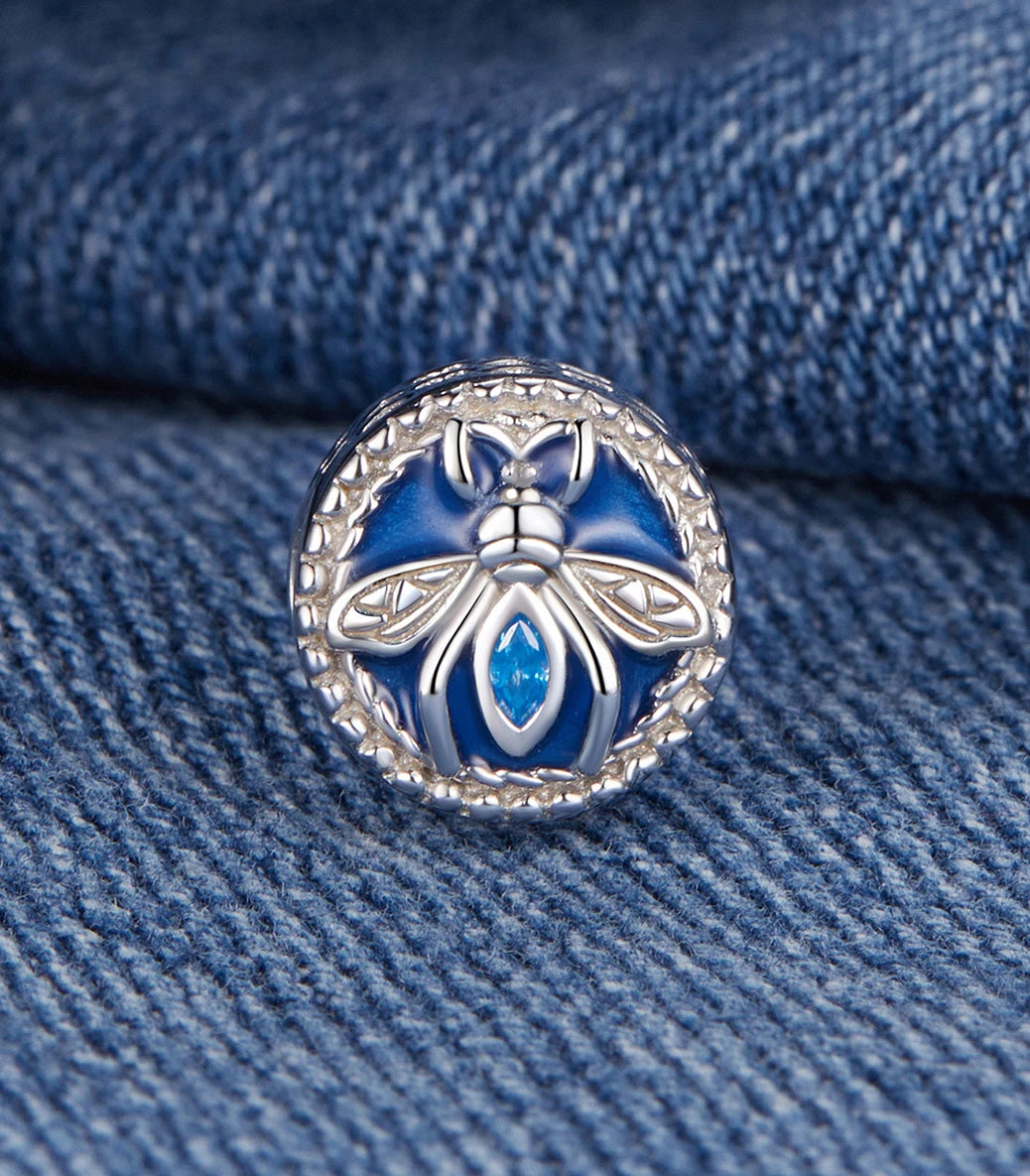 Сребърен талисман със син кубичен циркон и емайл