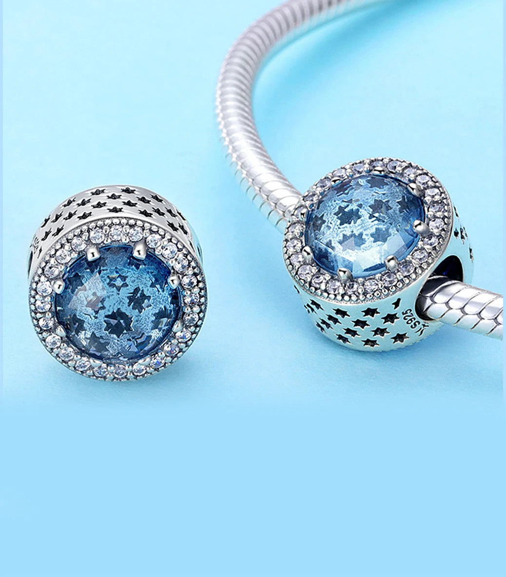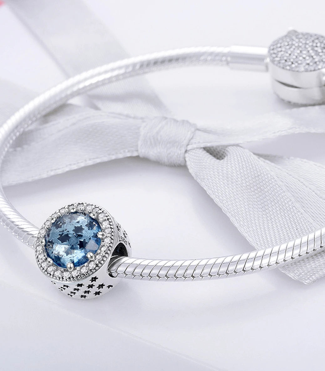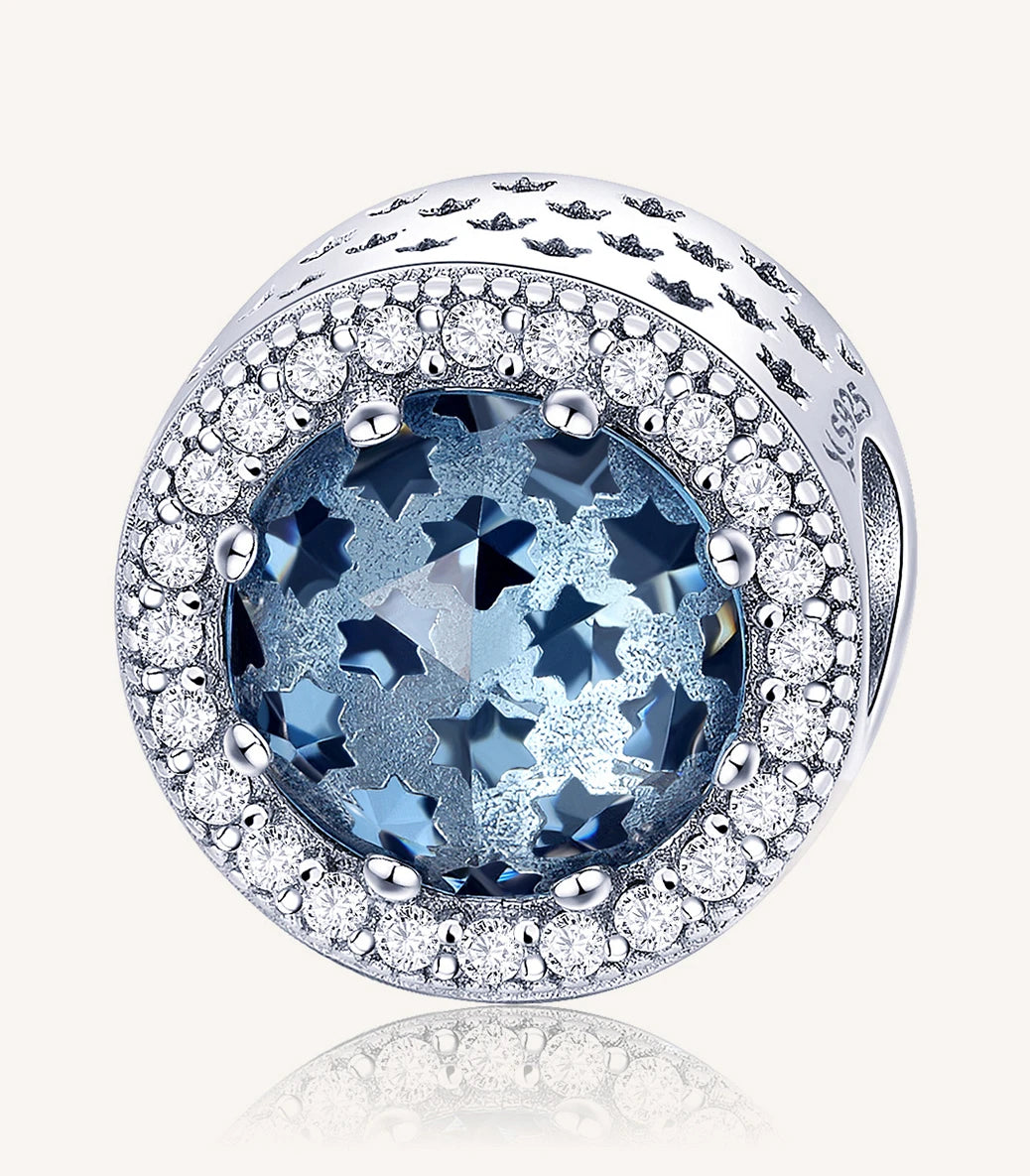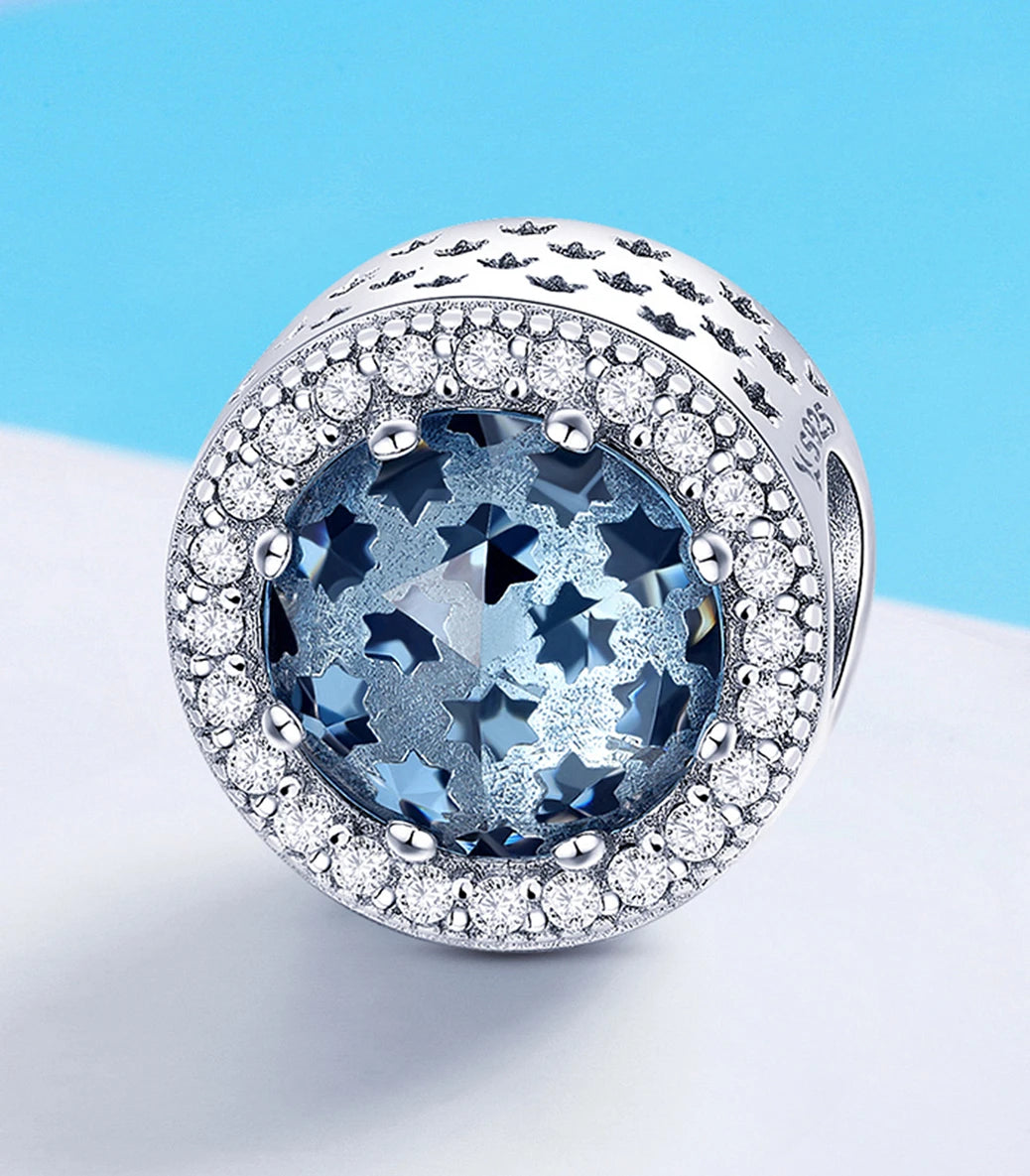 Сребърен талисман със синьо, фасетирано, мурано стъкло и бял кубичен циркон