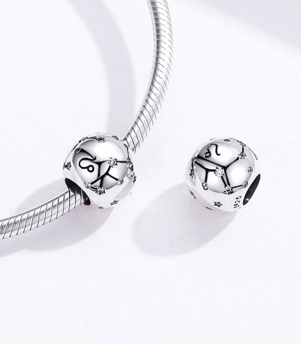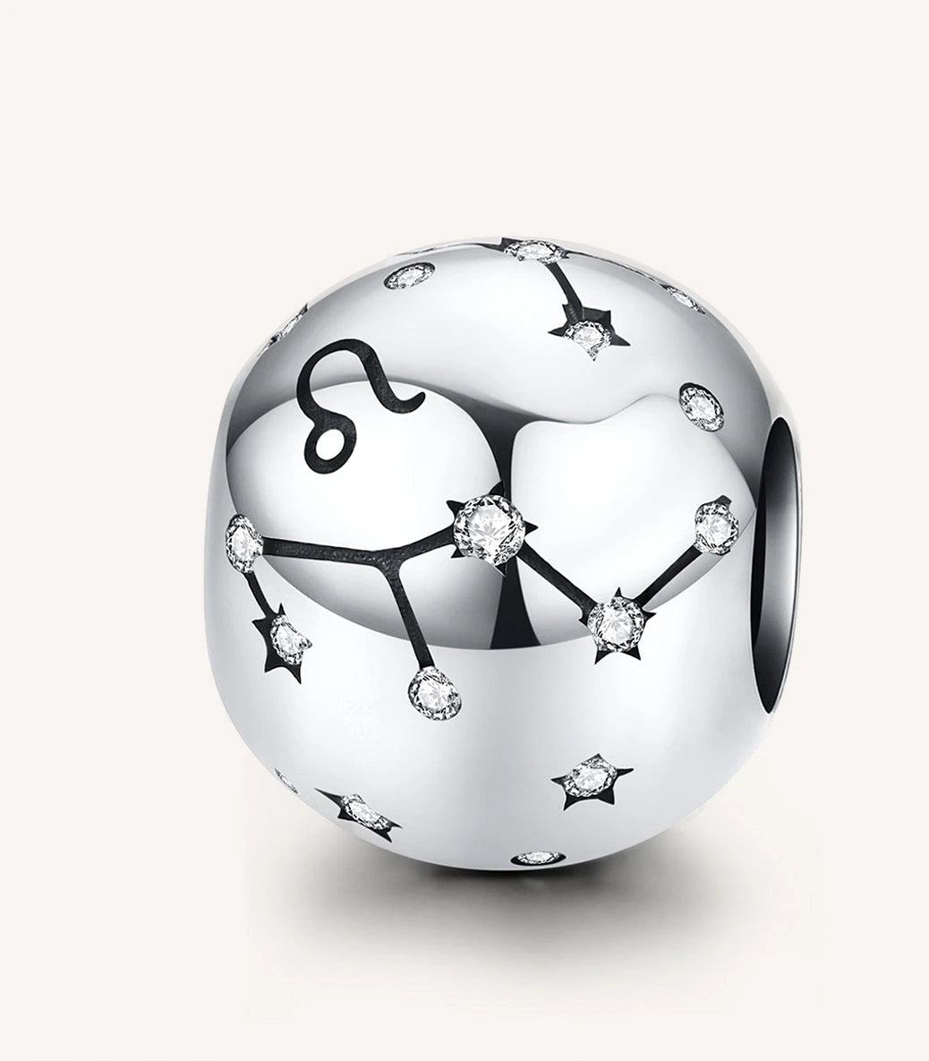 Сребърен талисман – зодиакален знак и съзвездие „Лъв“ - с бял кубичен циркон