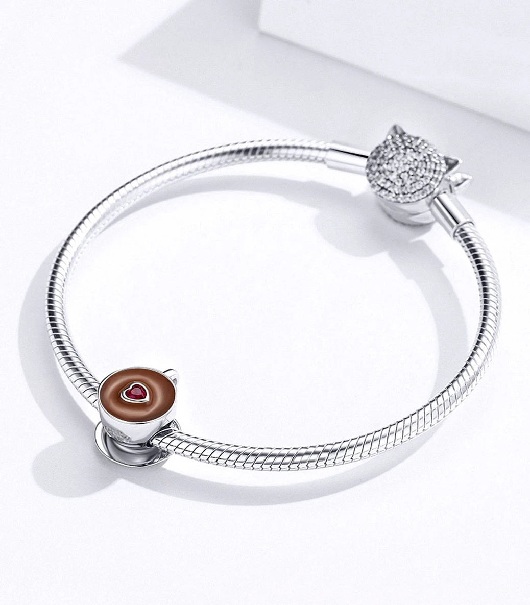 Сребърен талисман с пурпурен кубичен циркон, кафяв емайл и надпис