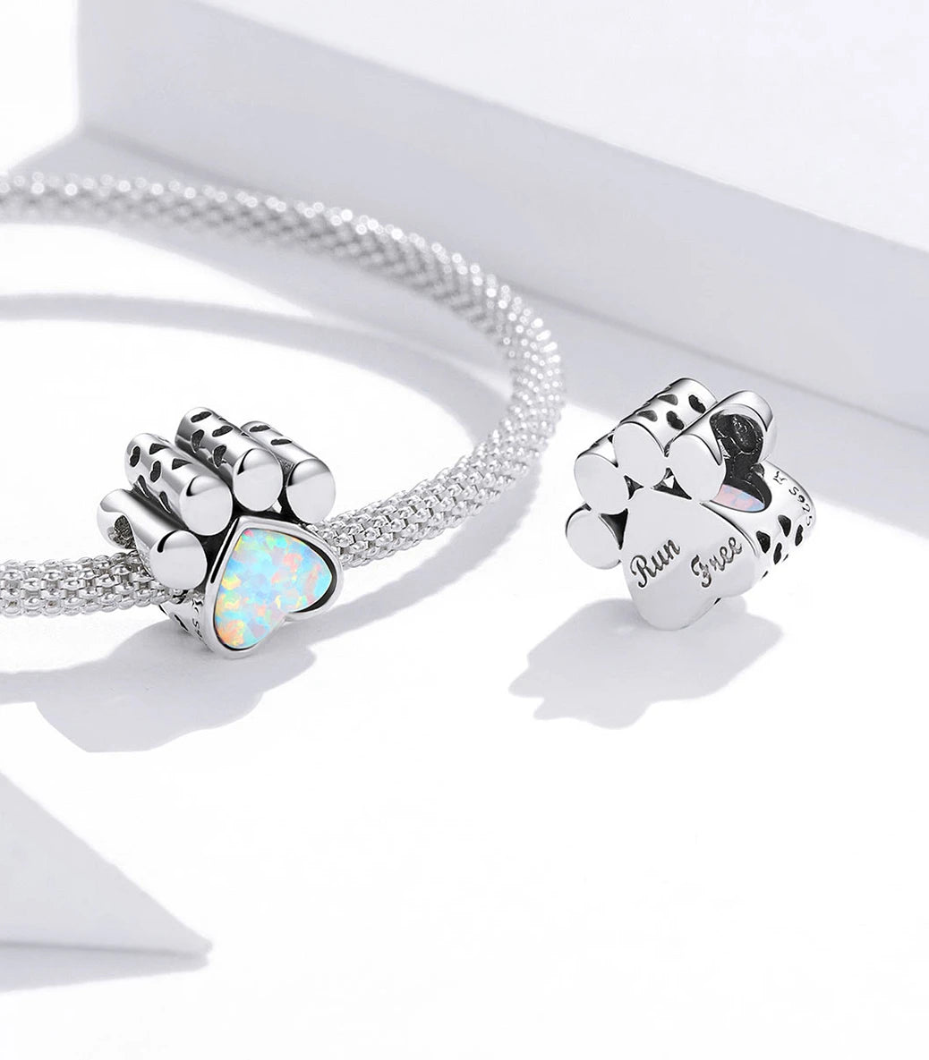 Сребърен талисман със скъпоценен камък Опал и надпис “Run free” (Тичай свободно)
